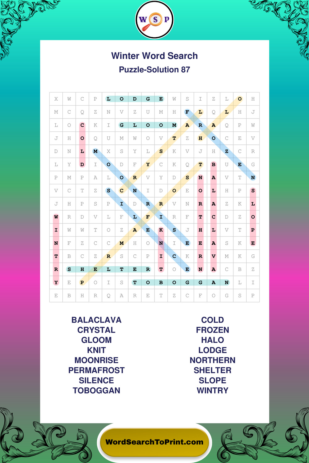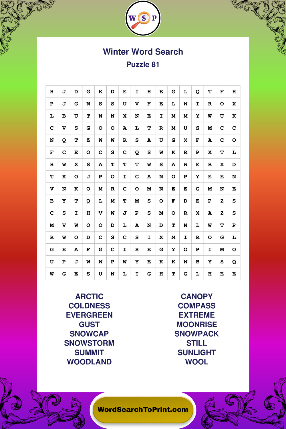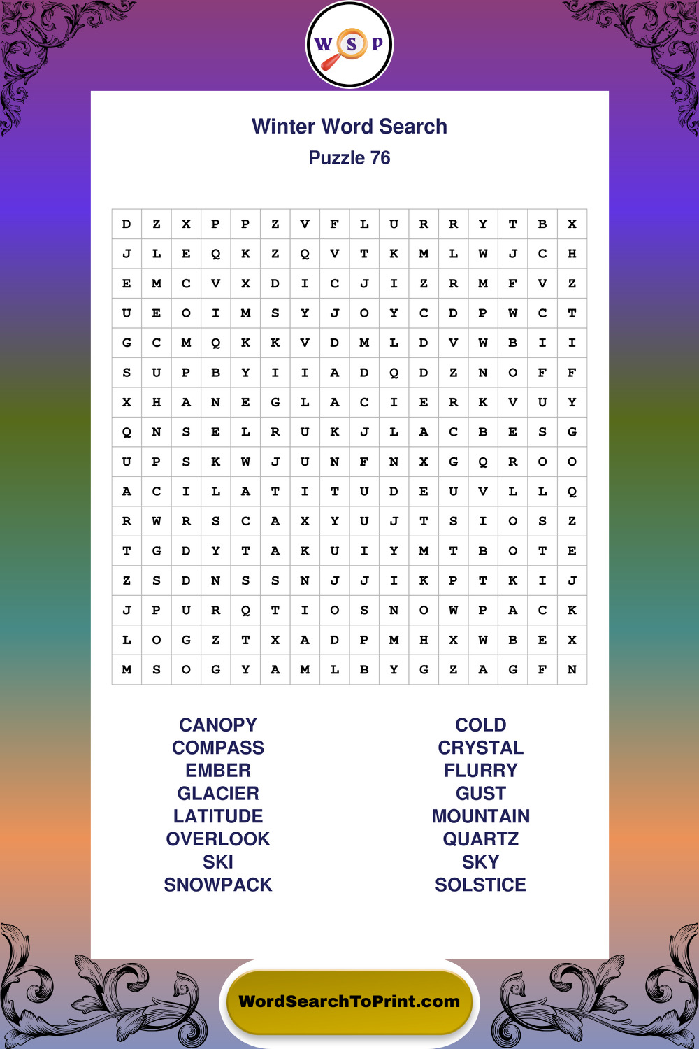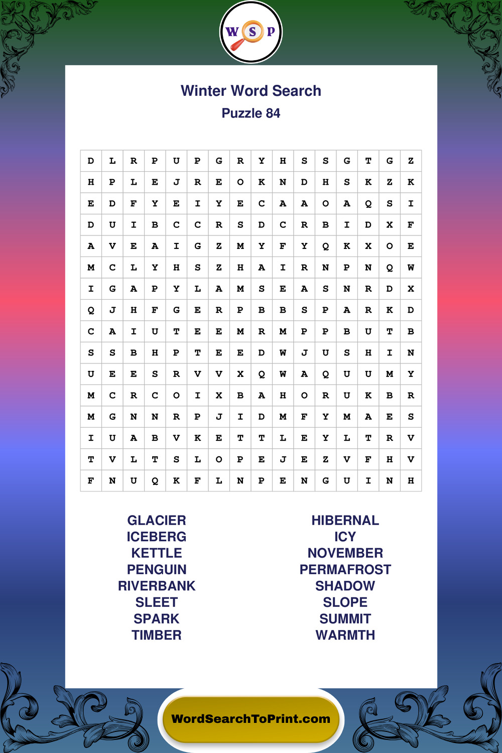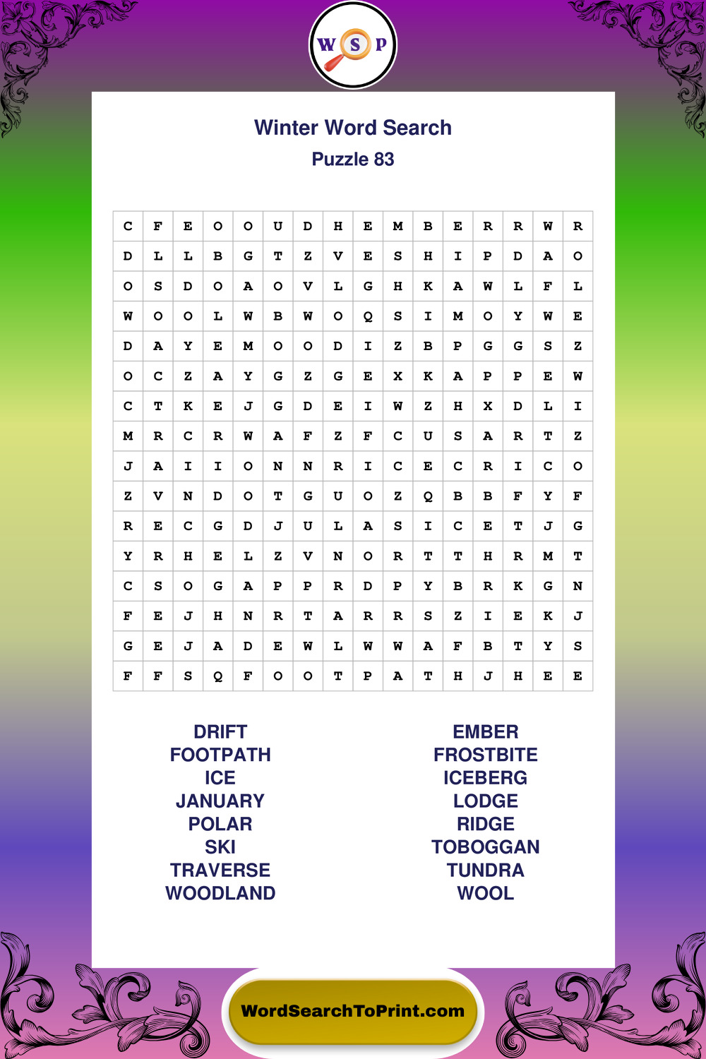 Printable Winter Wordsearch Puzzles