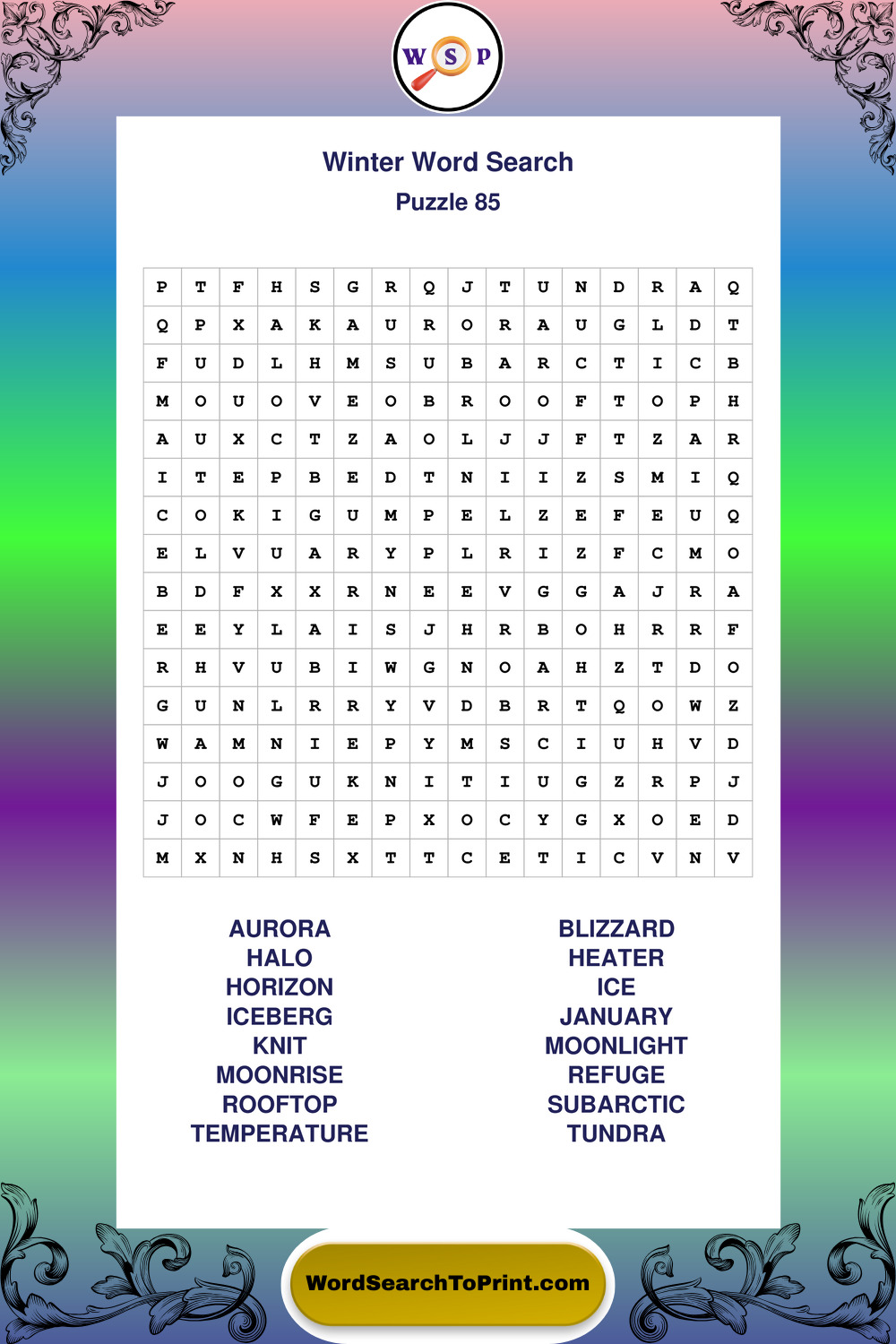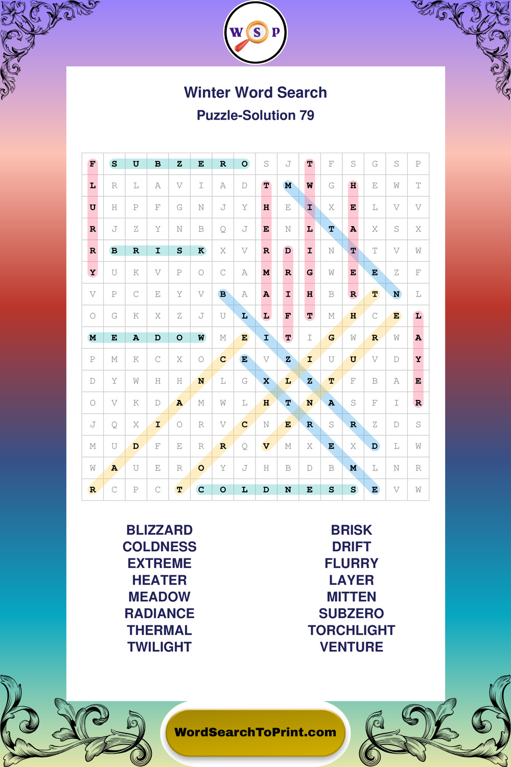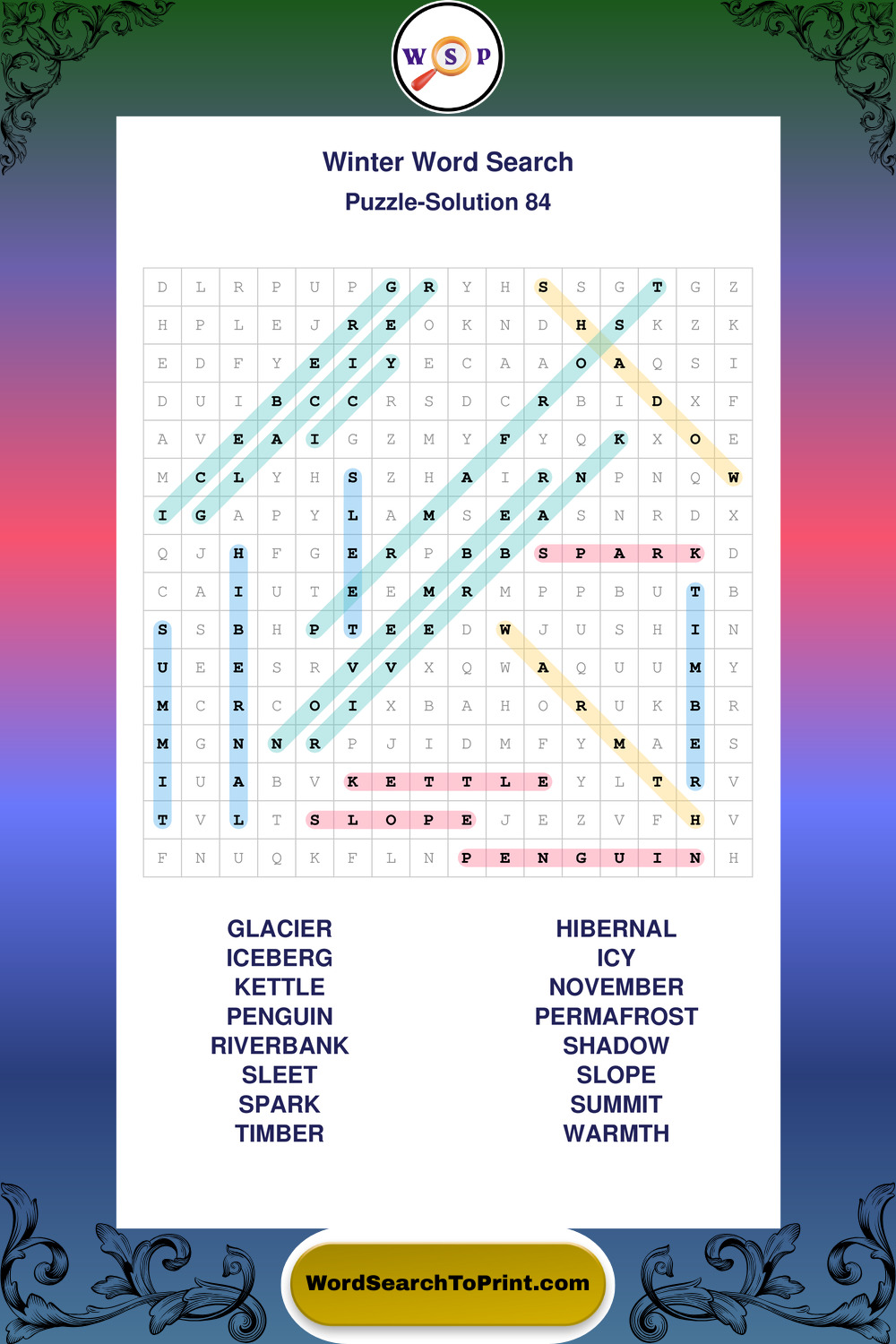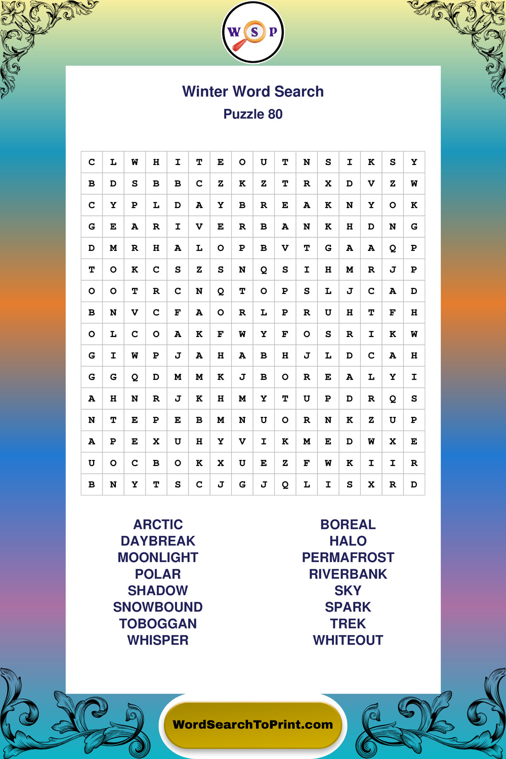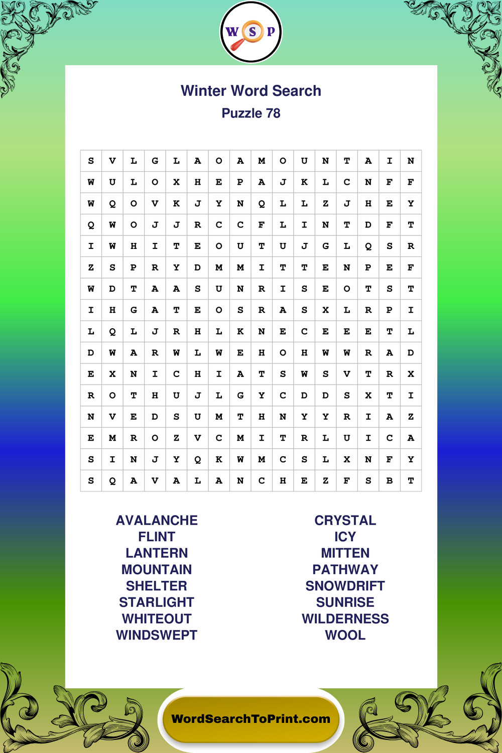 Printable Winter Wordsearch Puzzles