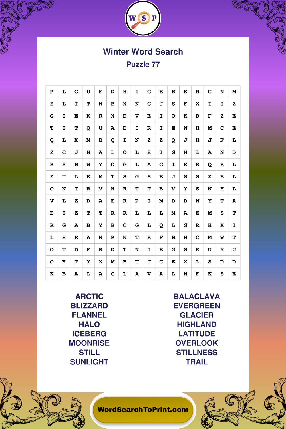 Free Large Print Winter Wordsearches