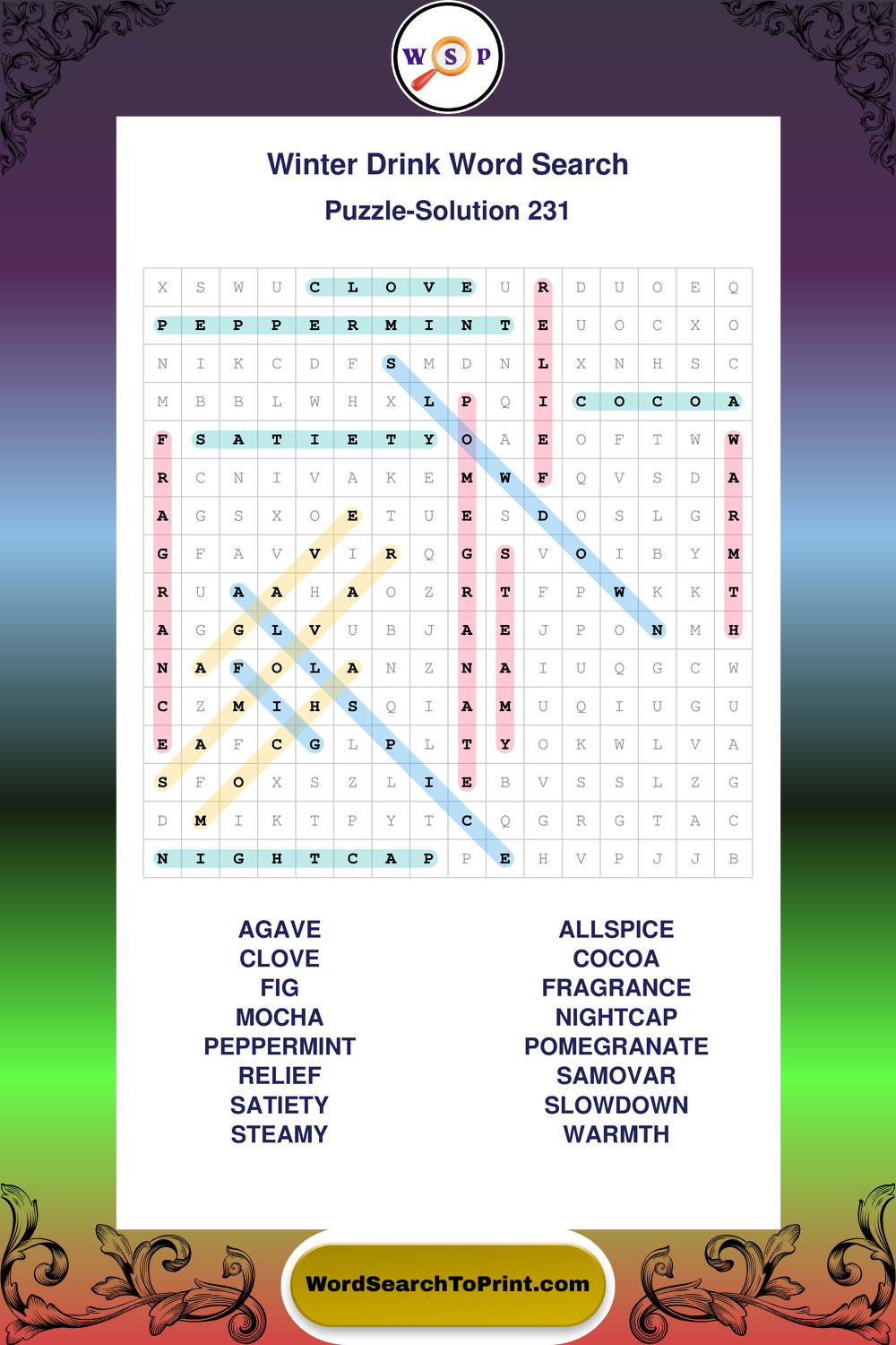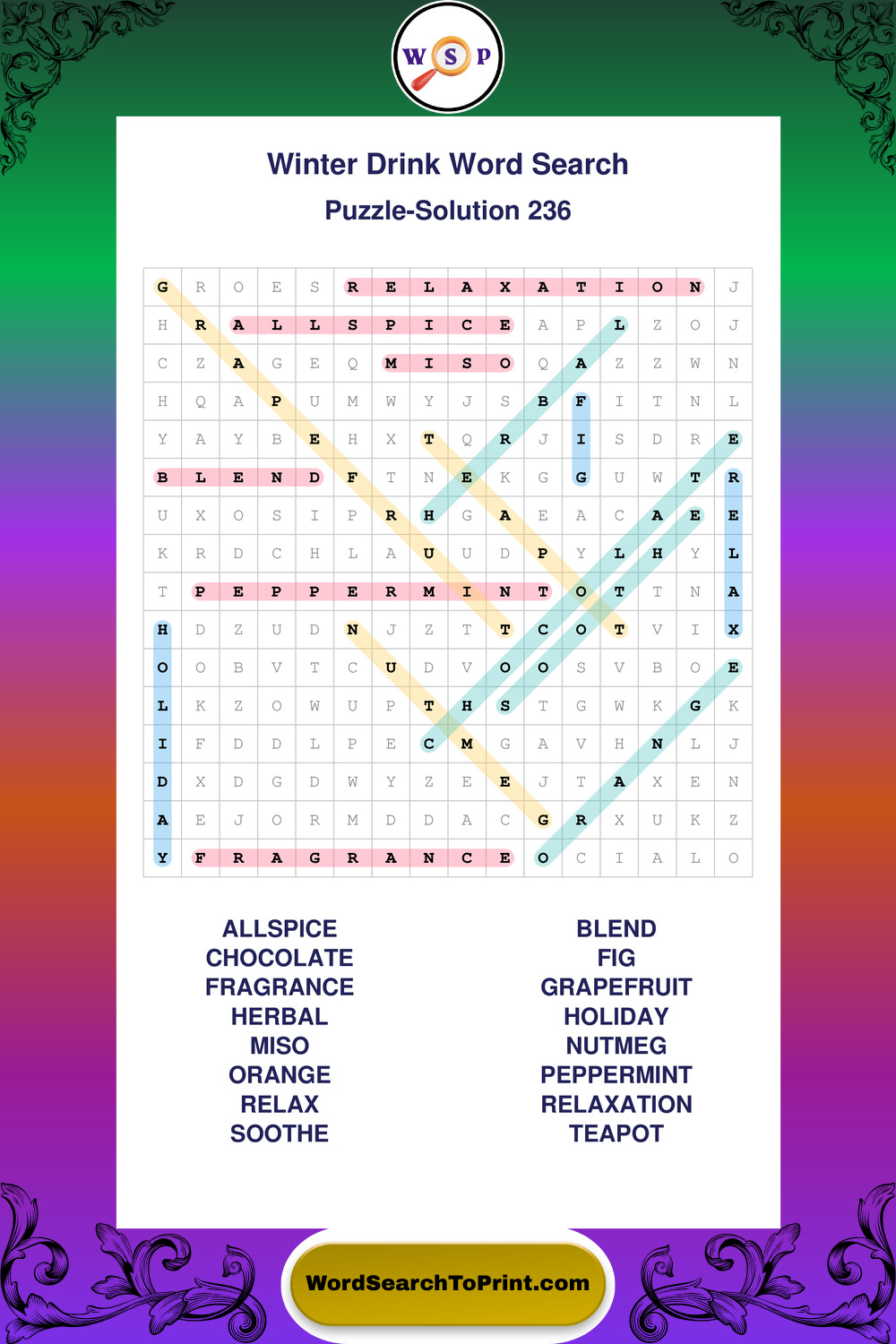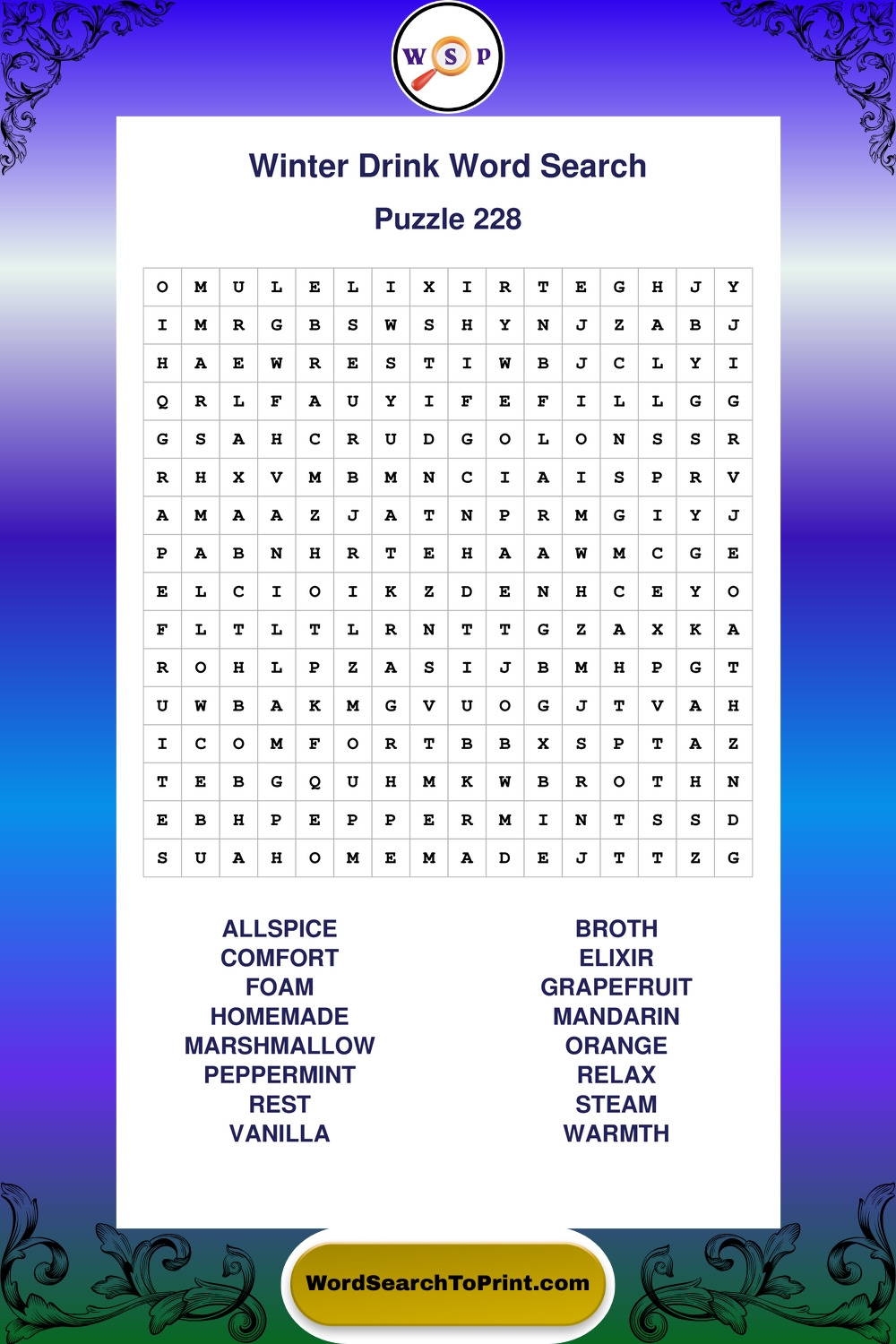 This selection of large print Winter Drink wordsearches is ideal for light brain exercise and relaxed daily use.
