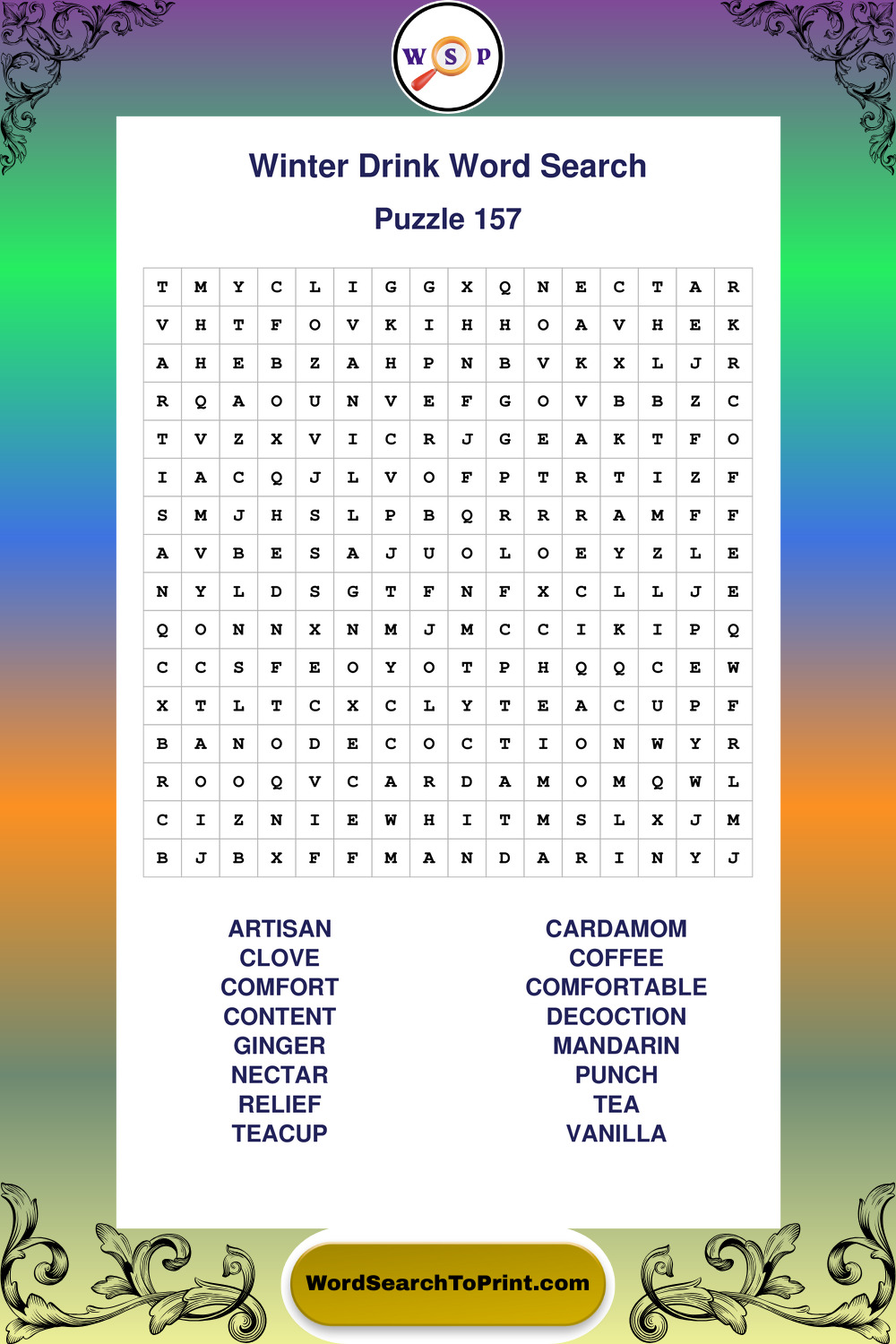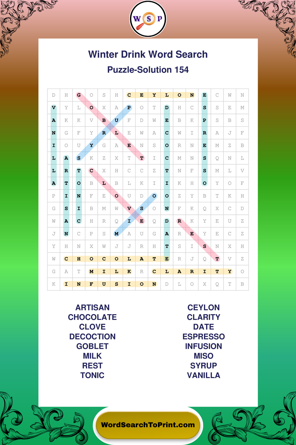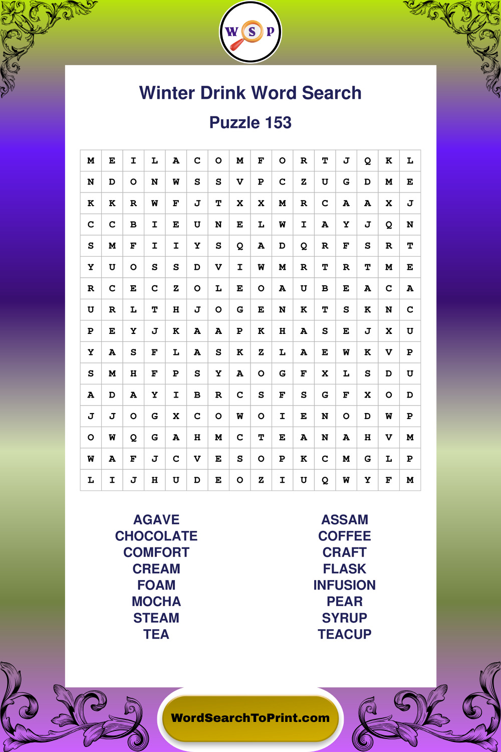 Printable Winter Drink Wordsearch Puzzles