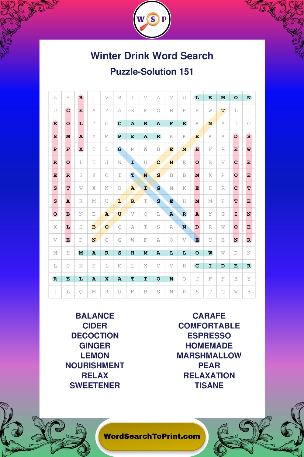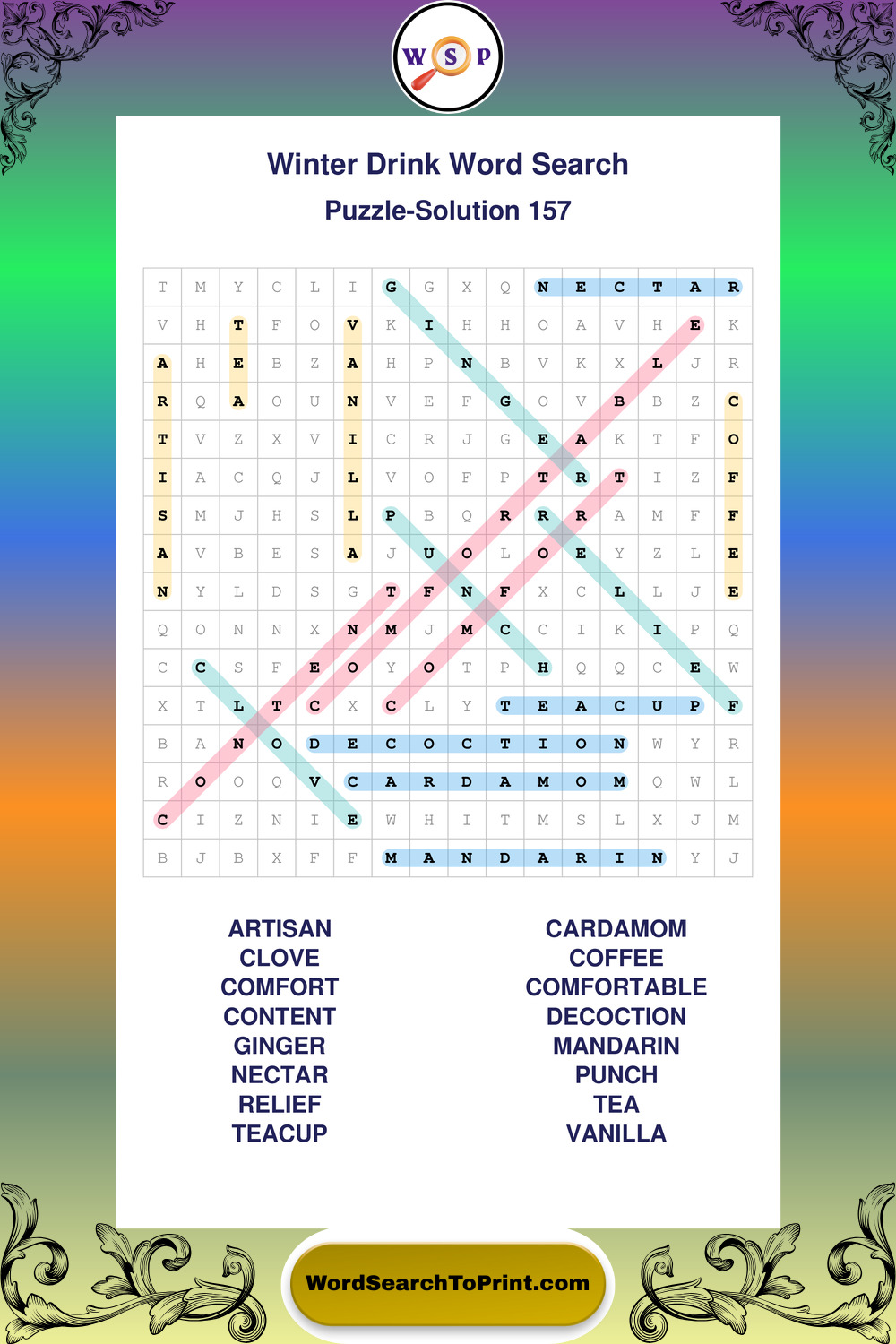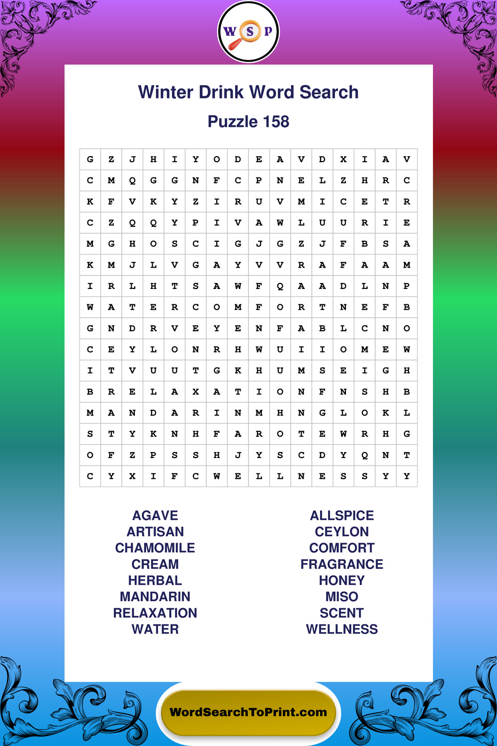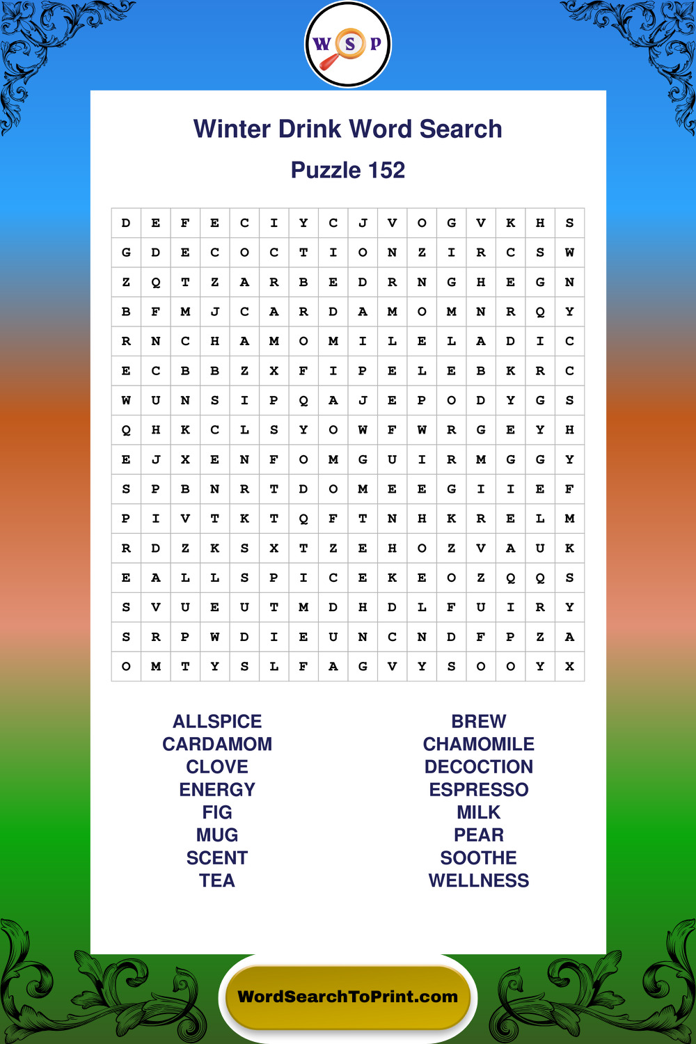 Printable Winter Drink Wordsearch Puzzles
