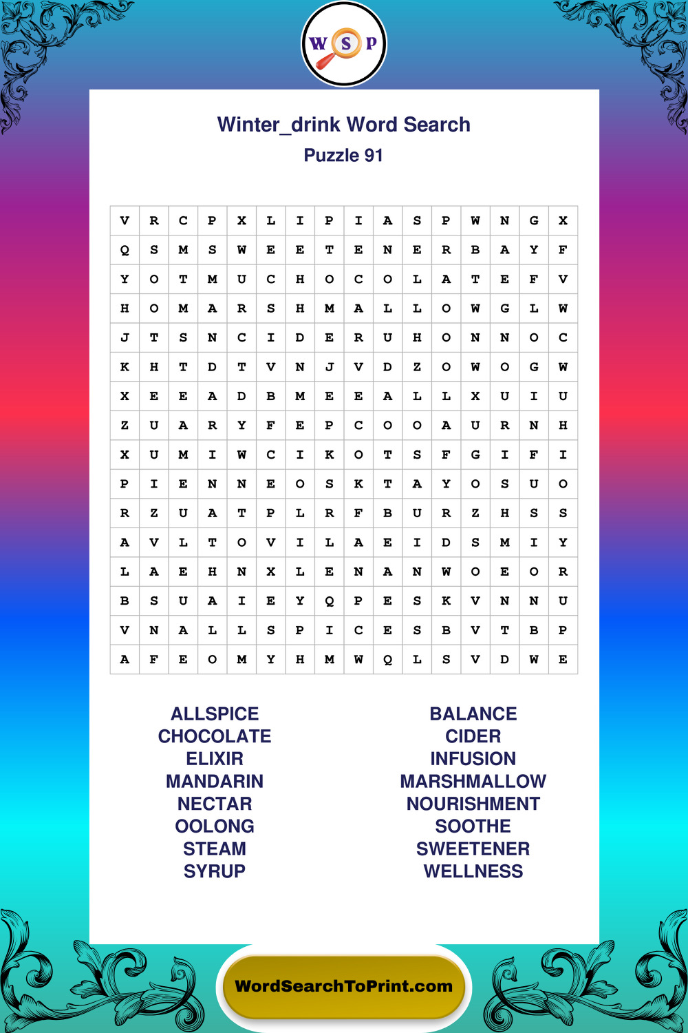 Printable Winter Drink Wordsearch Puzzles