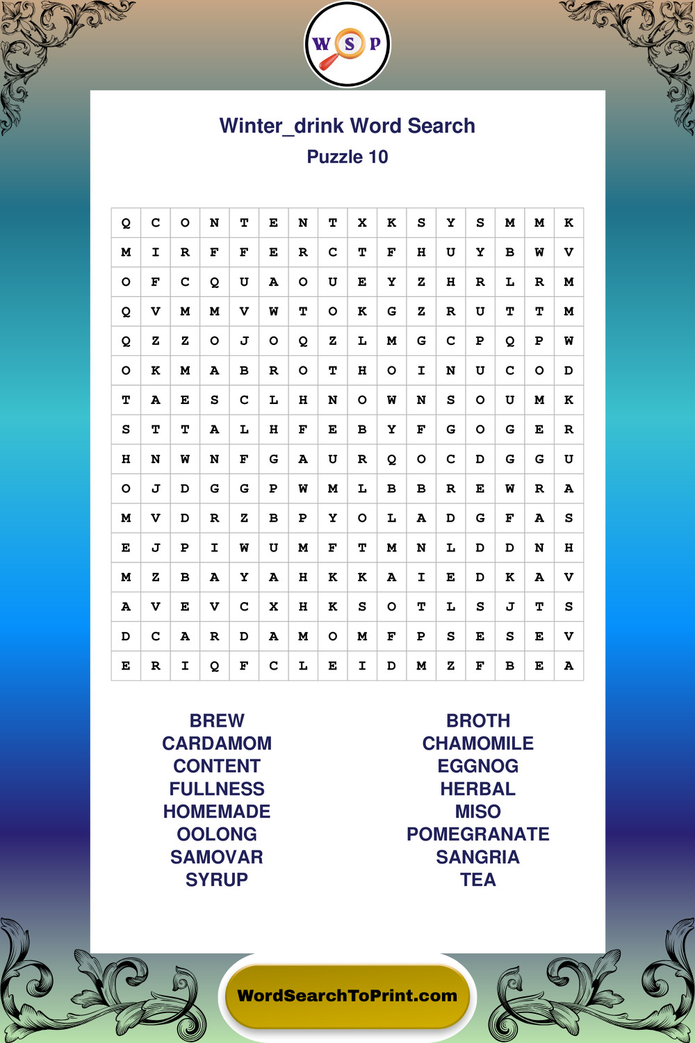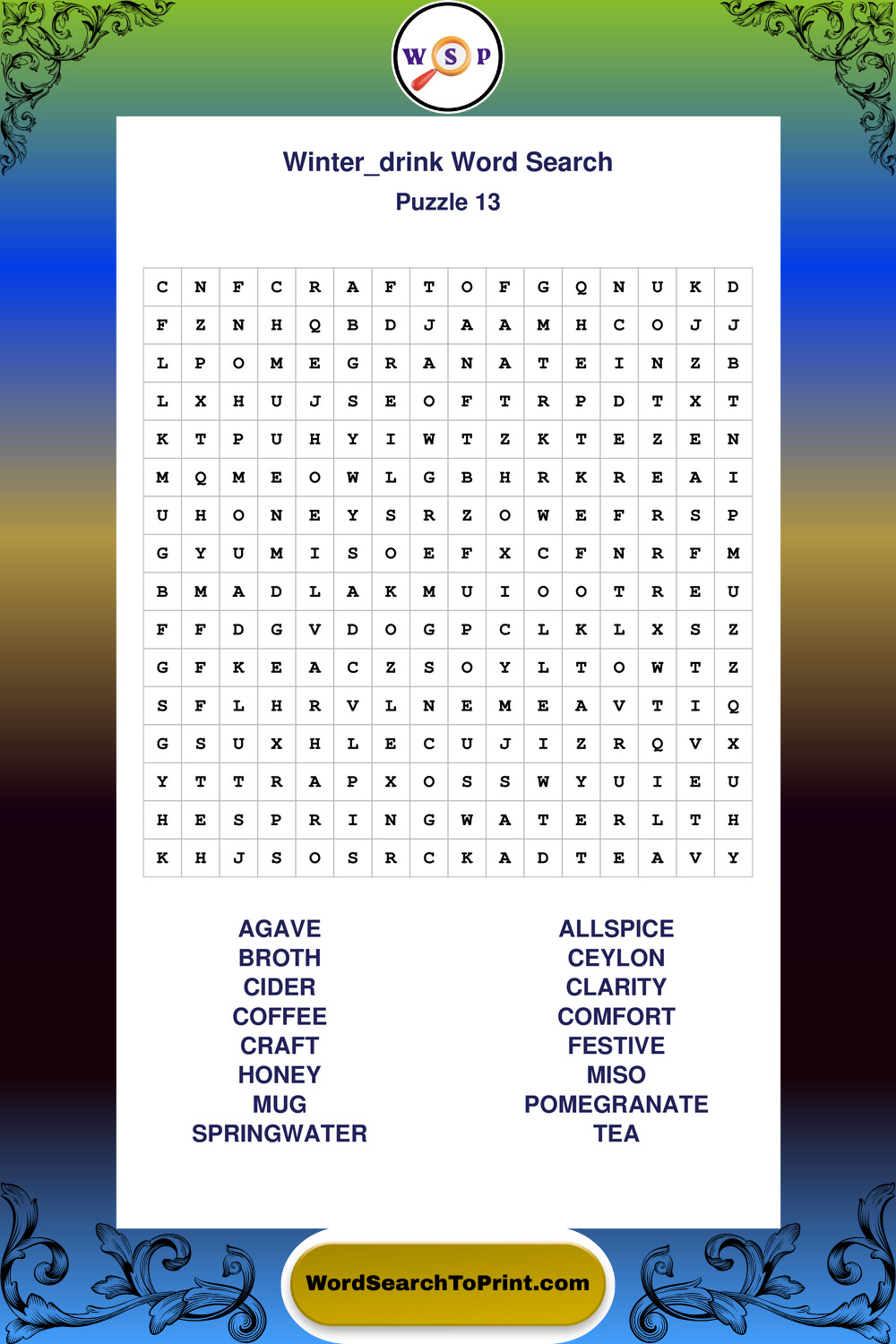 Printable Winter Drink Wordsearch Puzzles