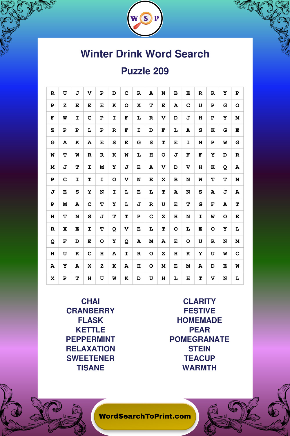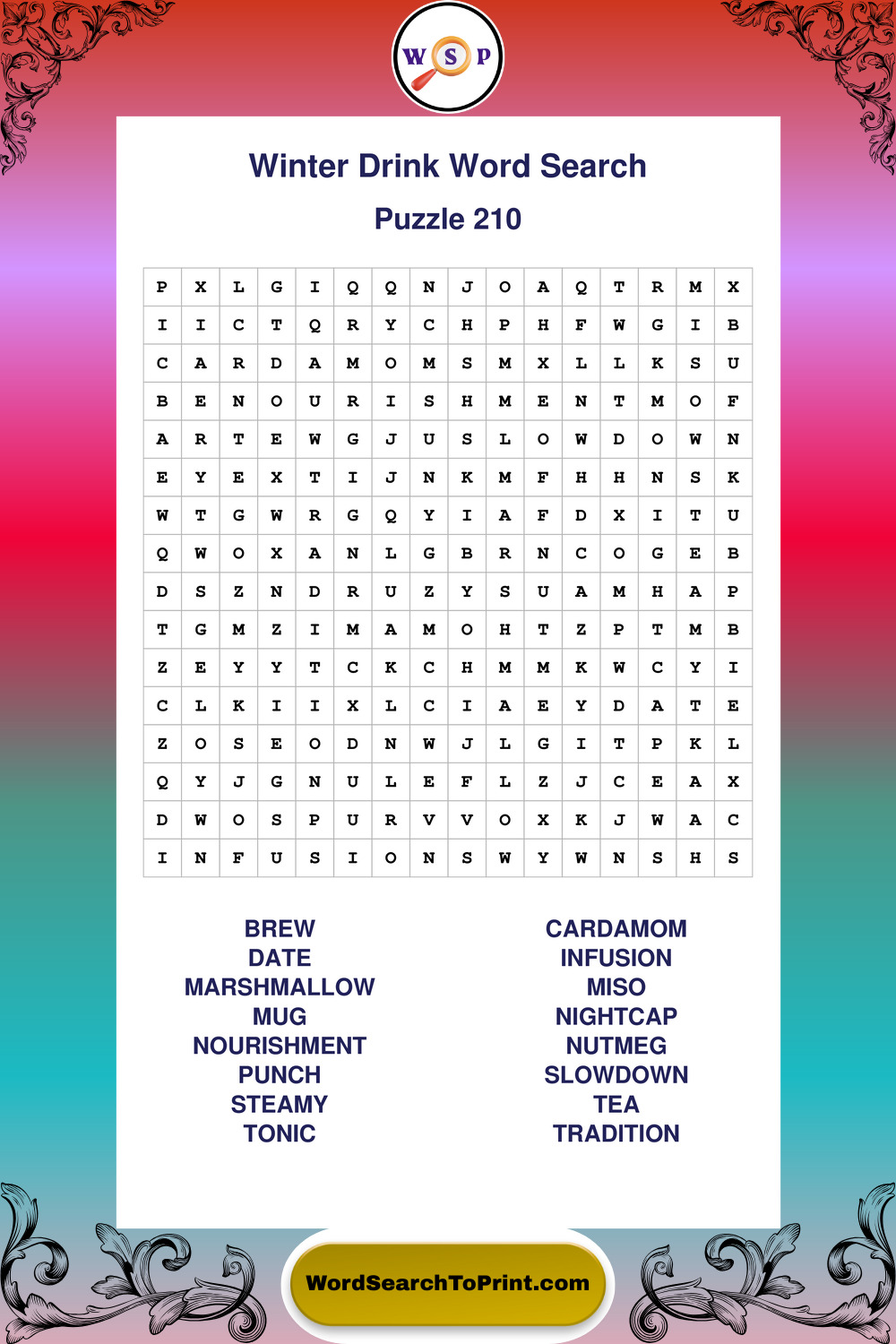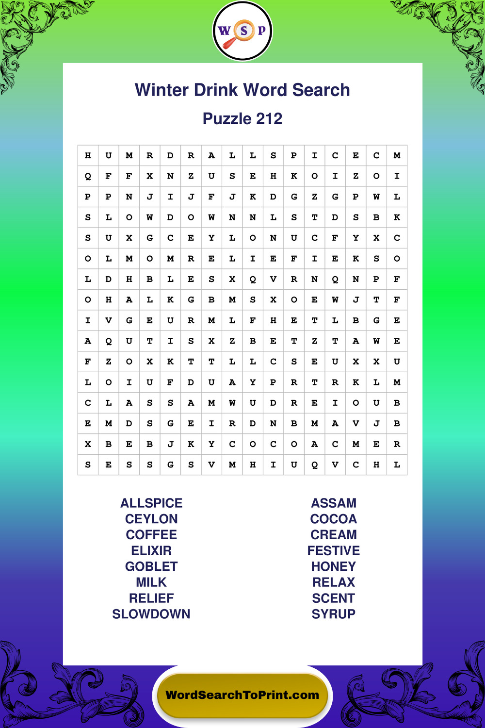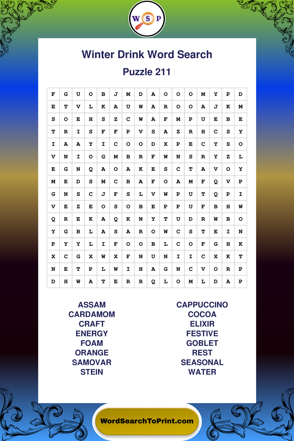 This selection of large print Winter Drink wordsearches is ideal for light brain exercise and relaxed daily use.