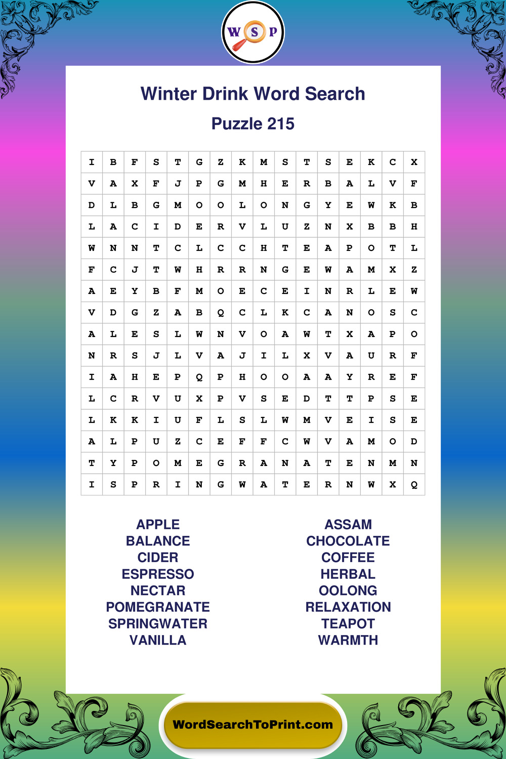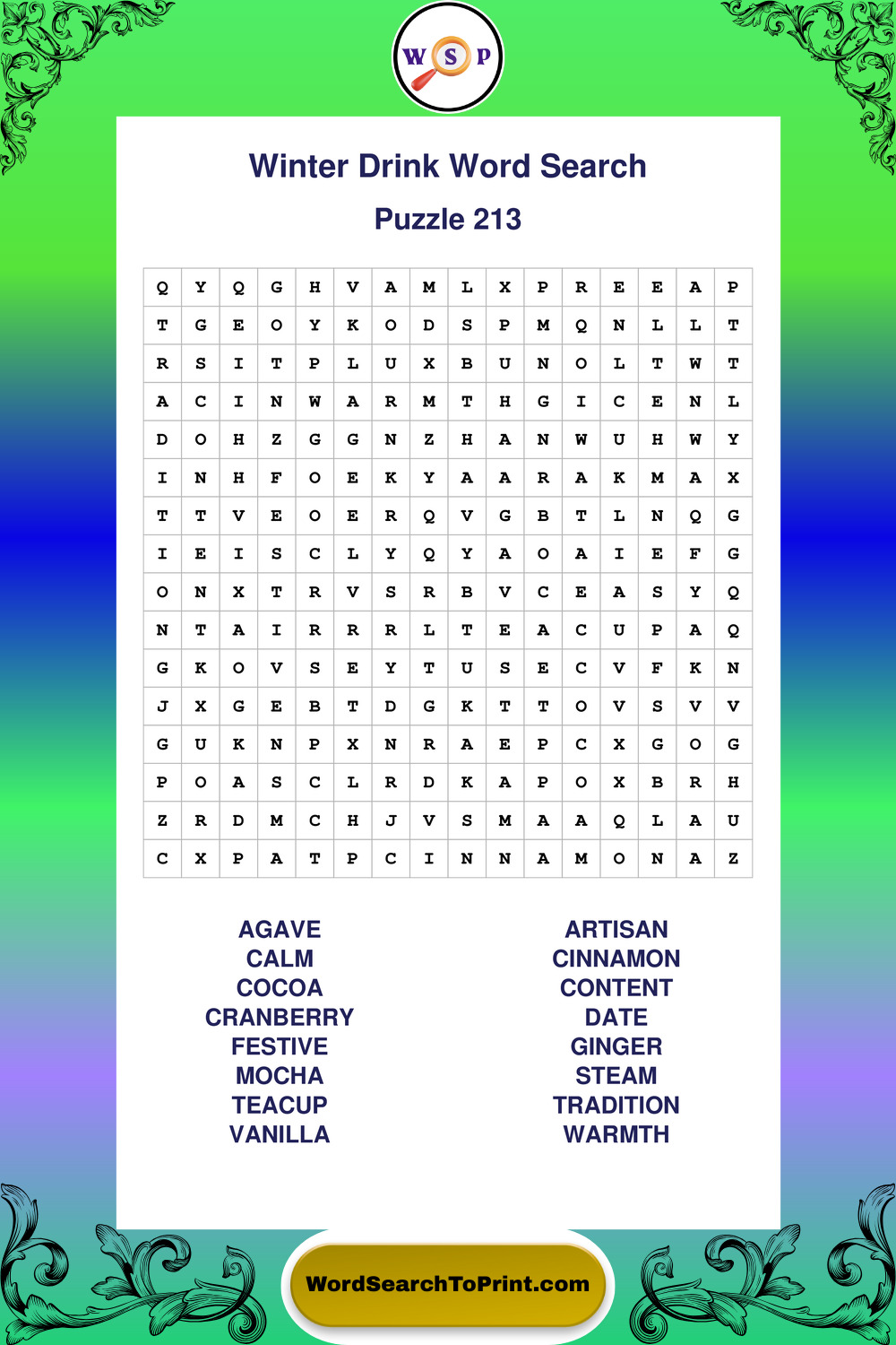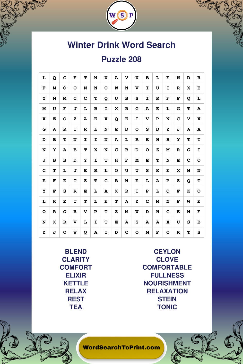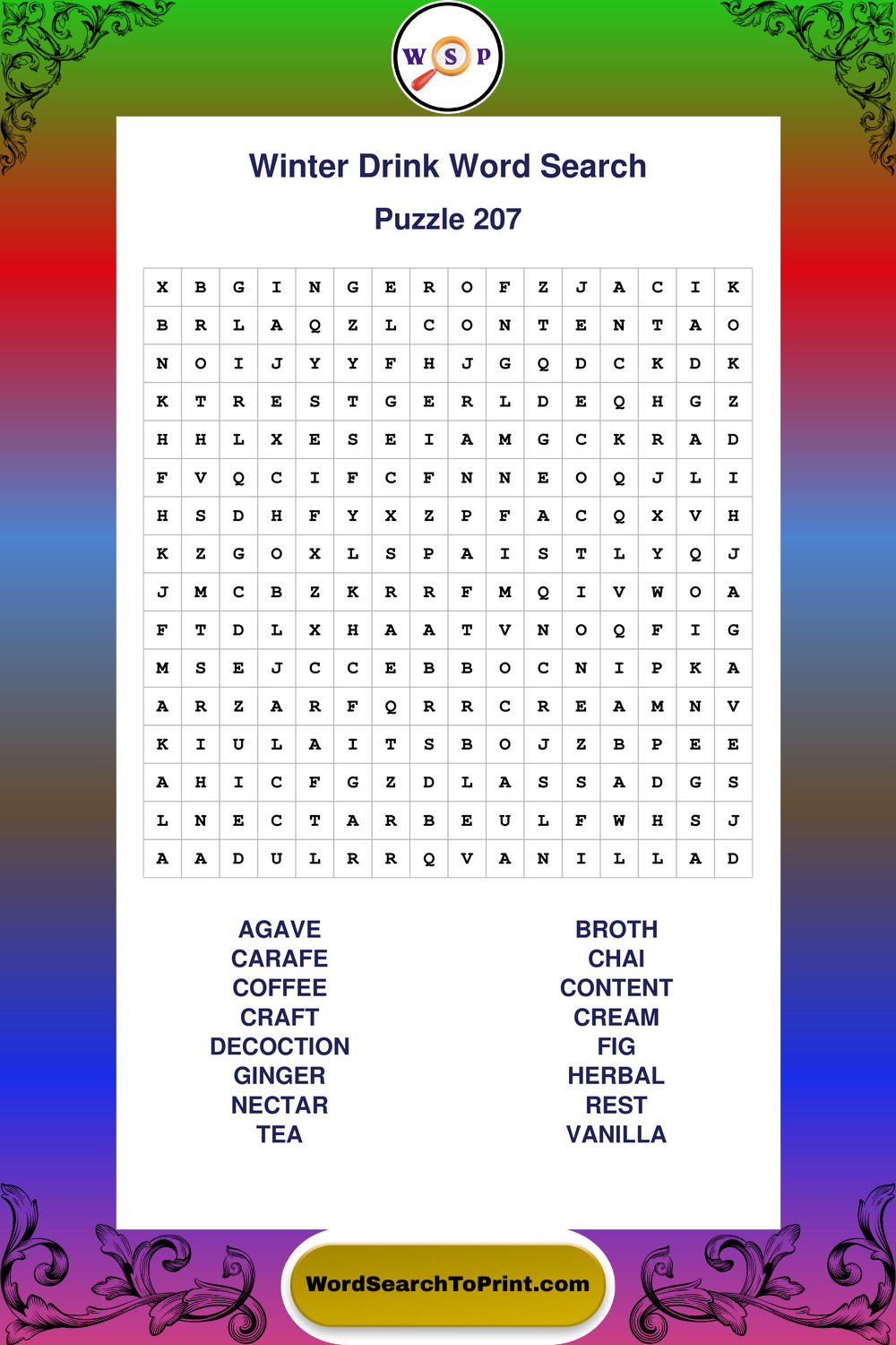 This selection of large print Winter Drink wordsearches is ideal for light brain exercise and relaxed daily use.