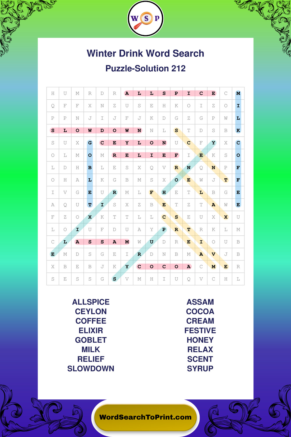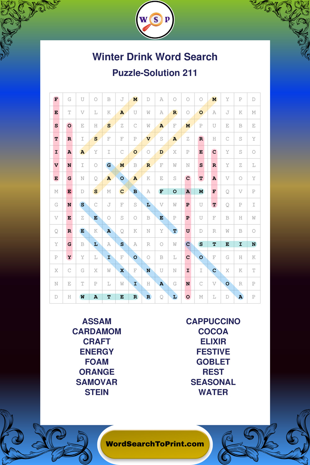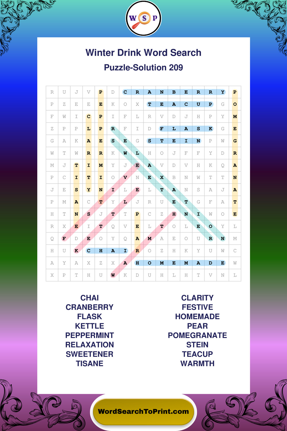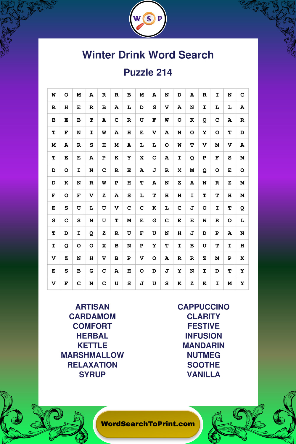 This selection of large print Winter Drink wordsearches is ideal for light brain exercise and relaxed daily use.