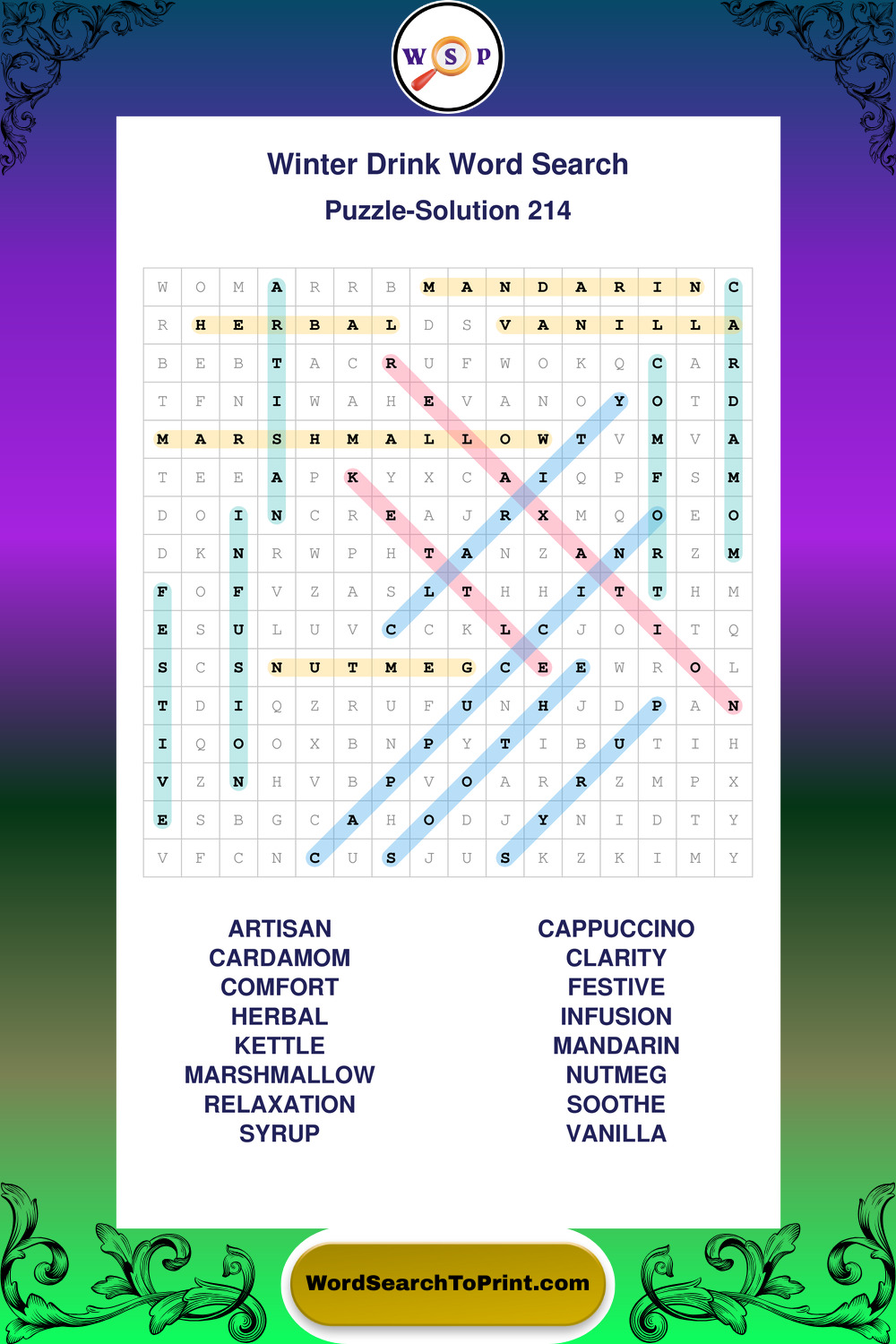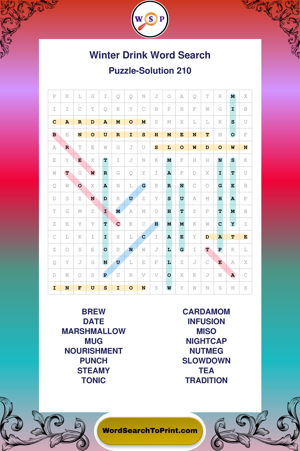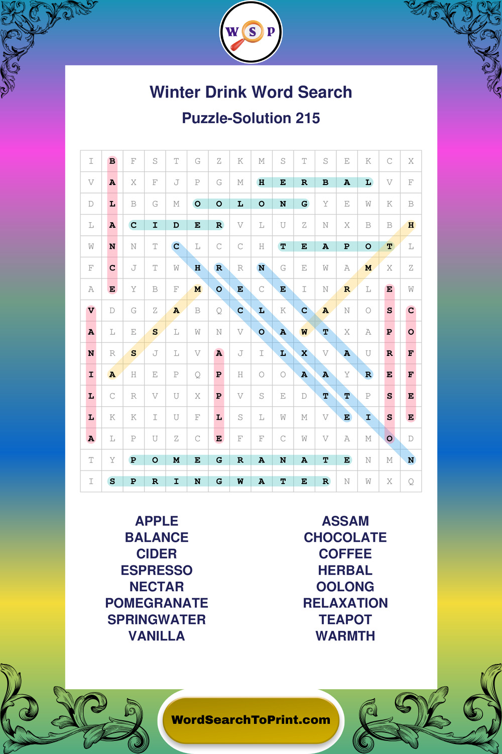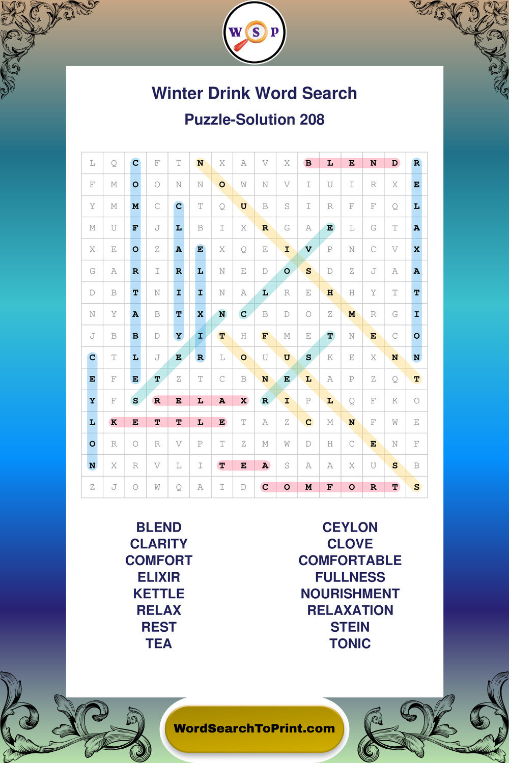 This selection of large print Winter Drink wordsearches is ideal for light brain exercise and relaxed daily use.