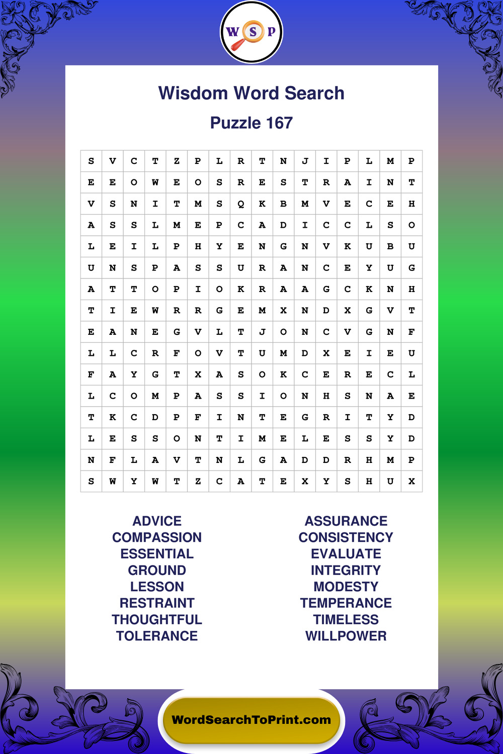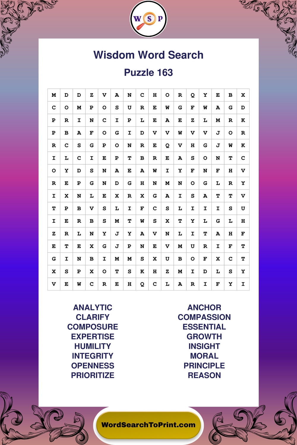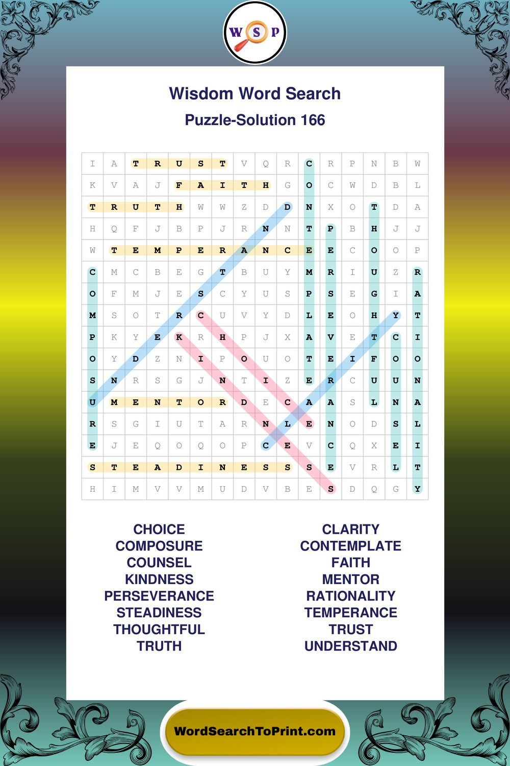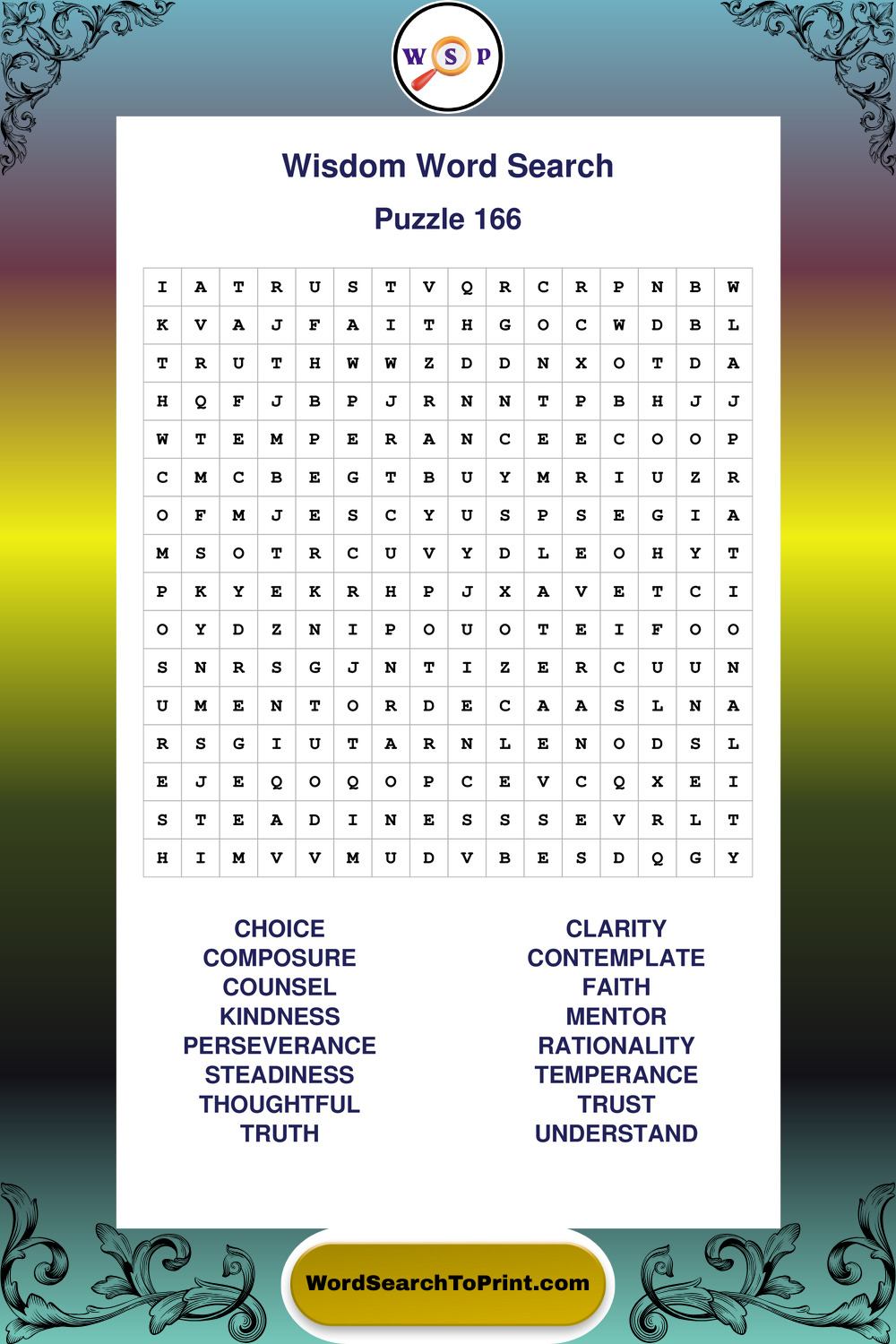 Printable Wisdom Wordsearch Puzzles