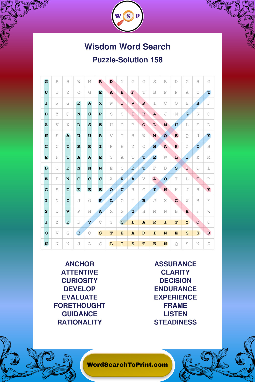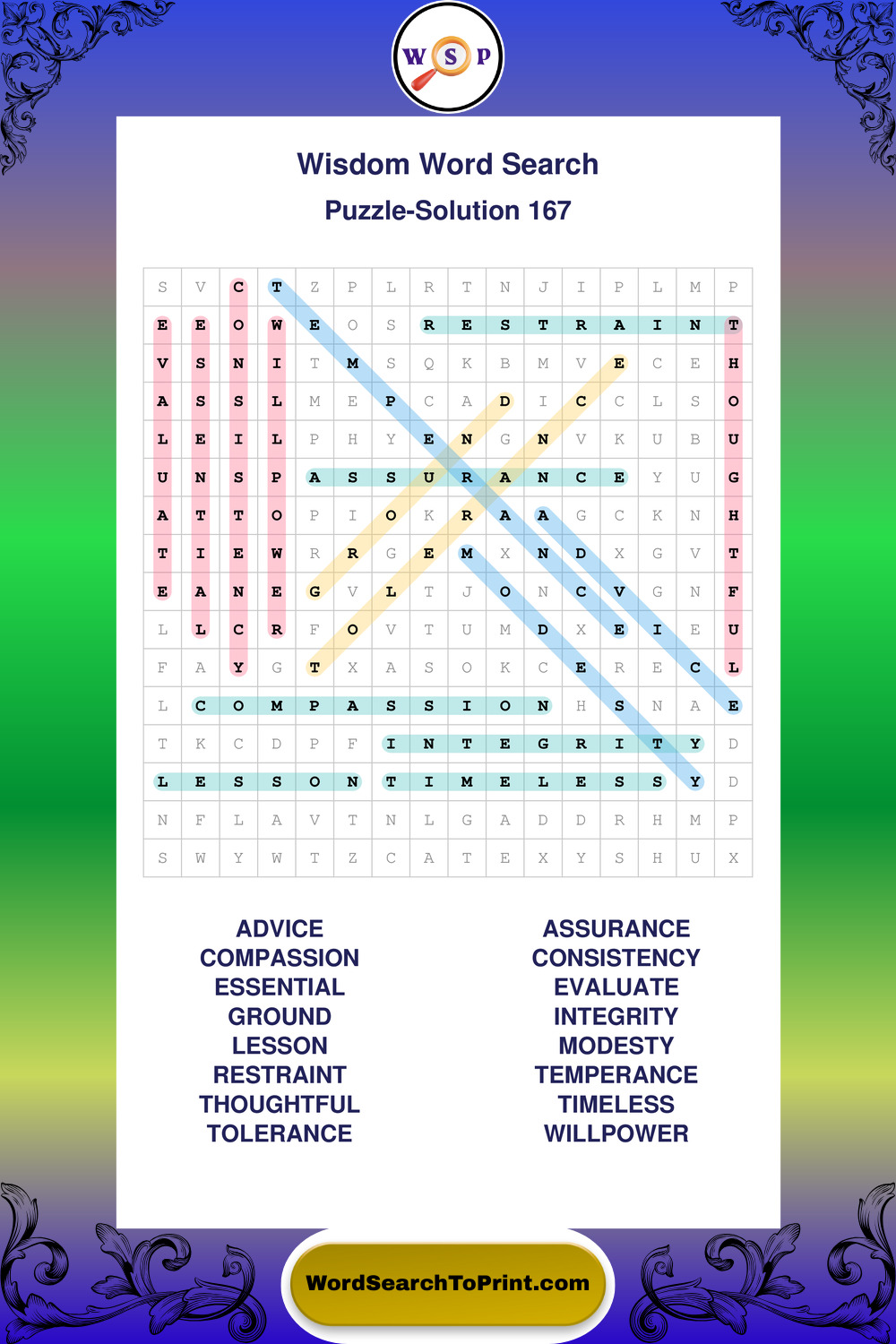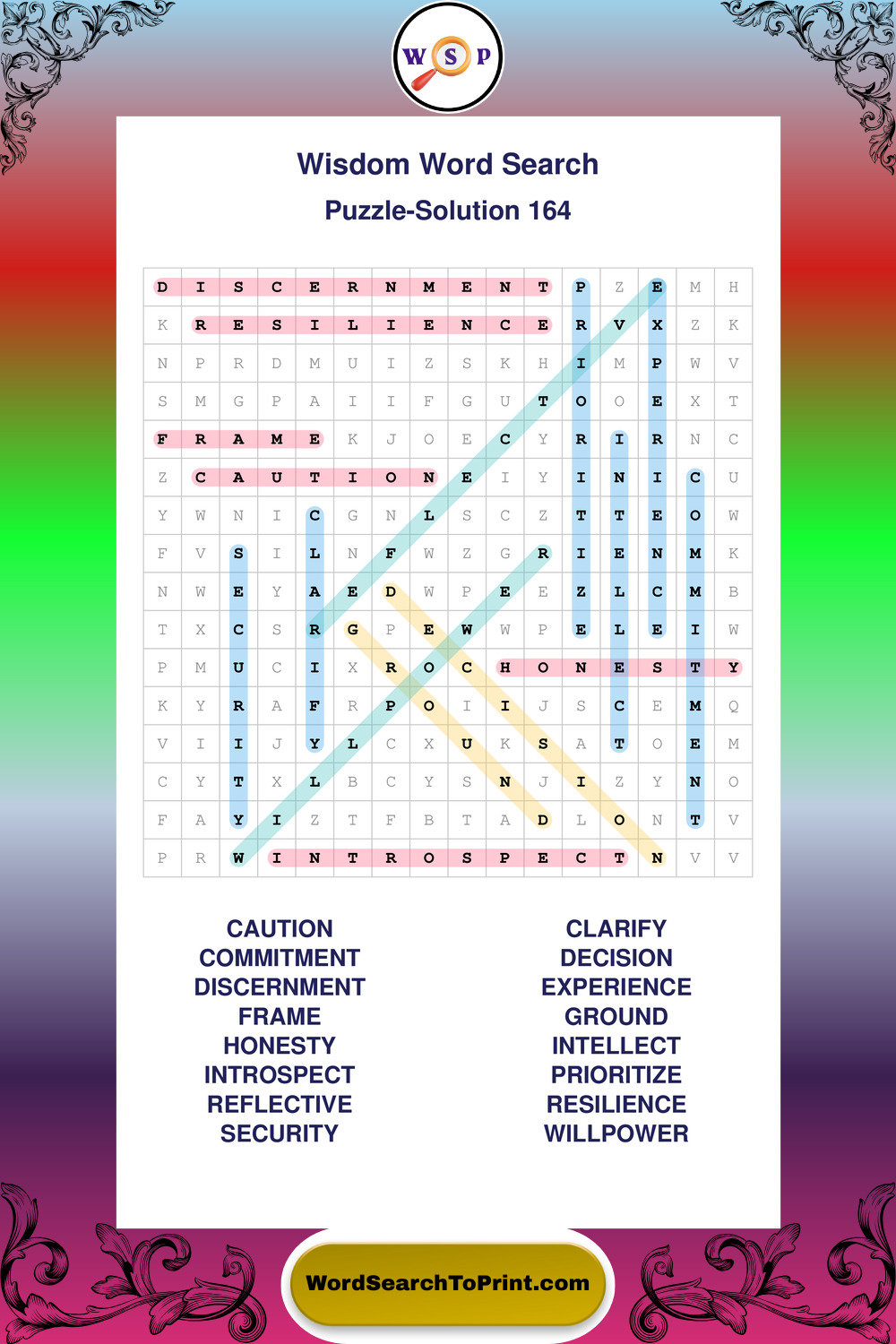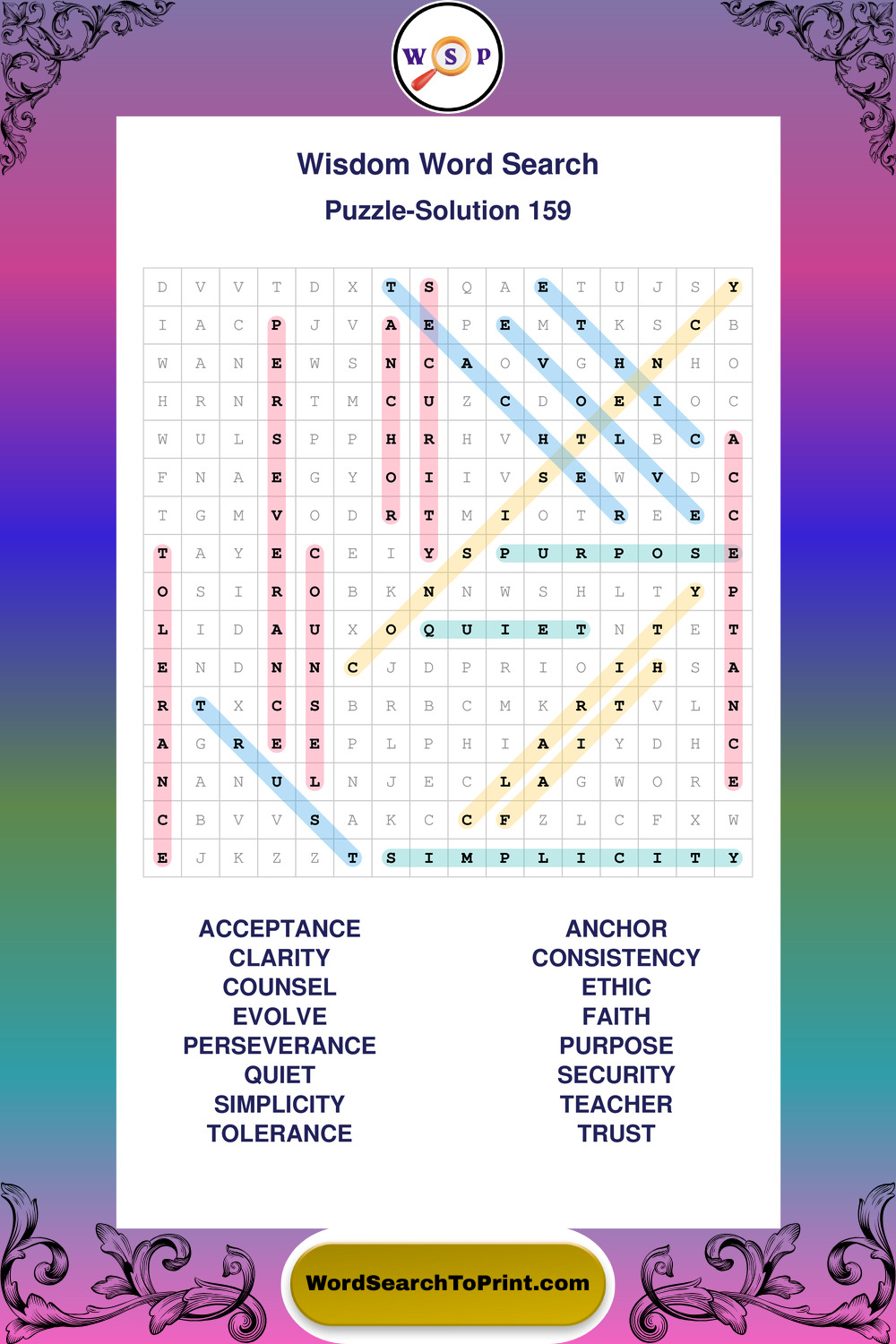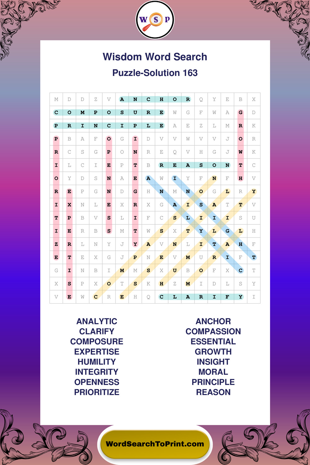 Printable Wisdom Wordsearch Puzzles