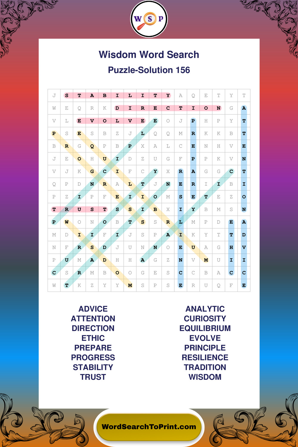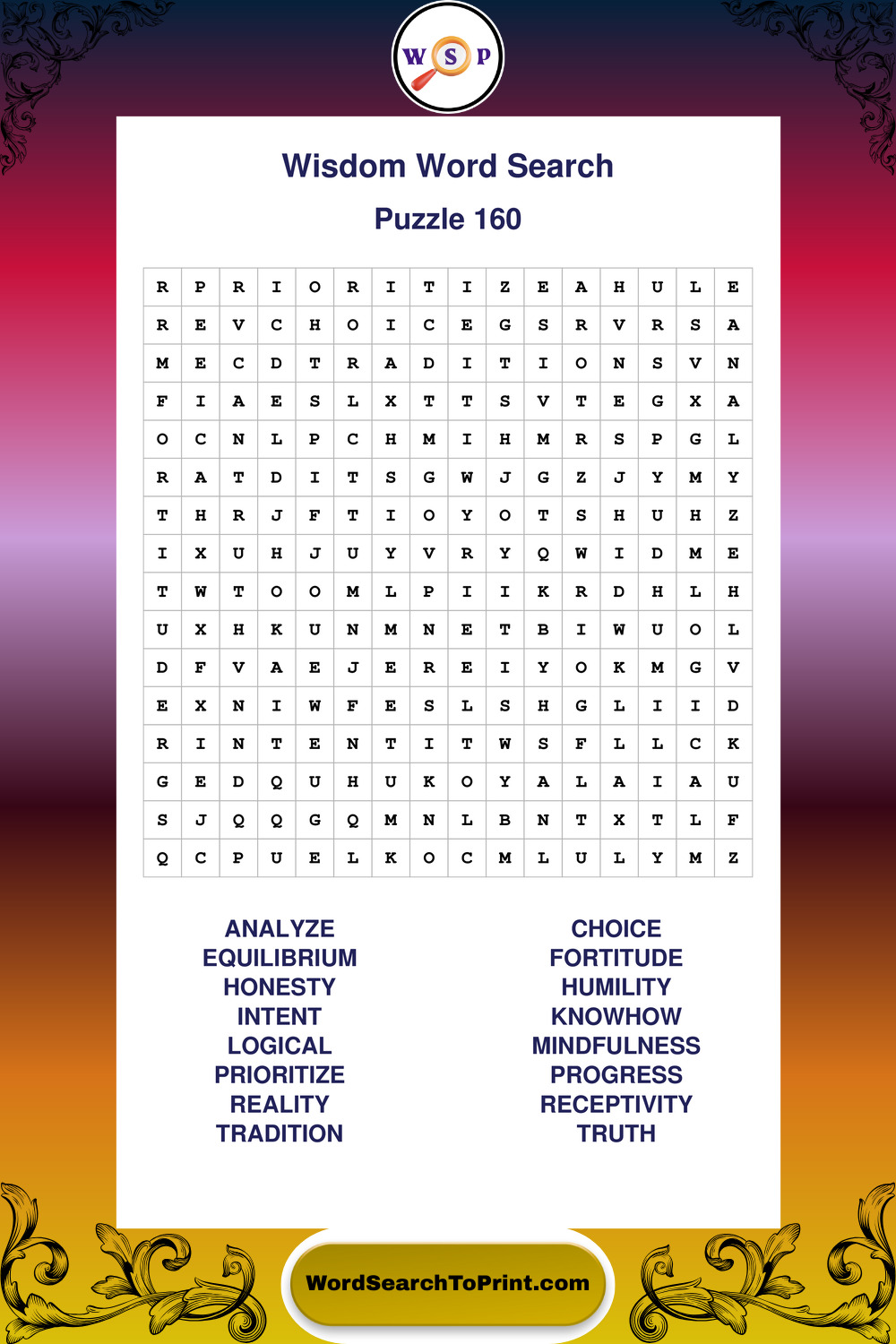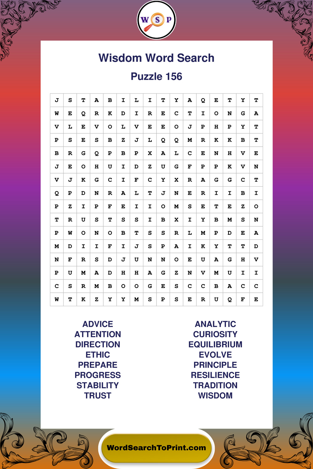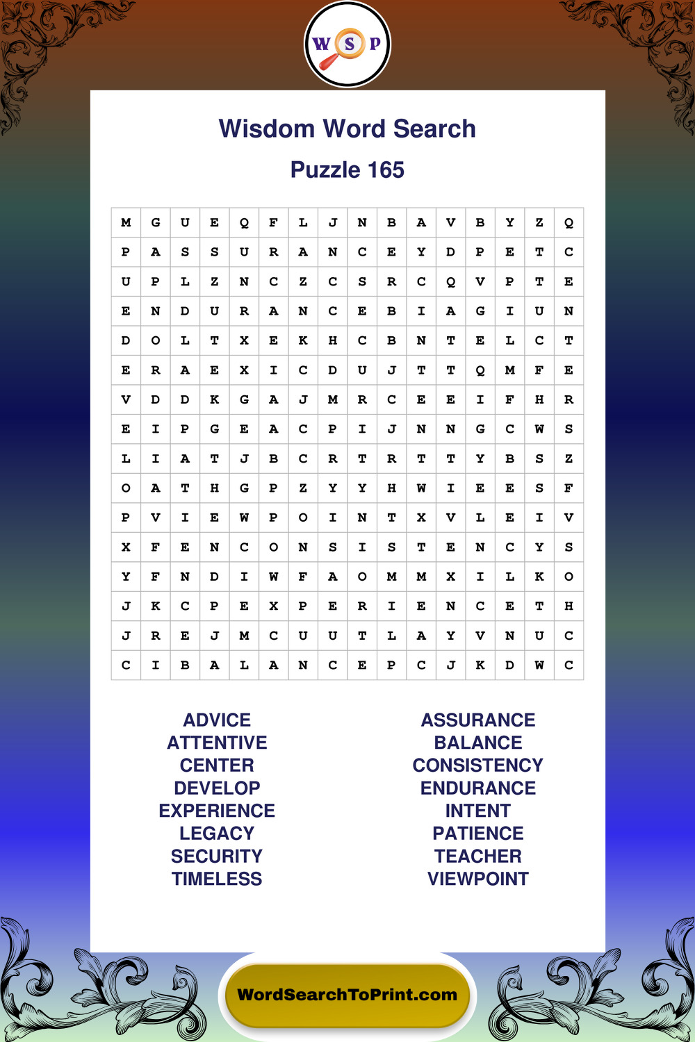 Printable Wisdom Wordsearch Puzzles