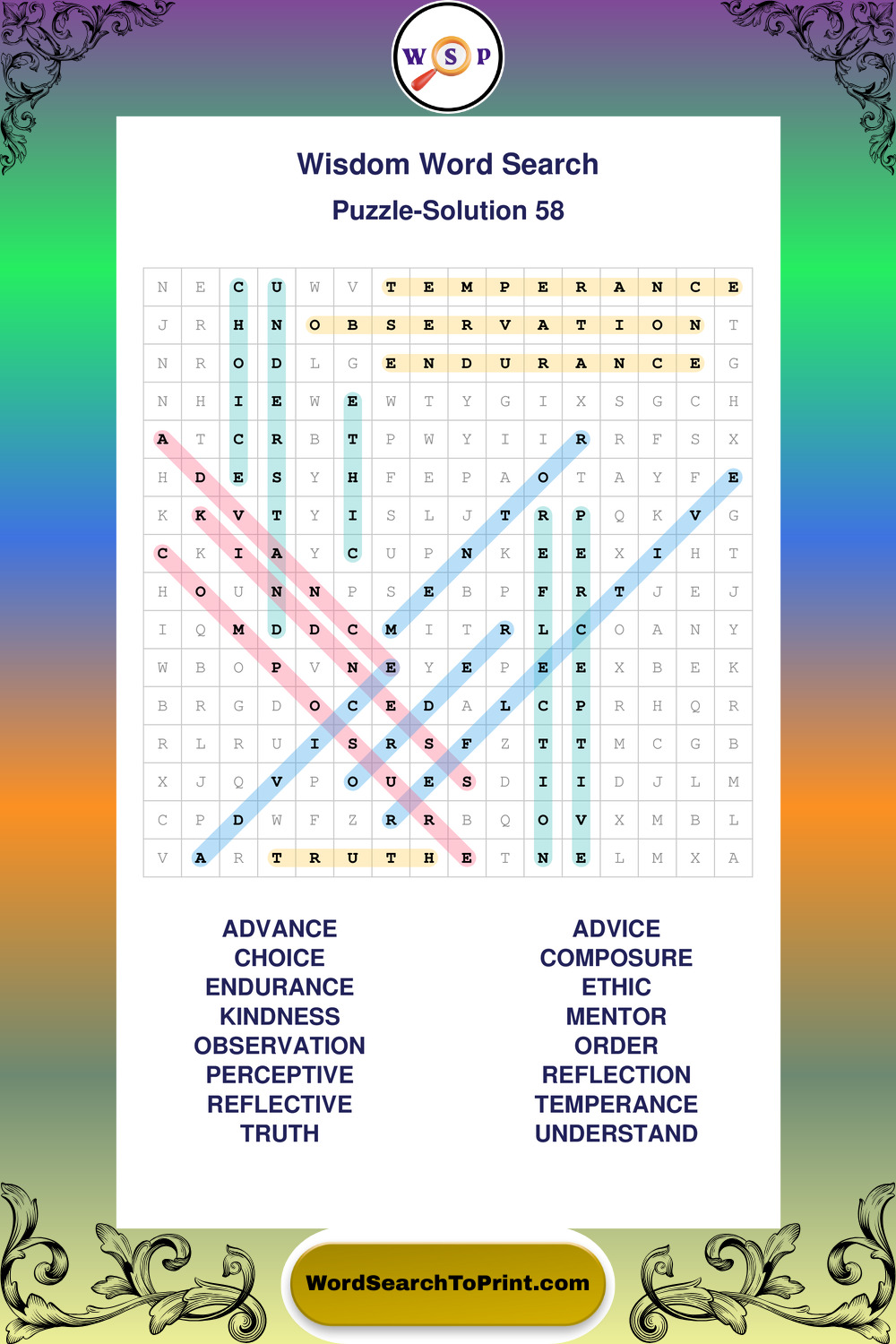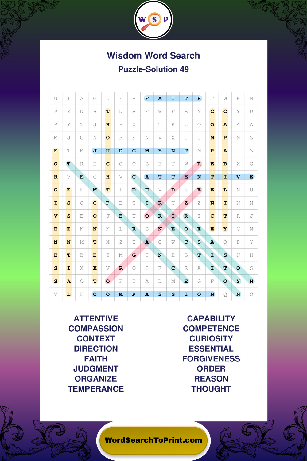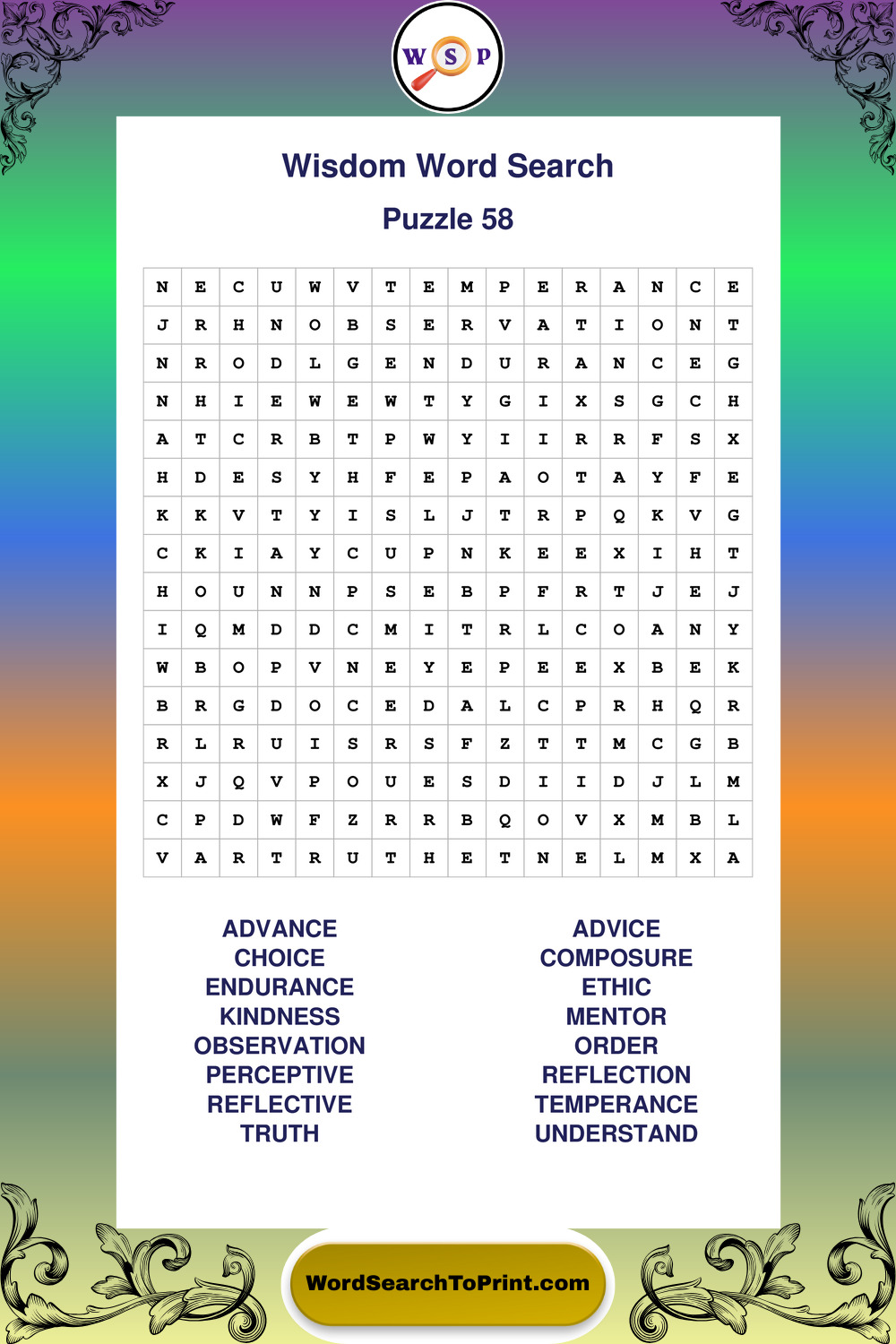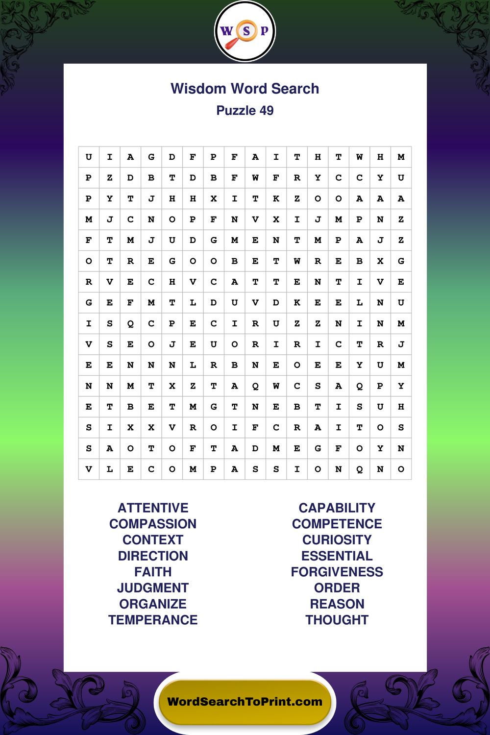Printable Wisdom Wordsearch Puzzles
