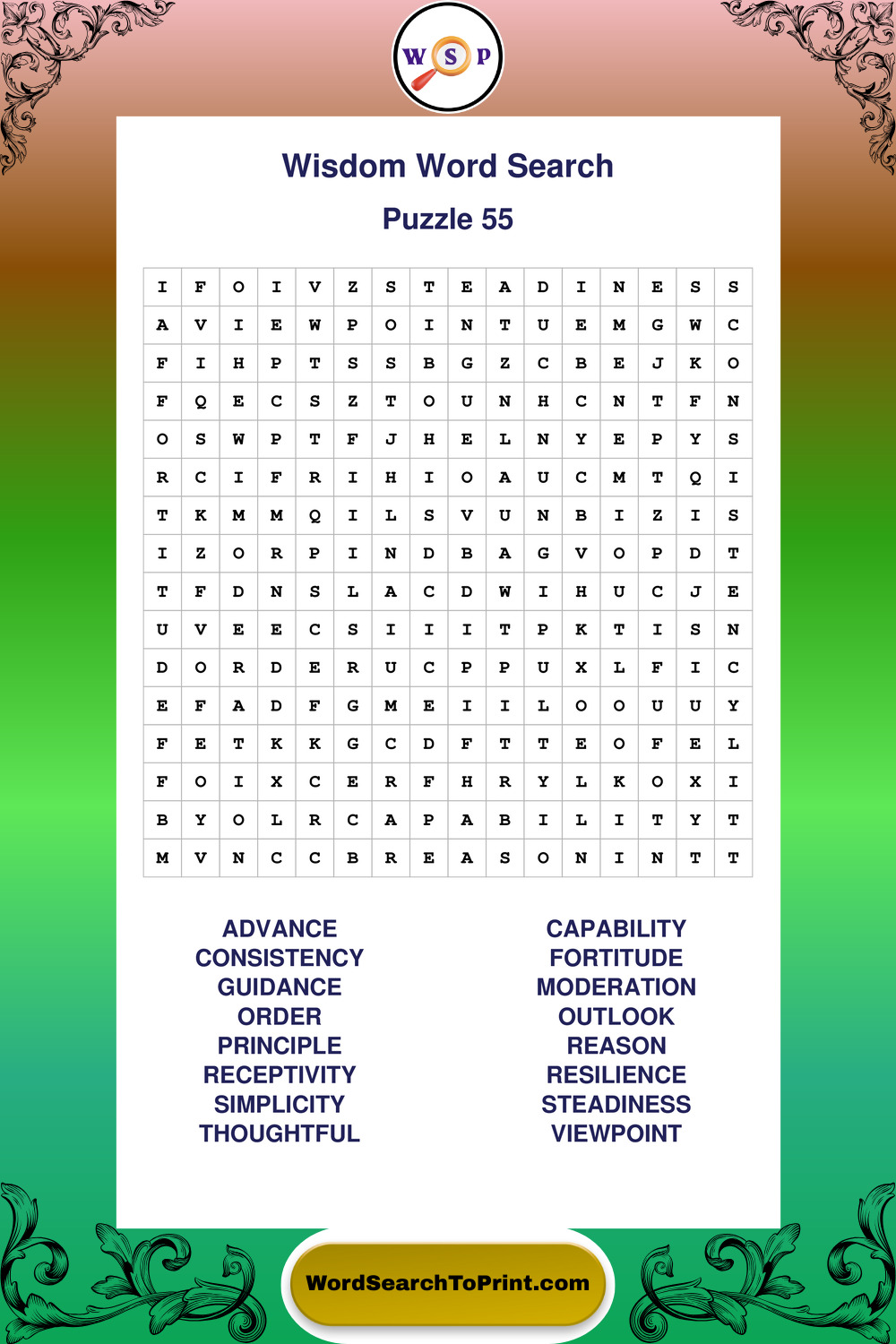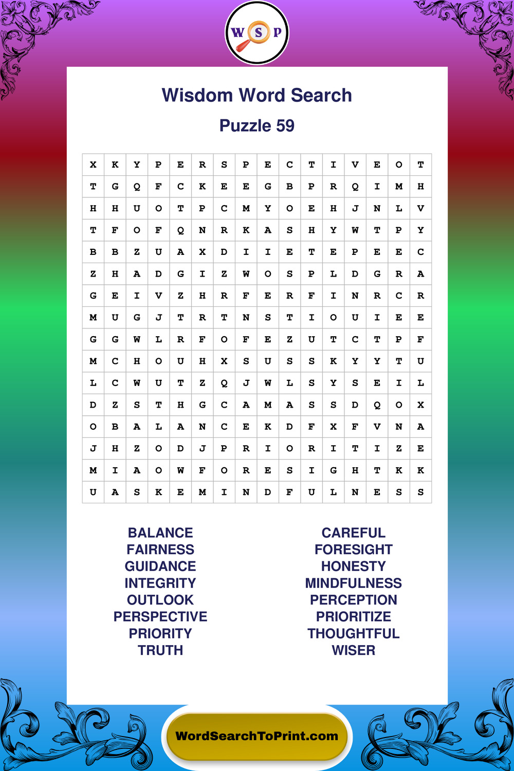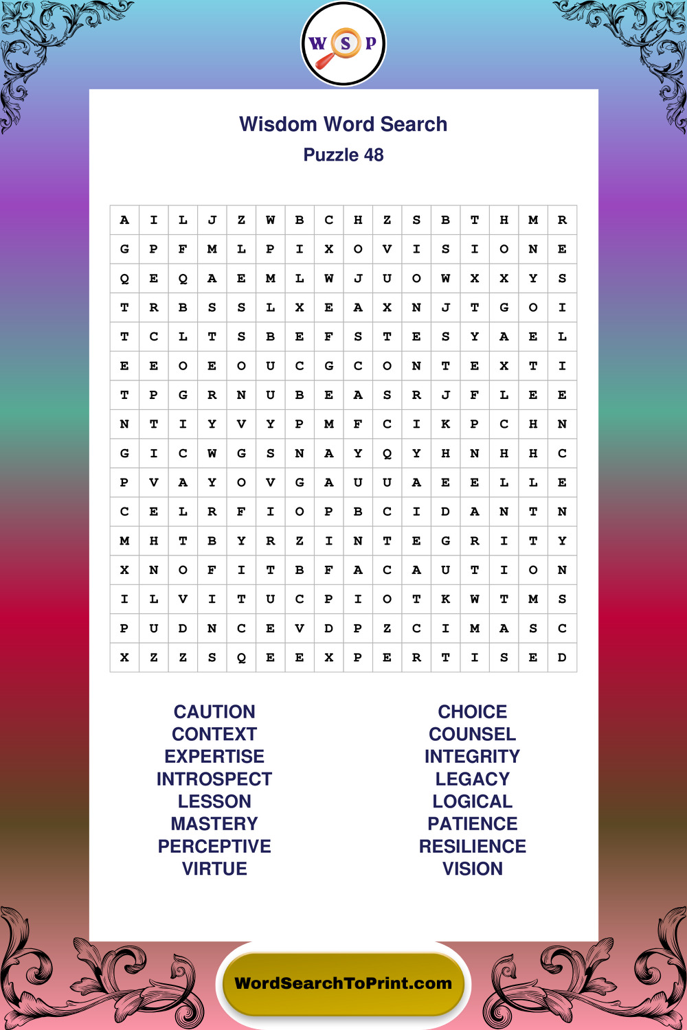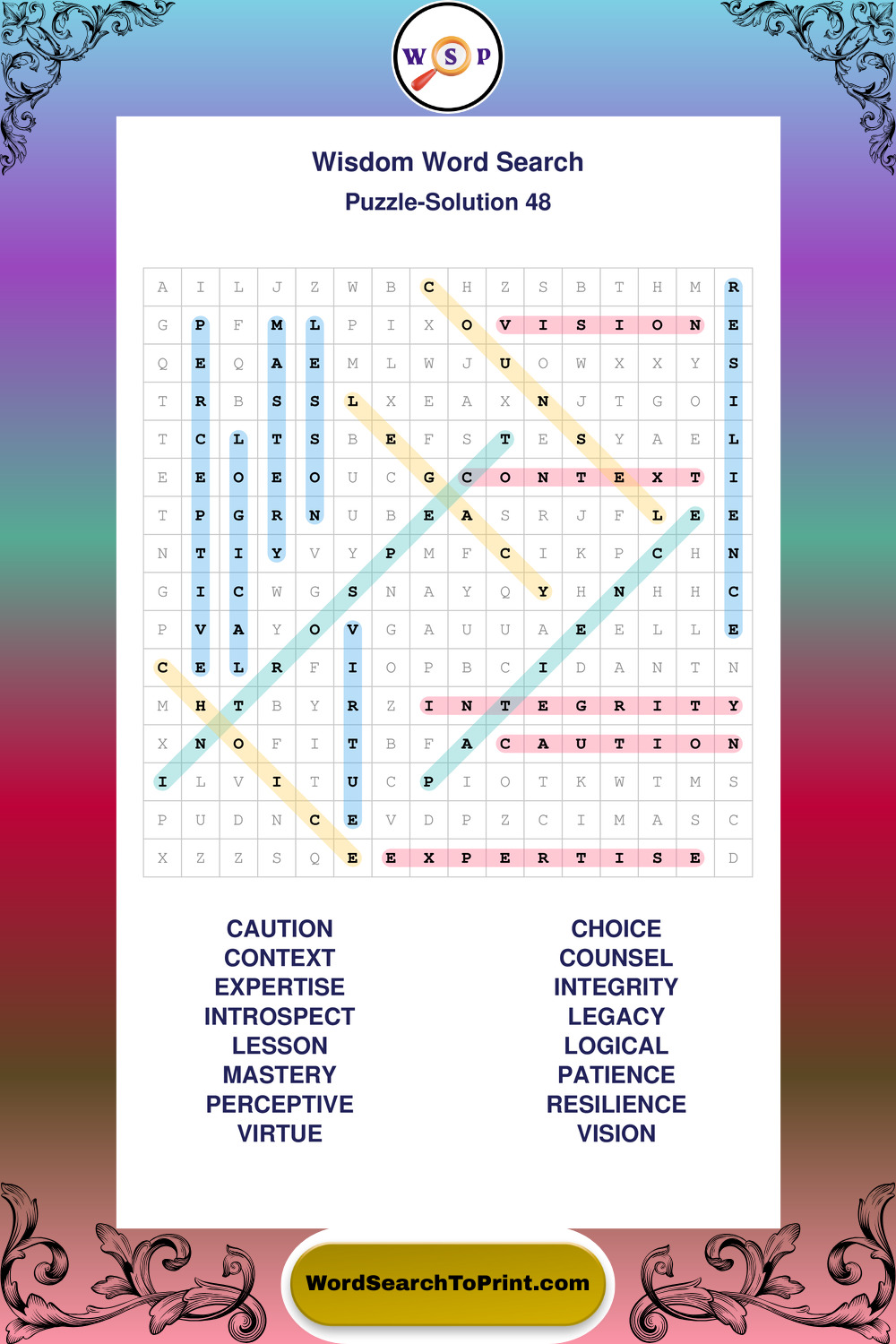 Printable Wisdom Wordsearch Puzzles