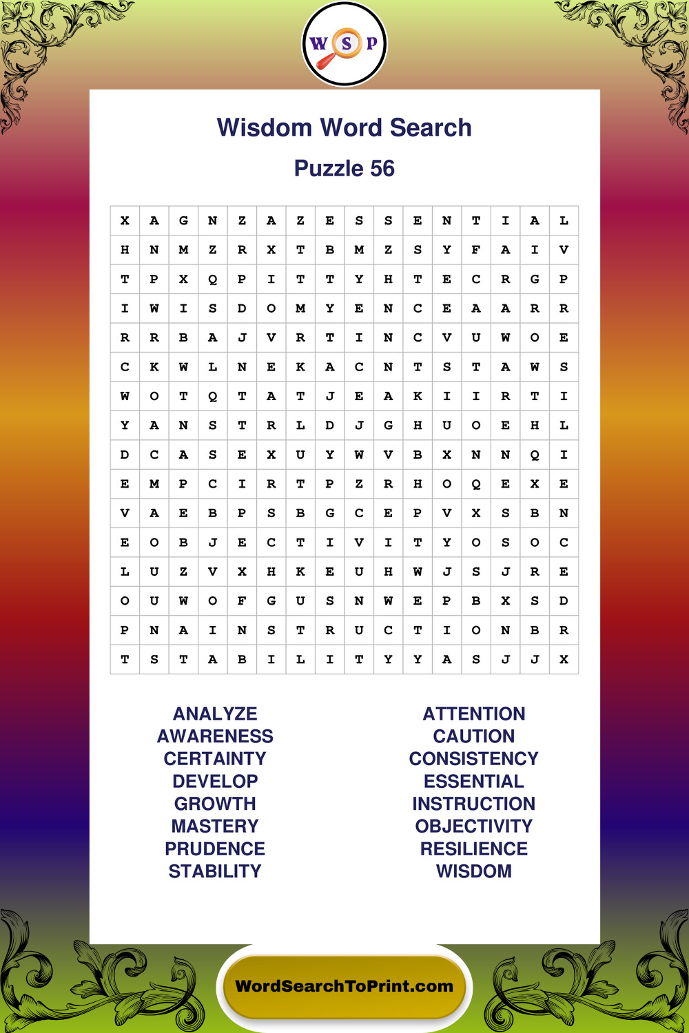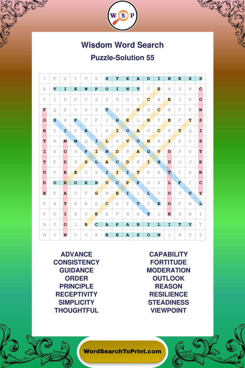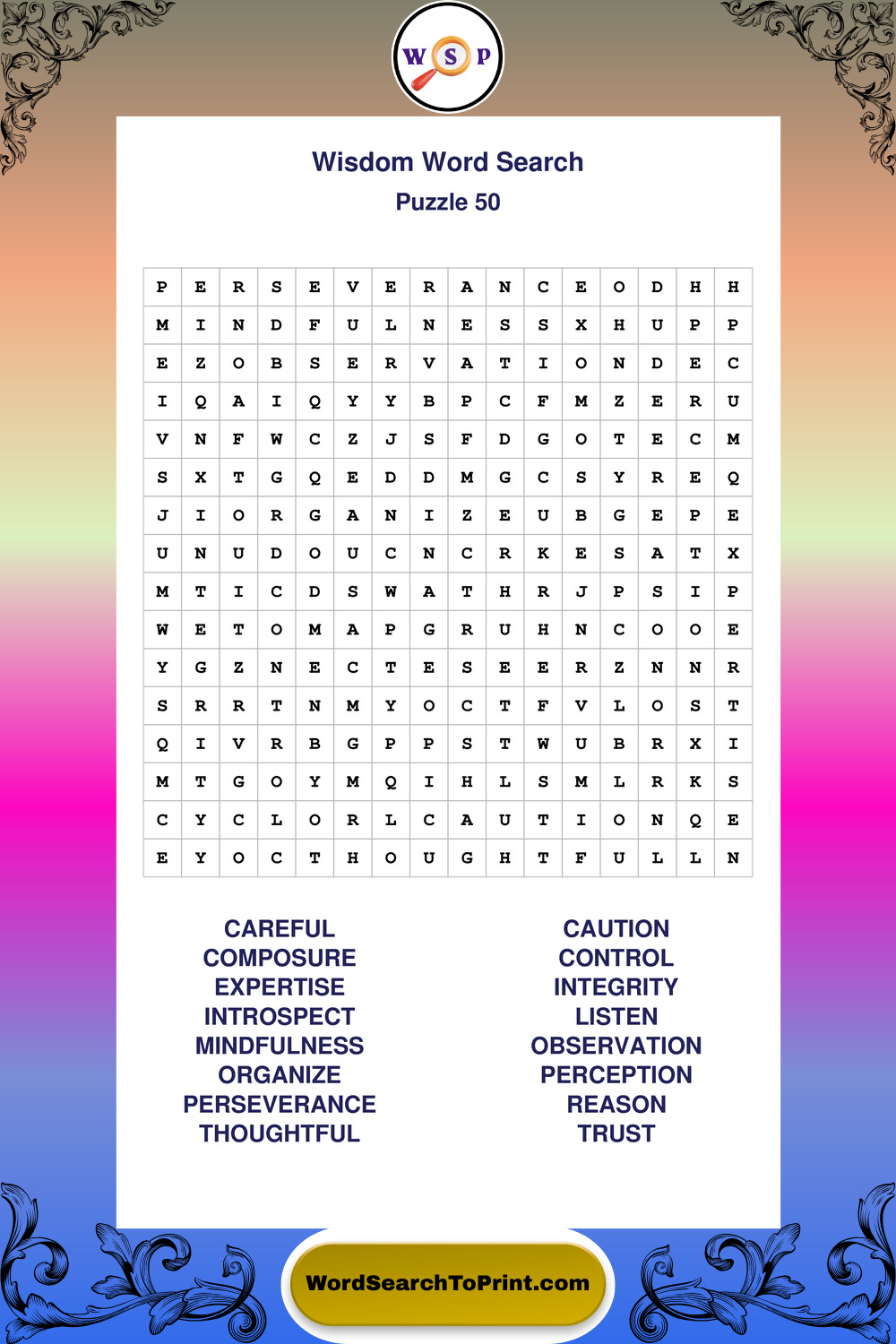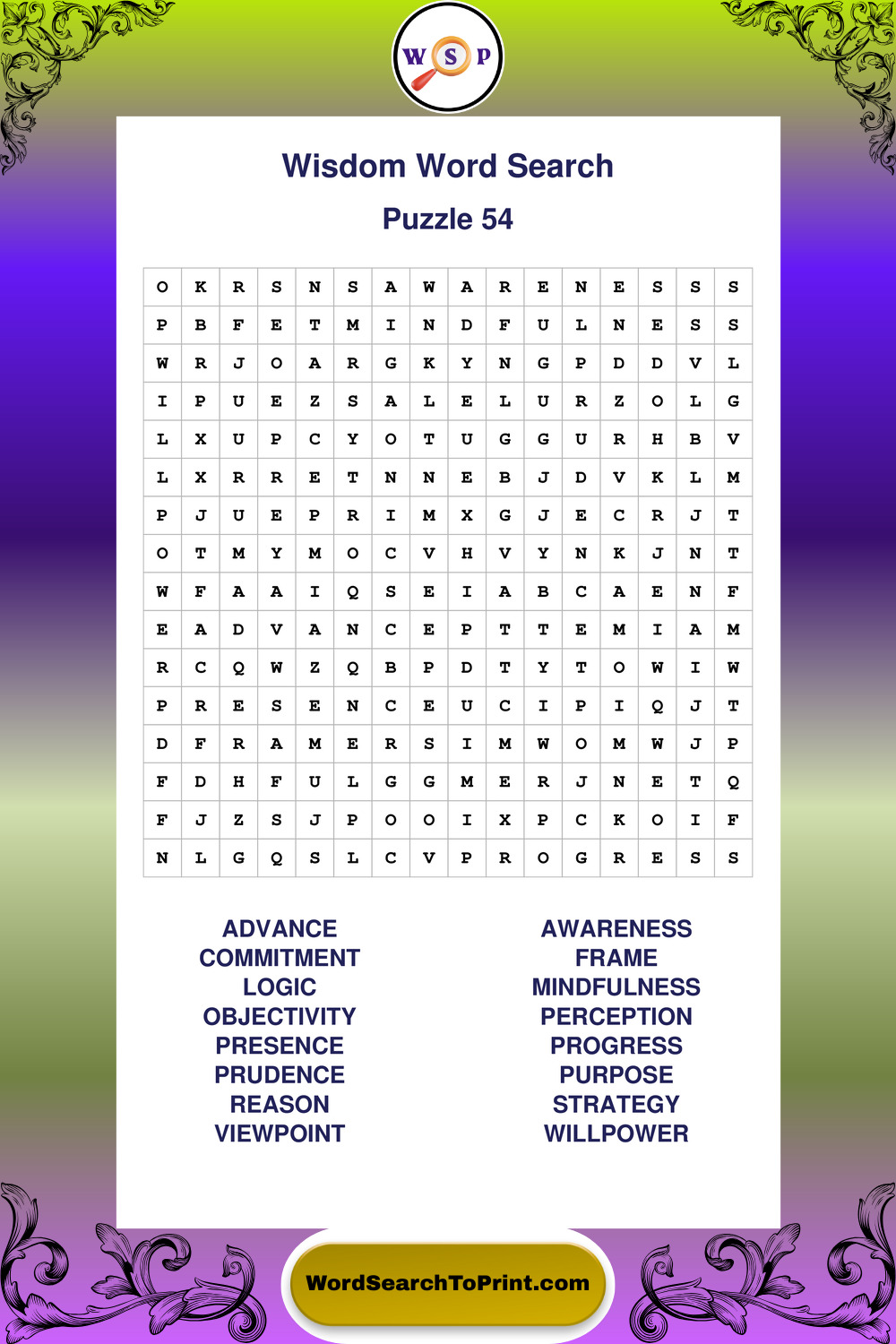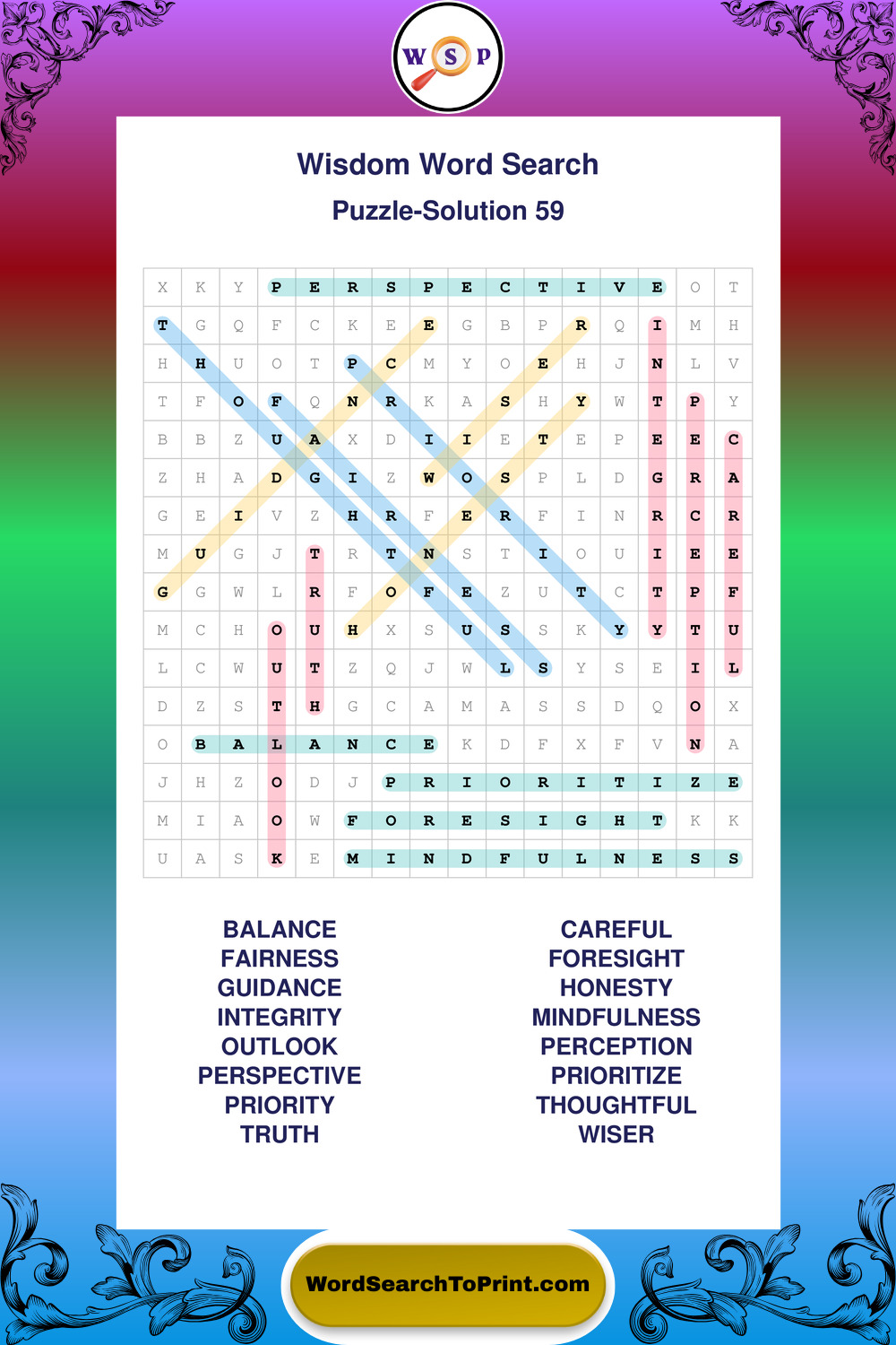 Printable Wisdom Wordsearch Puzzles