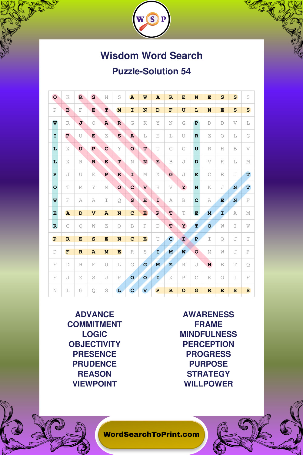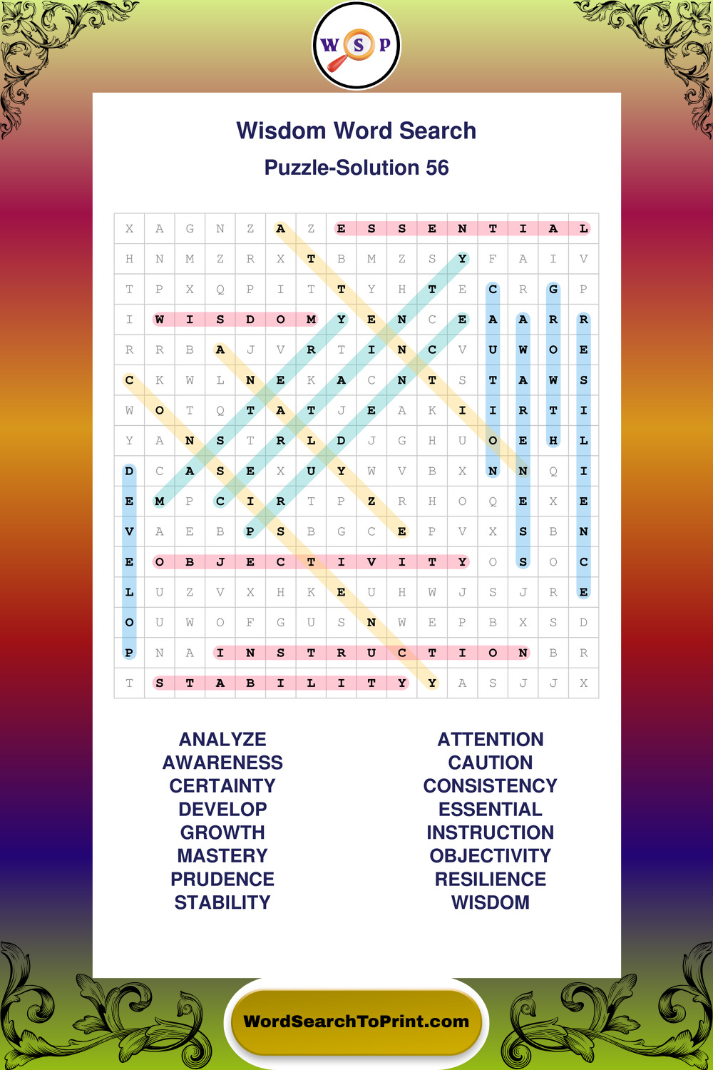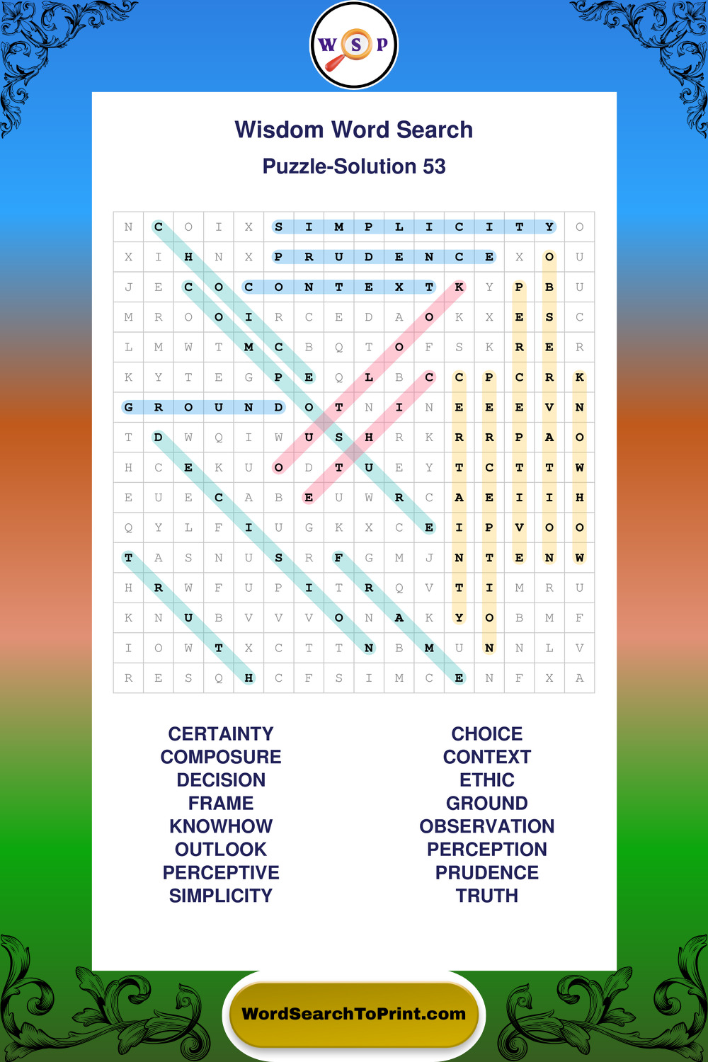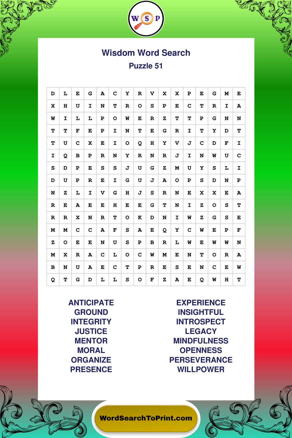 Printable Wisdom Wordsearch Puzzles