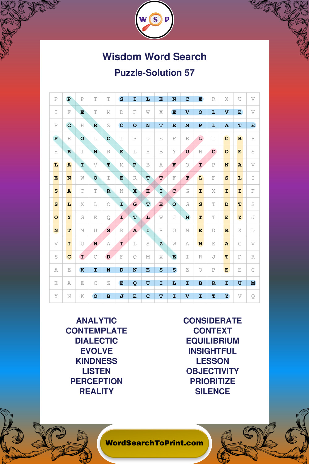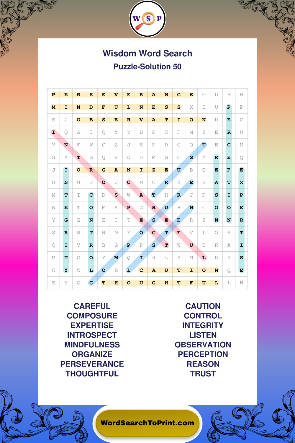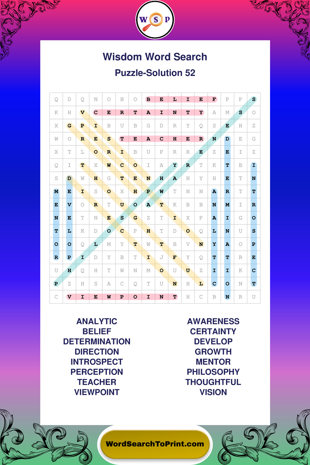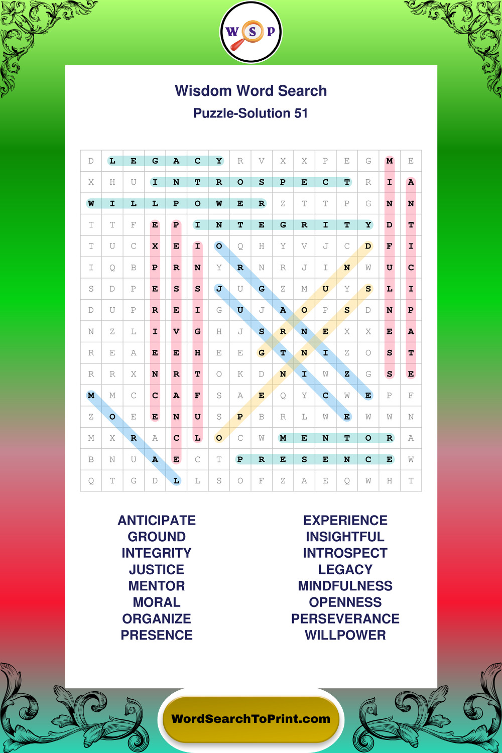 Printable Wisdom Wordsearch Puzzles