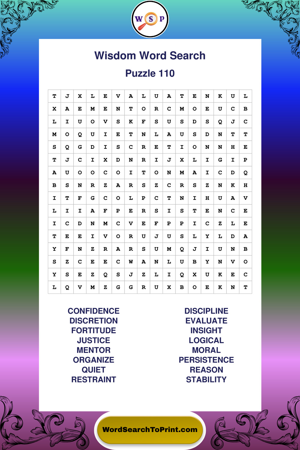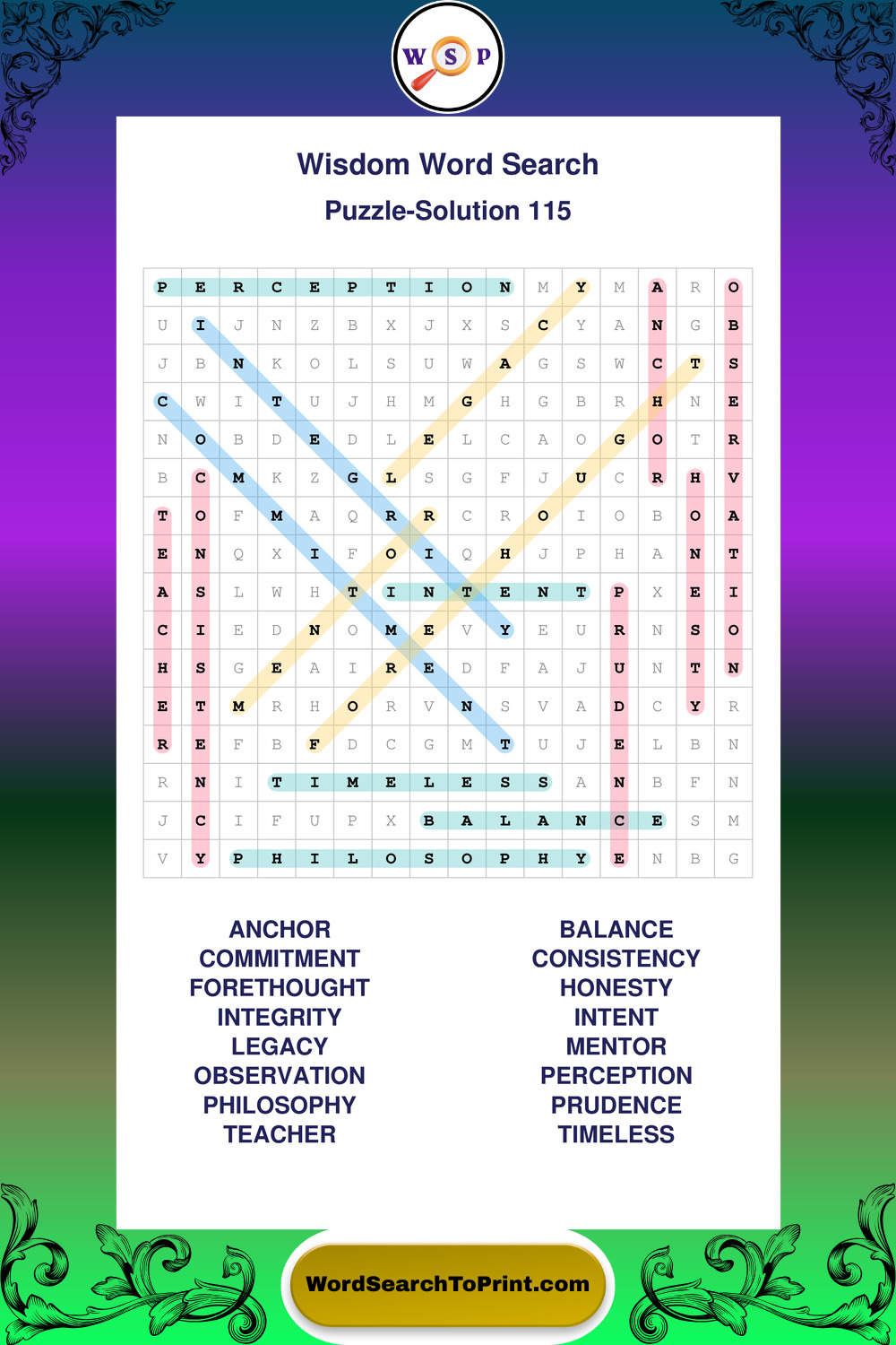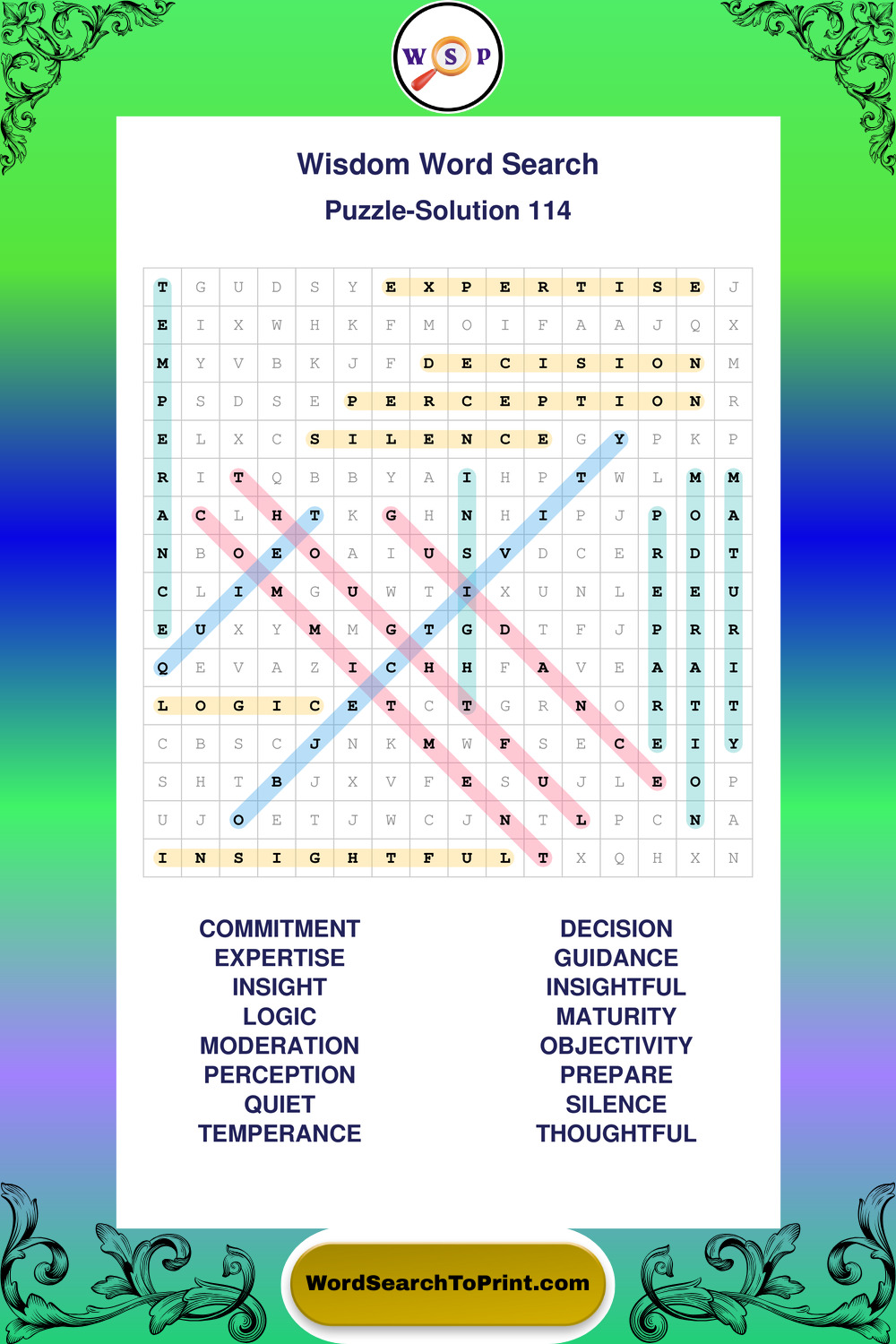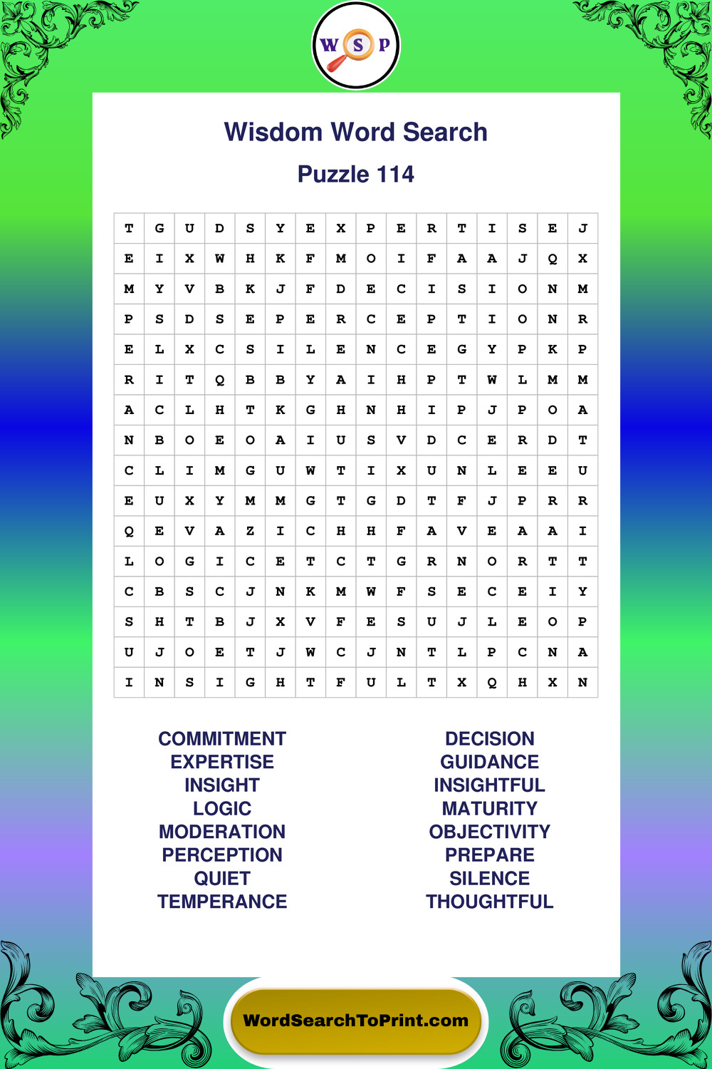 Printable Wisdom Wordsearch Puzzles