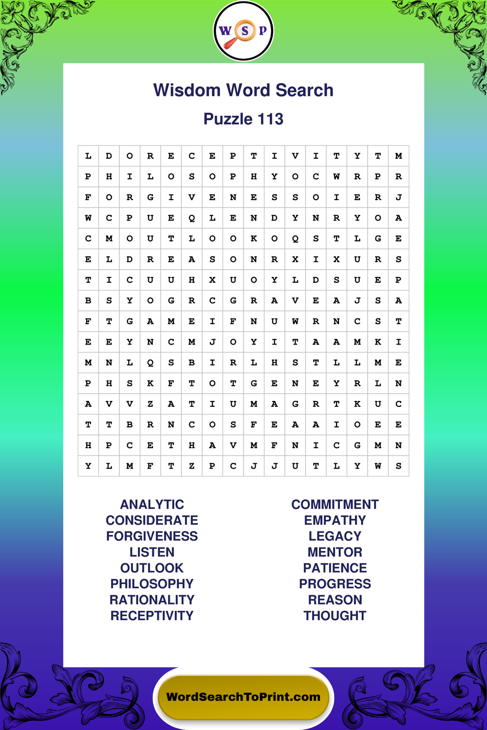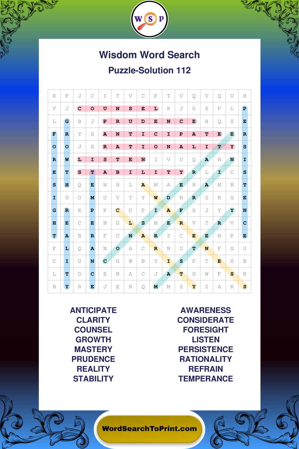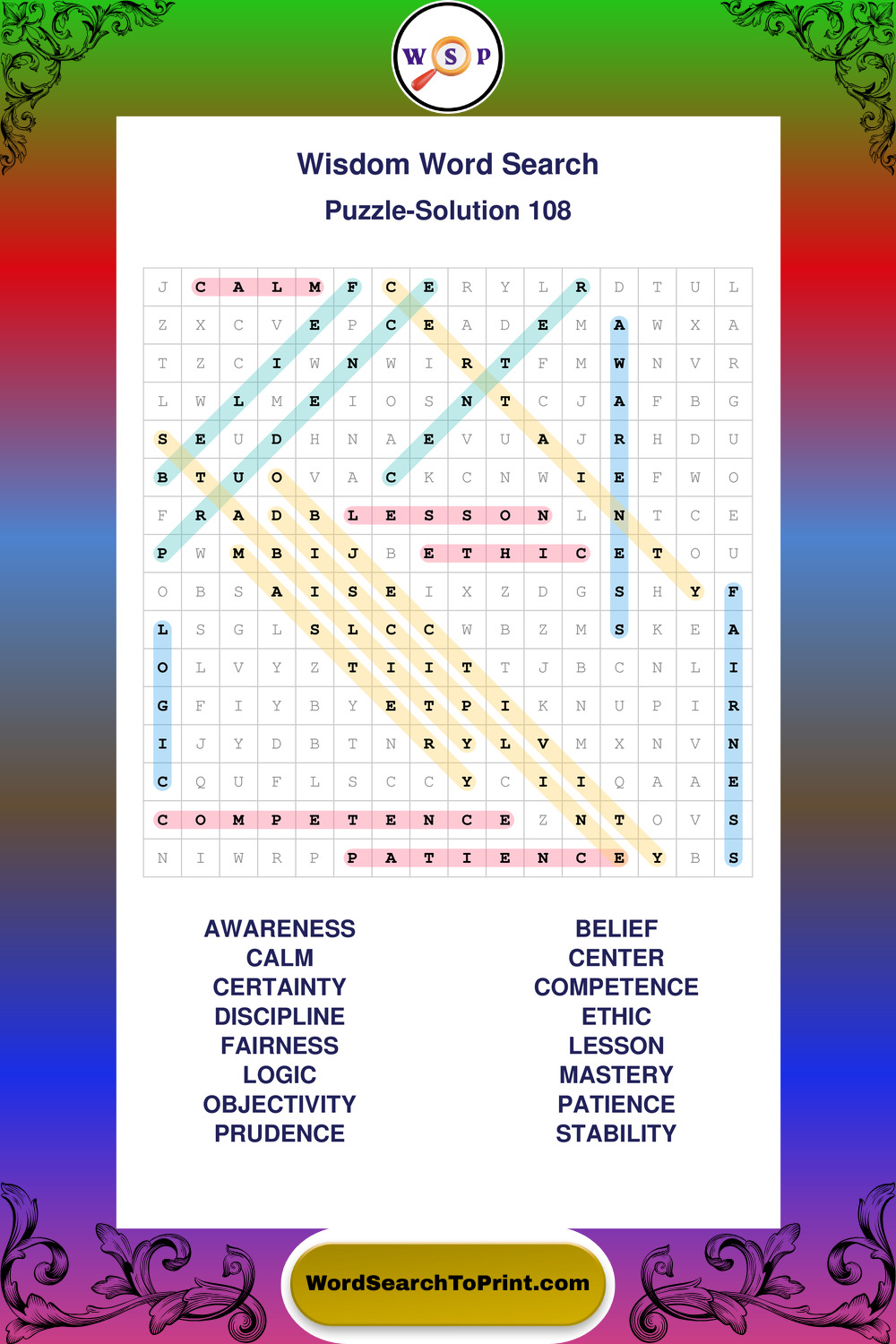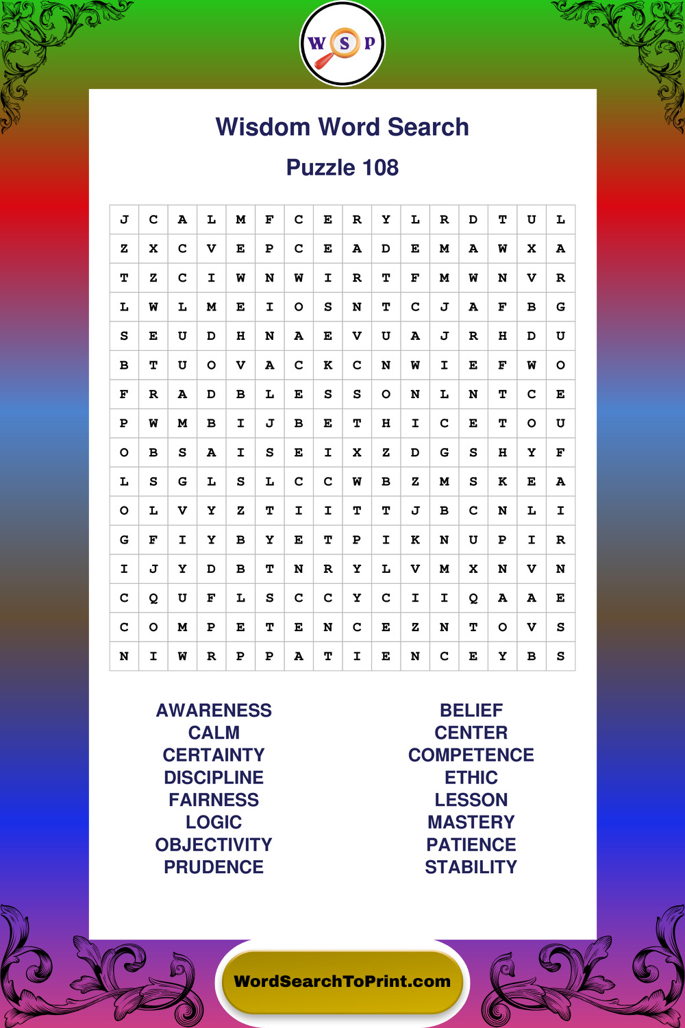 Printable Wisdom Wordsearch Puzzles