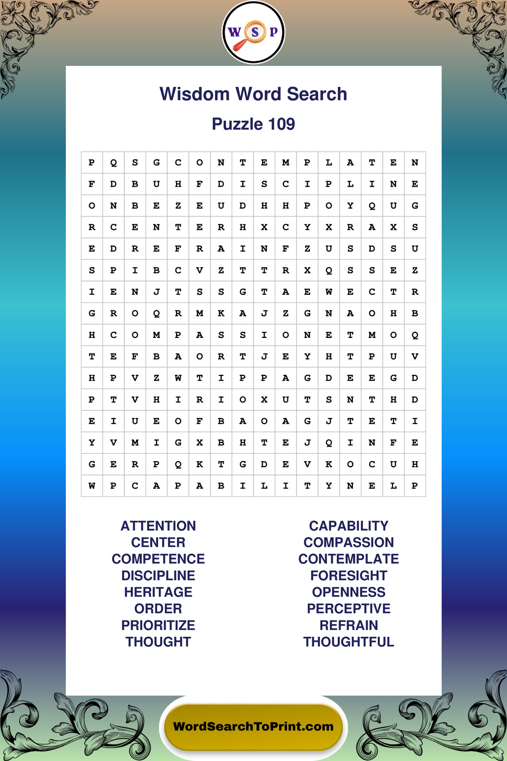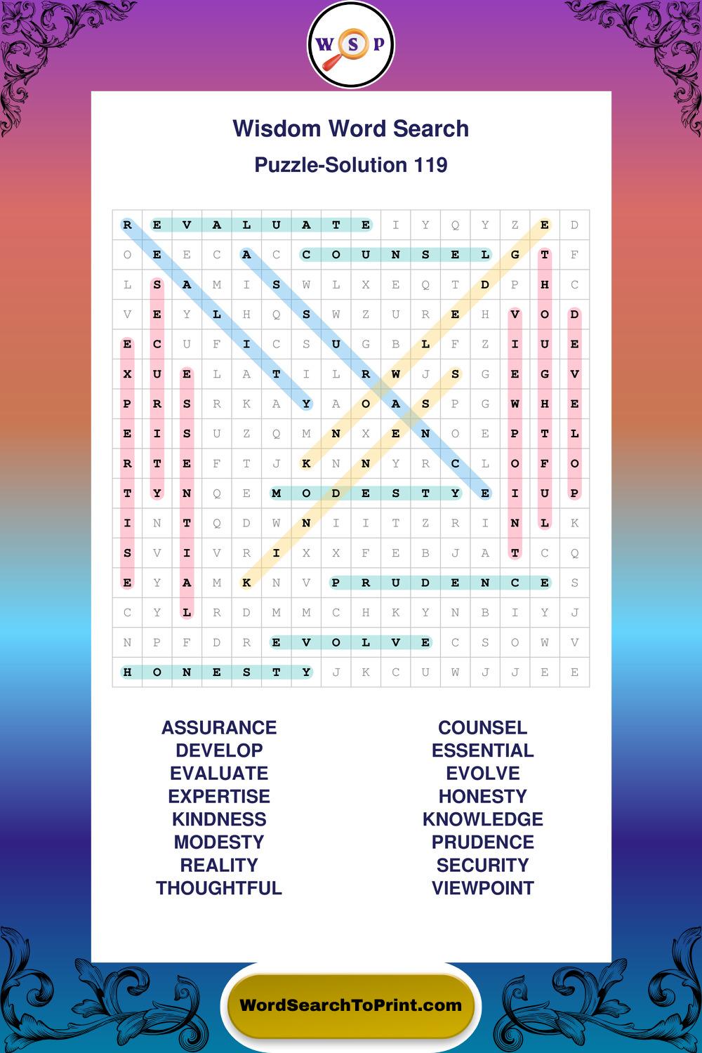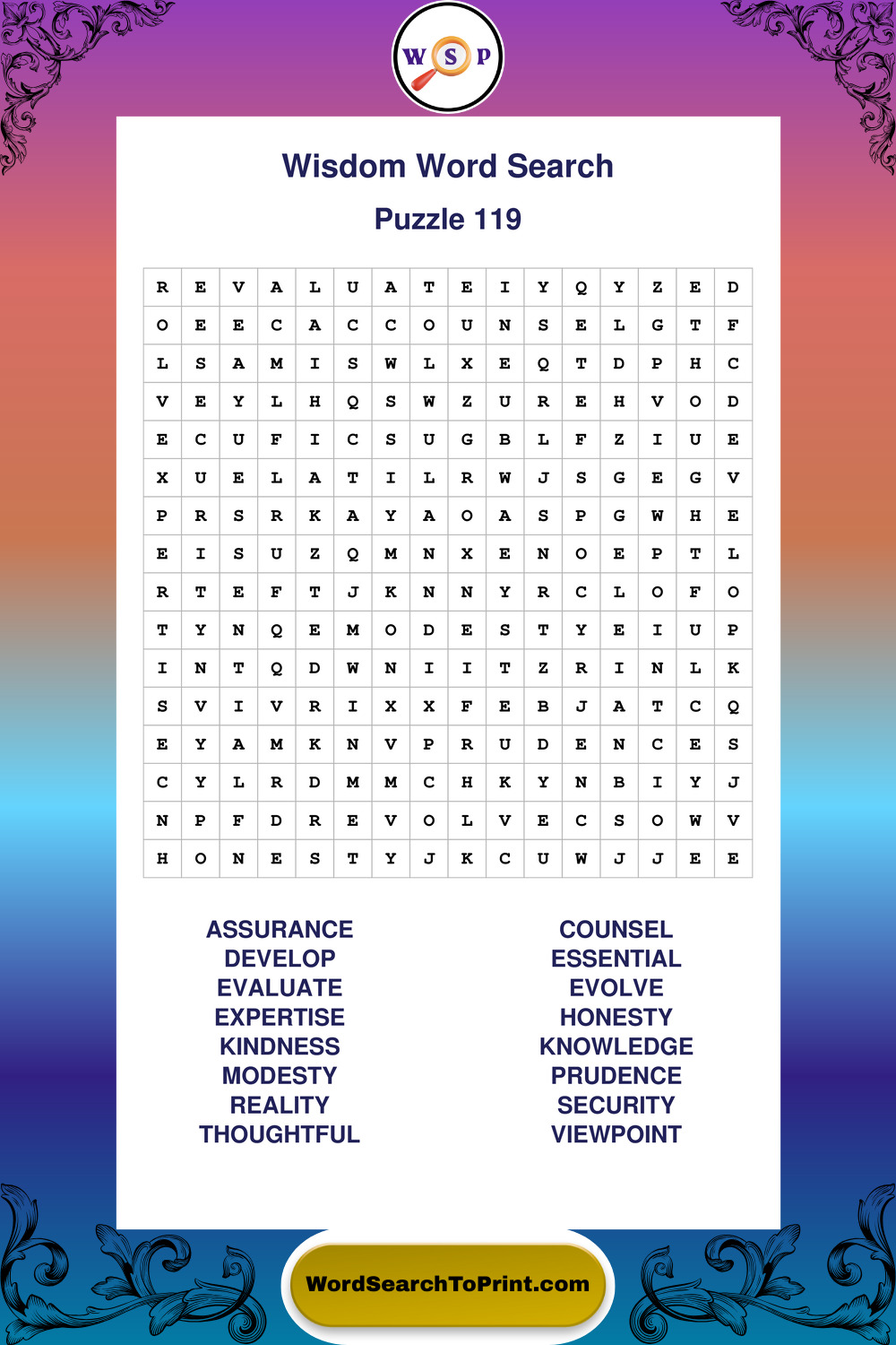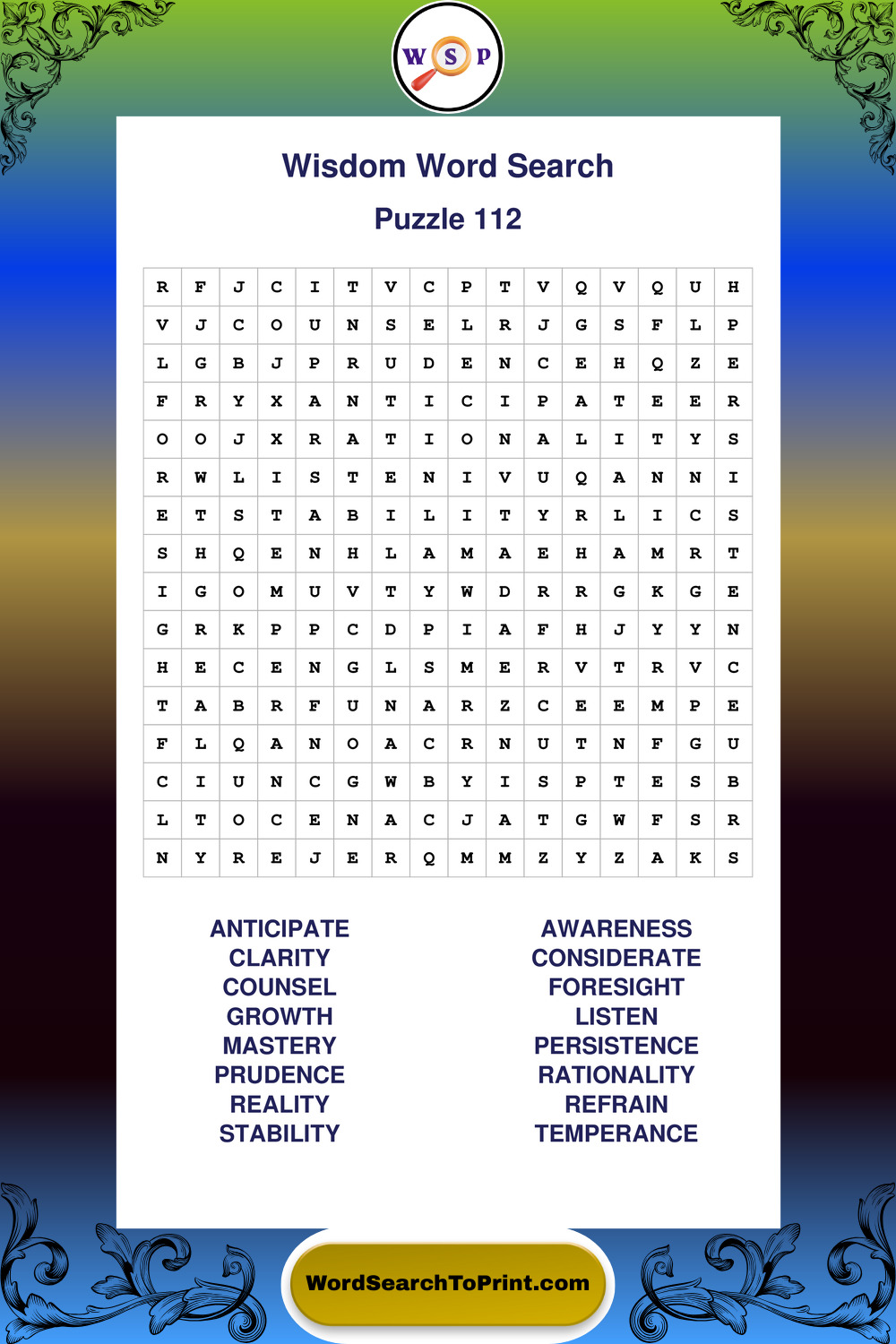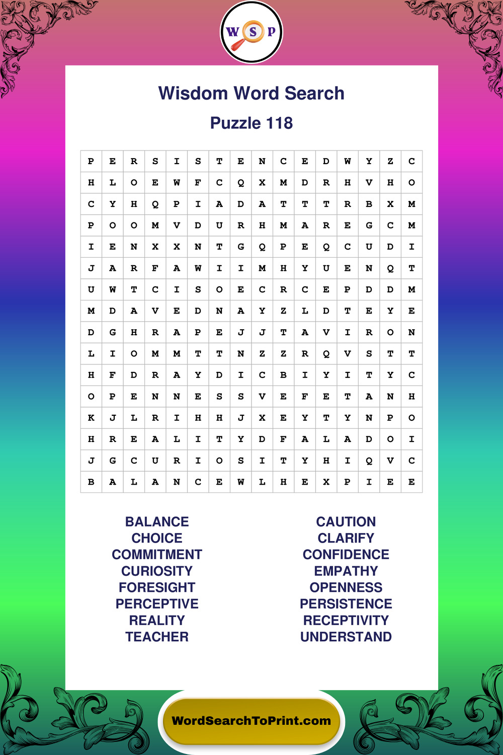 Printable Wisdom Wordsearch Puzzles