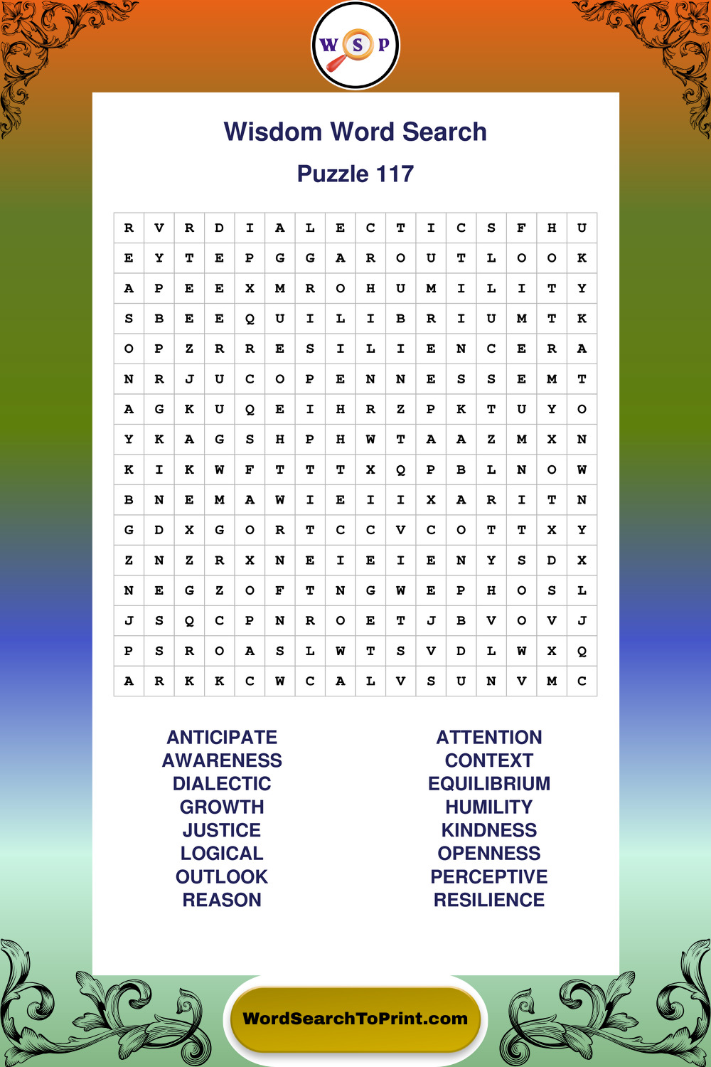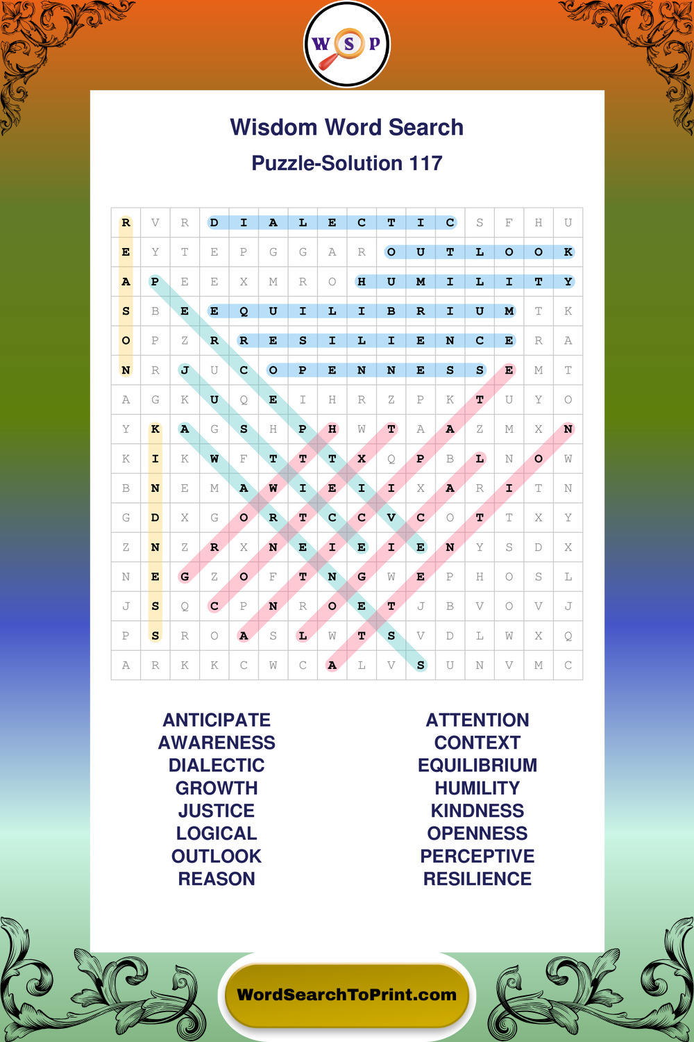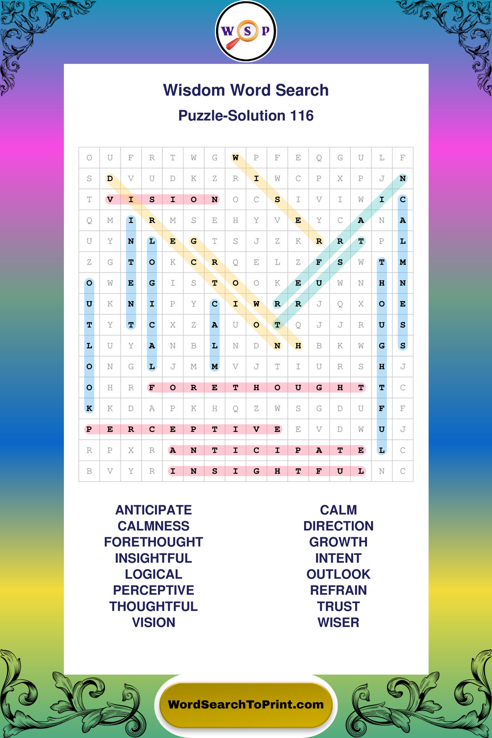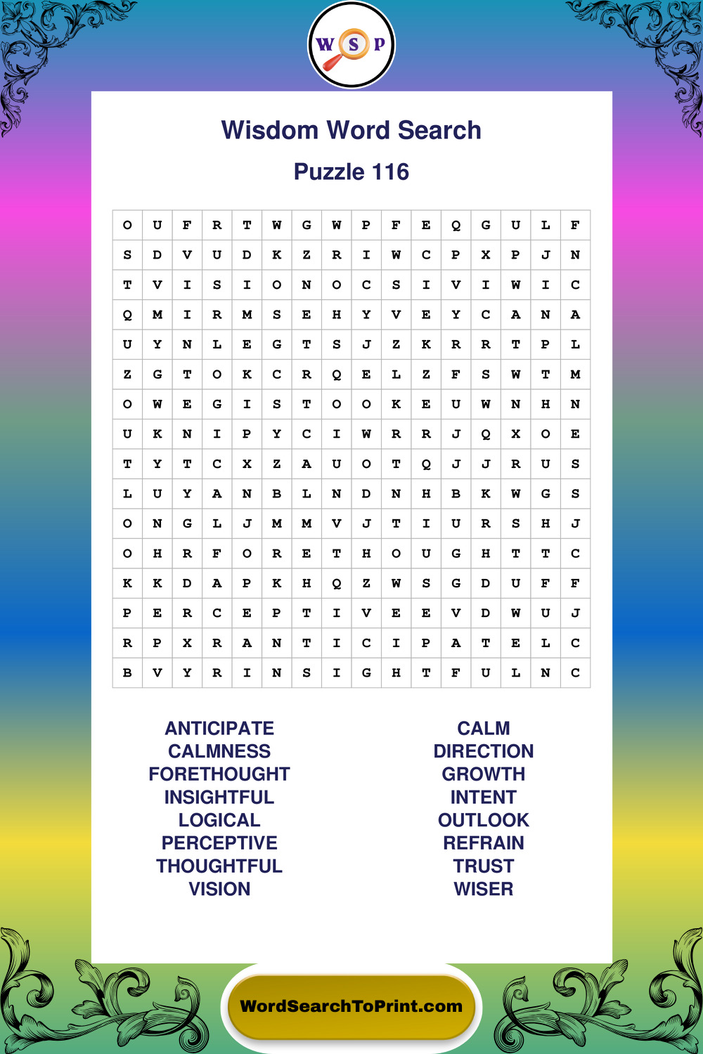 Printable Wisdom Wordsearch Puzzles