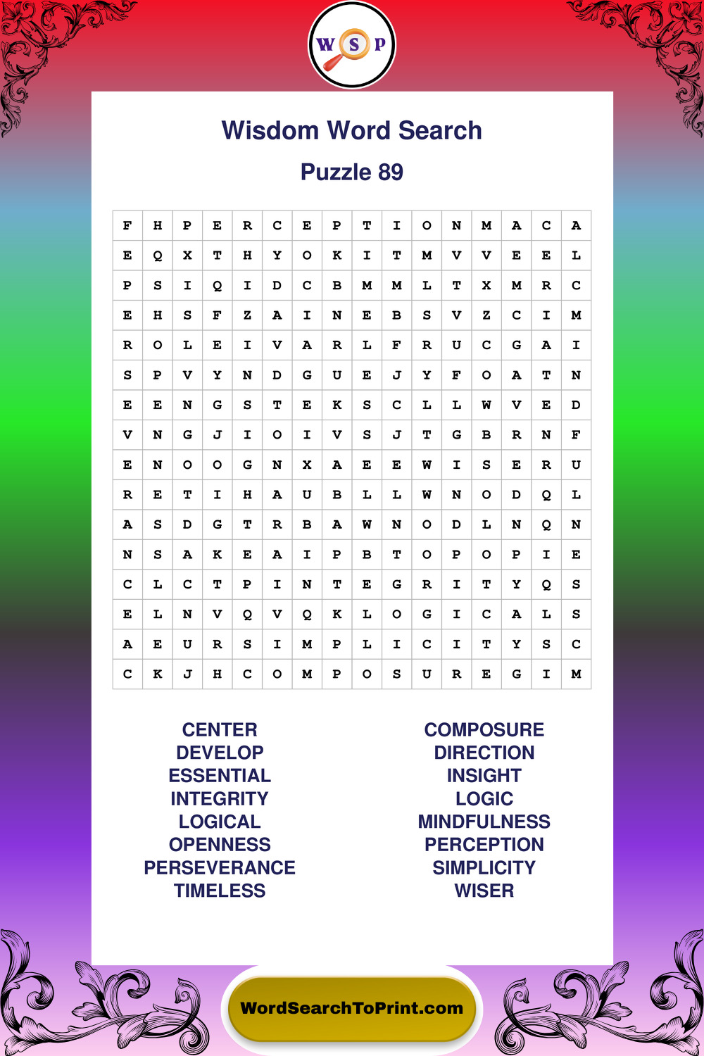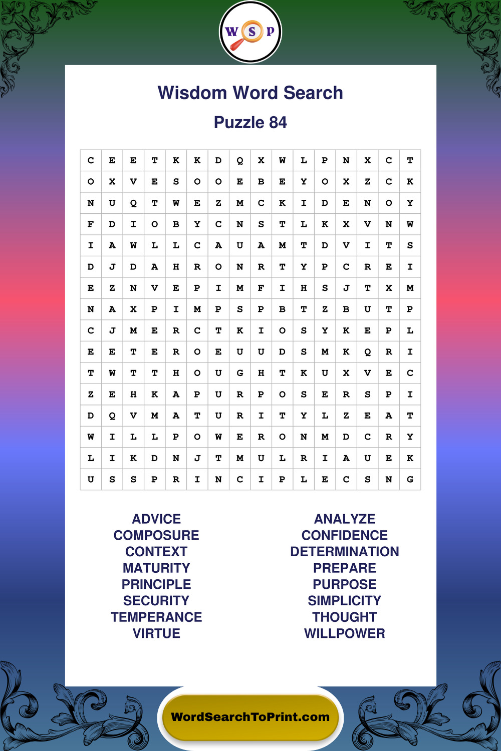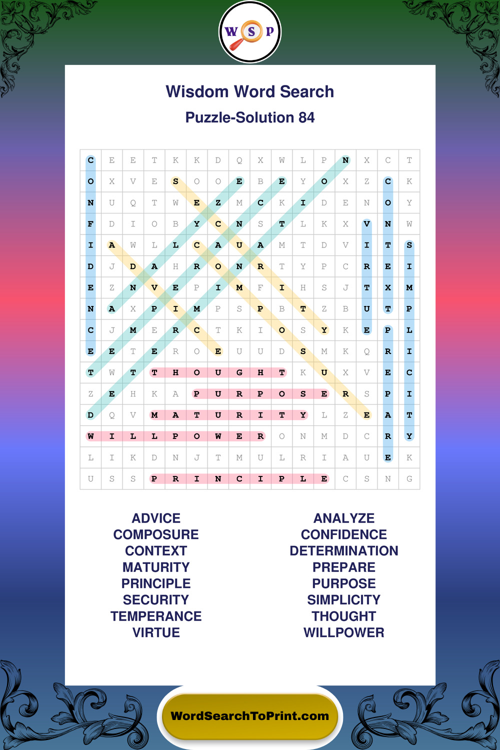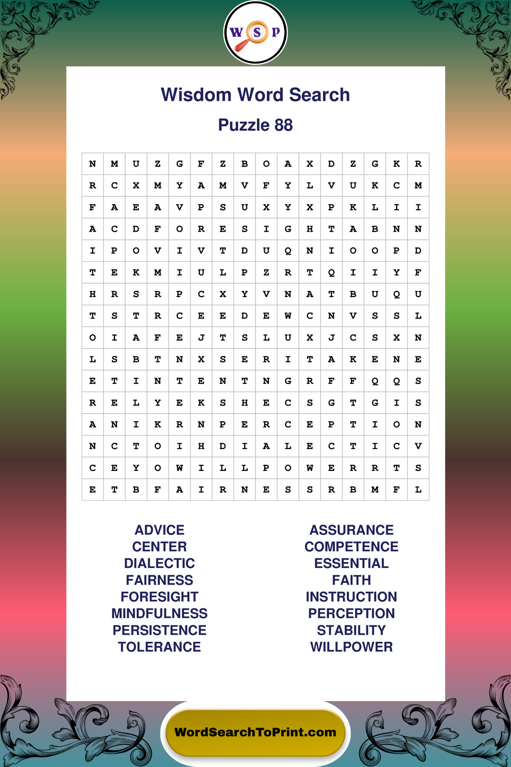 Printable Wisdom Wordsearch Puzzles