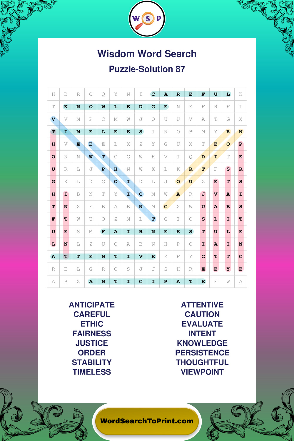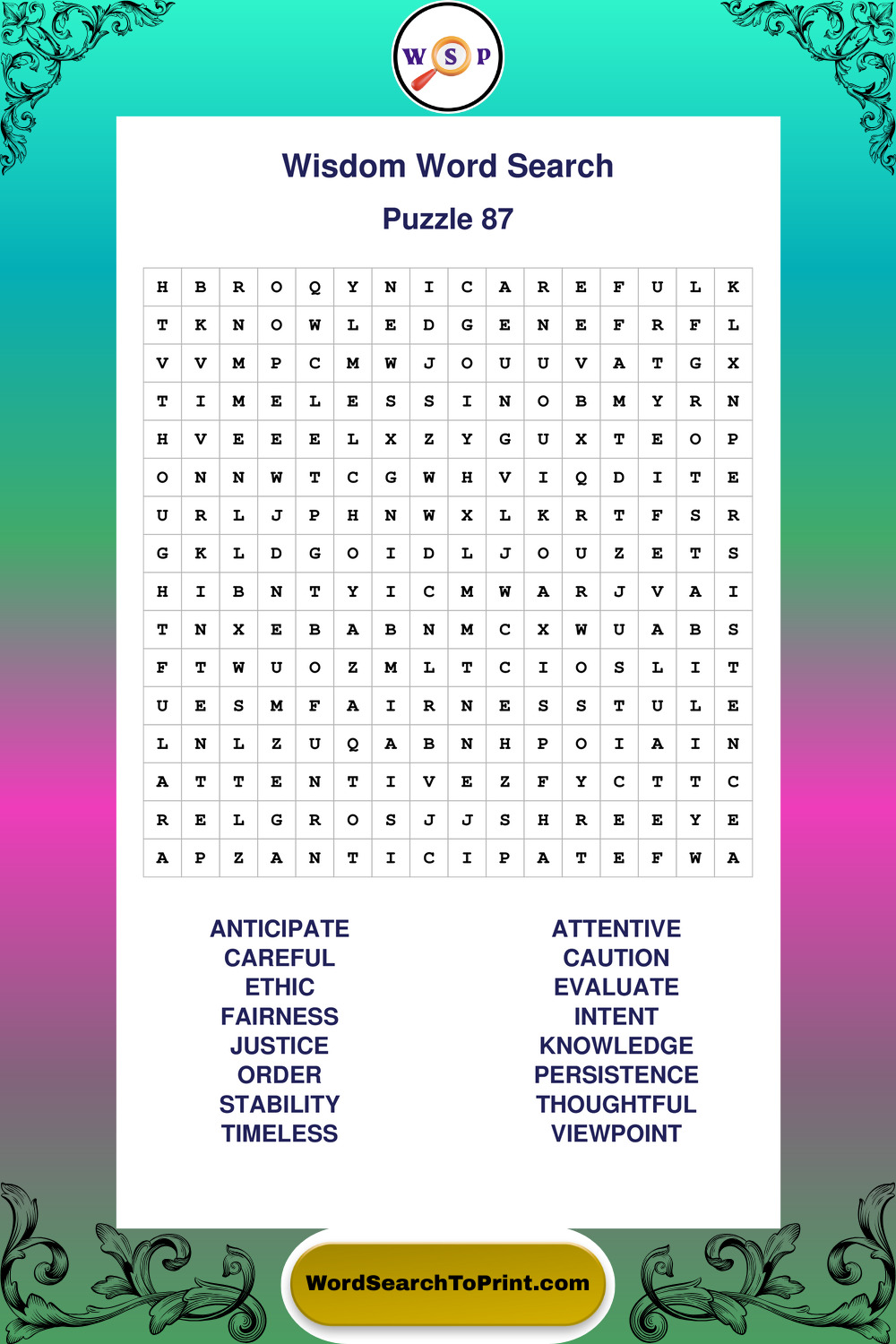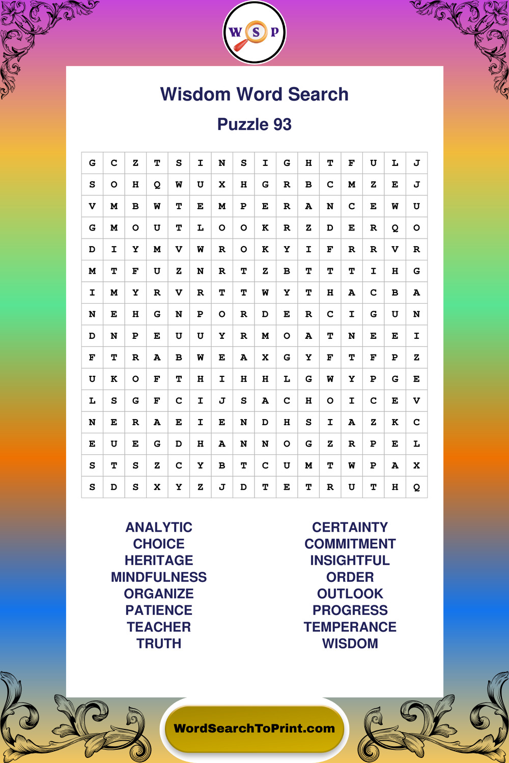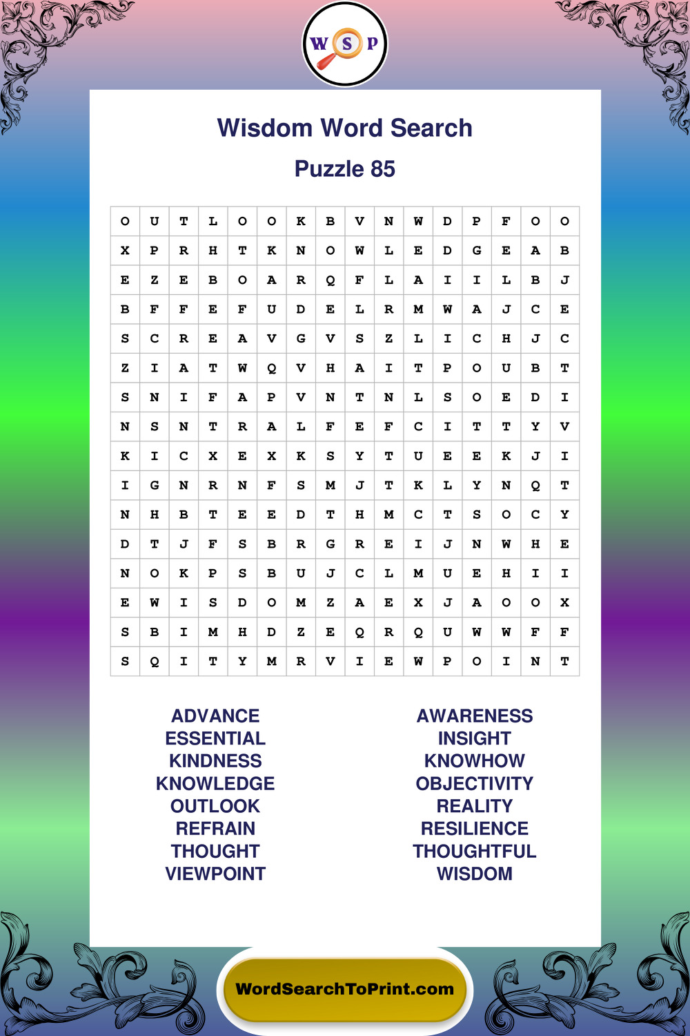 Printable Wisdom Wordsearch Puzzles