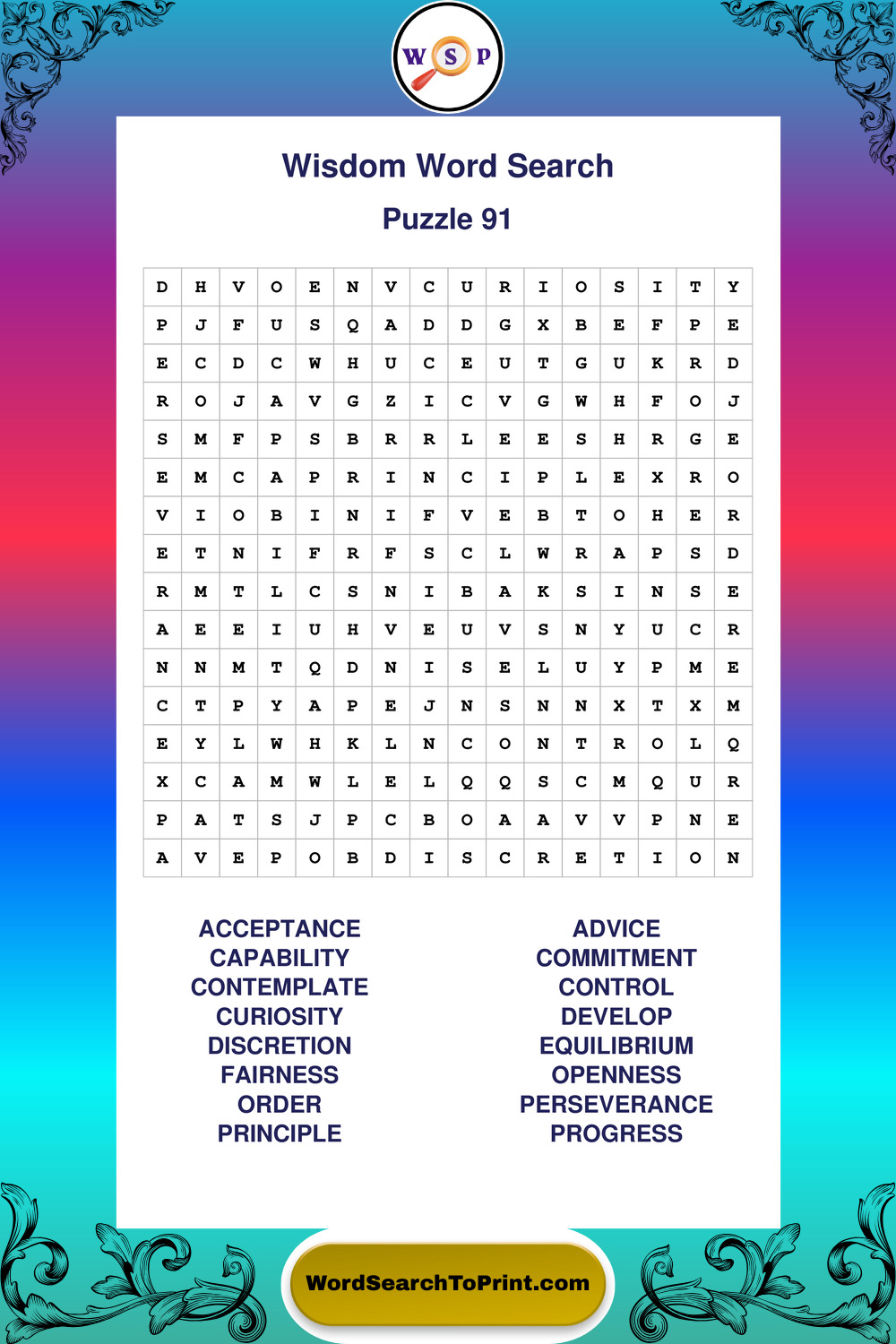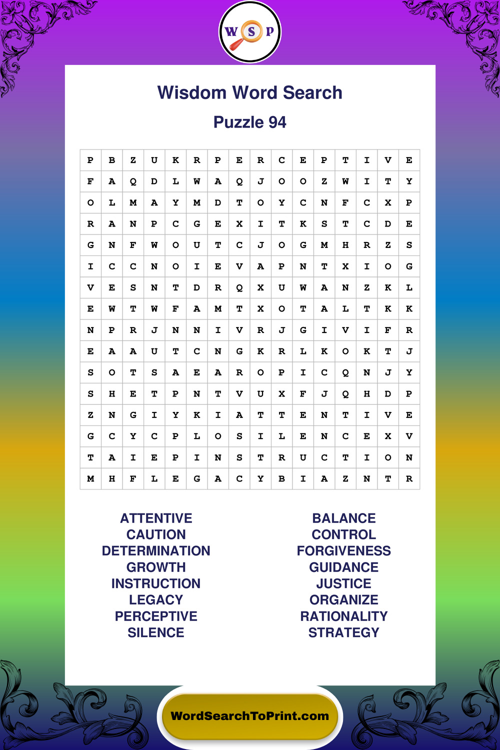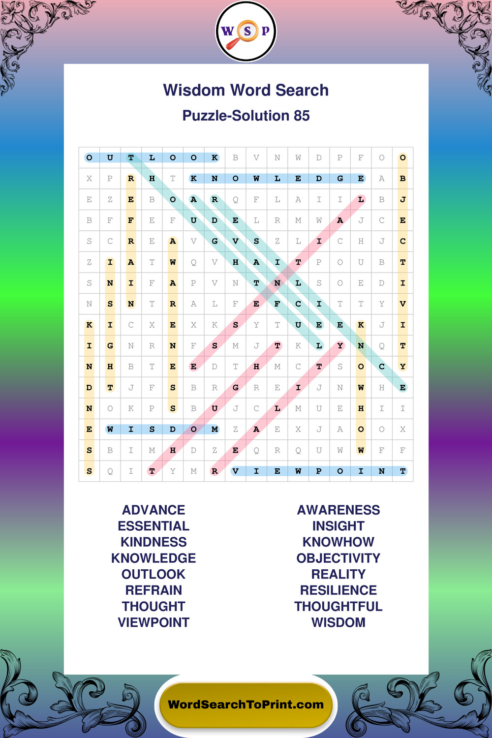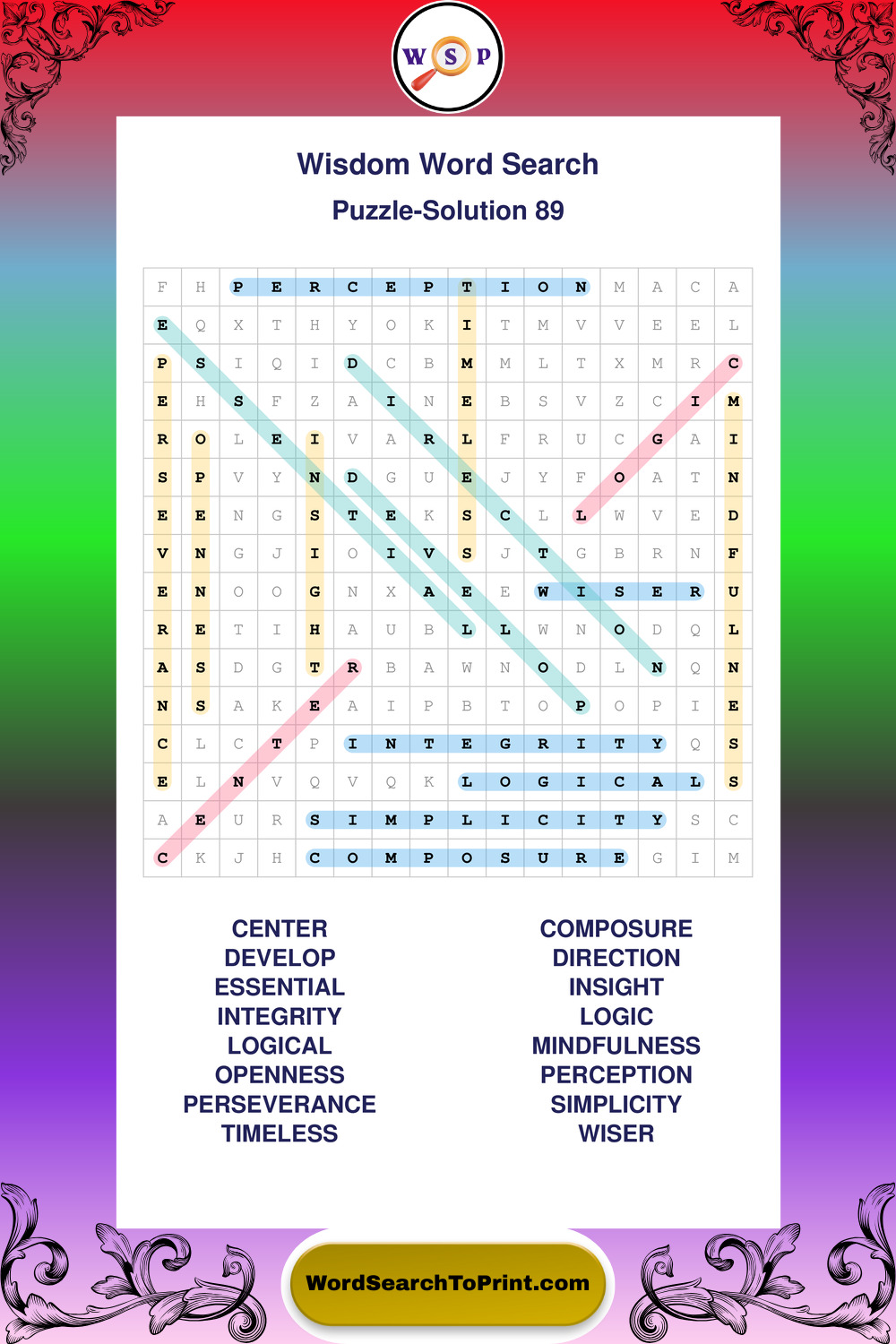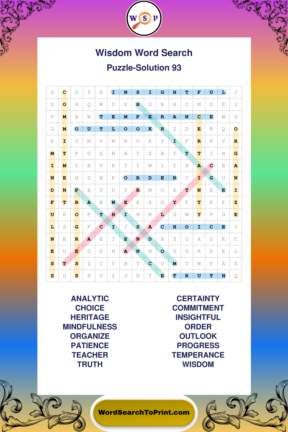 Printable Wisdom Wordsearch Puzzles
