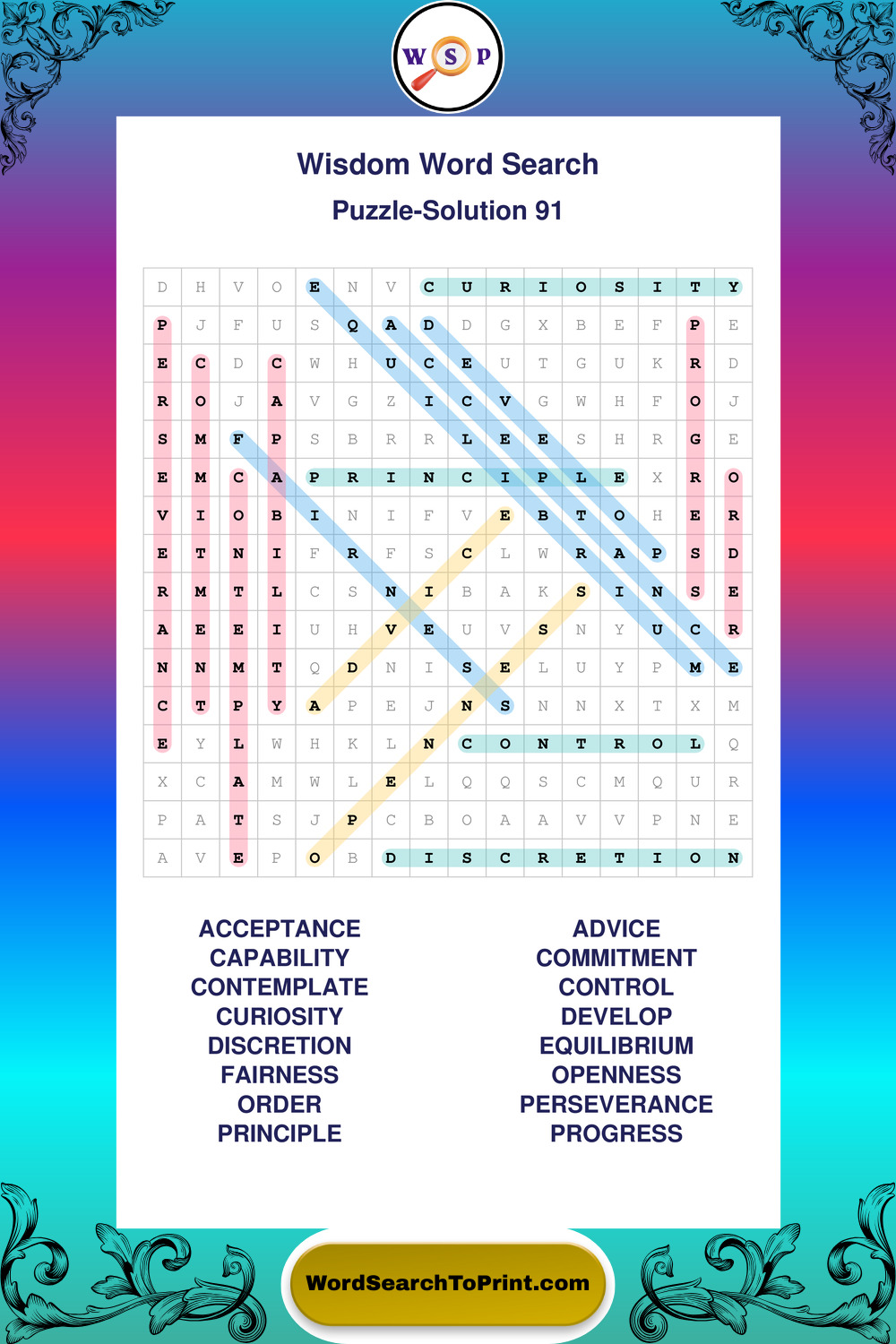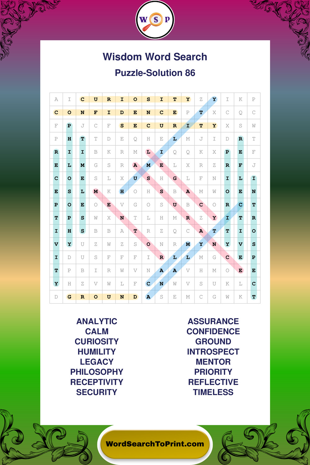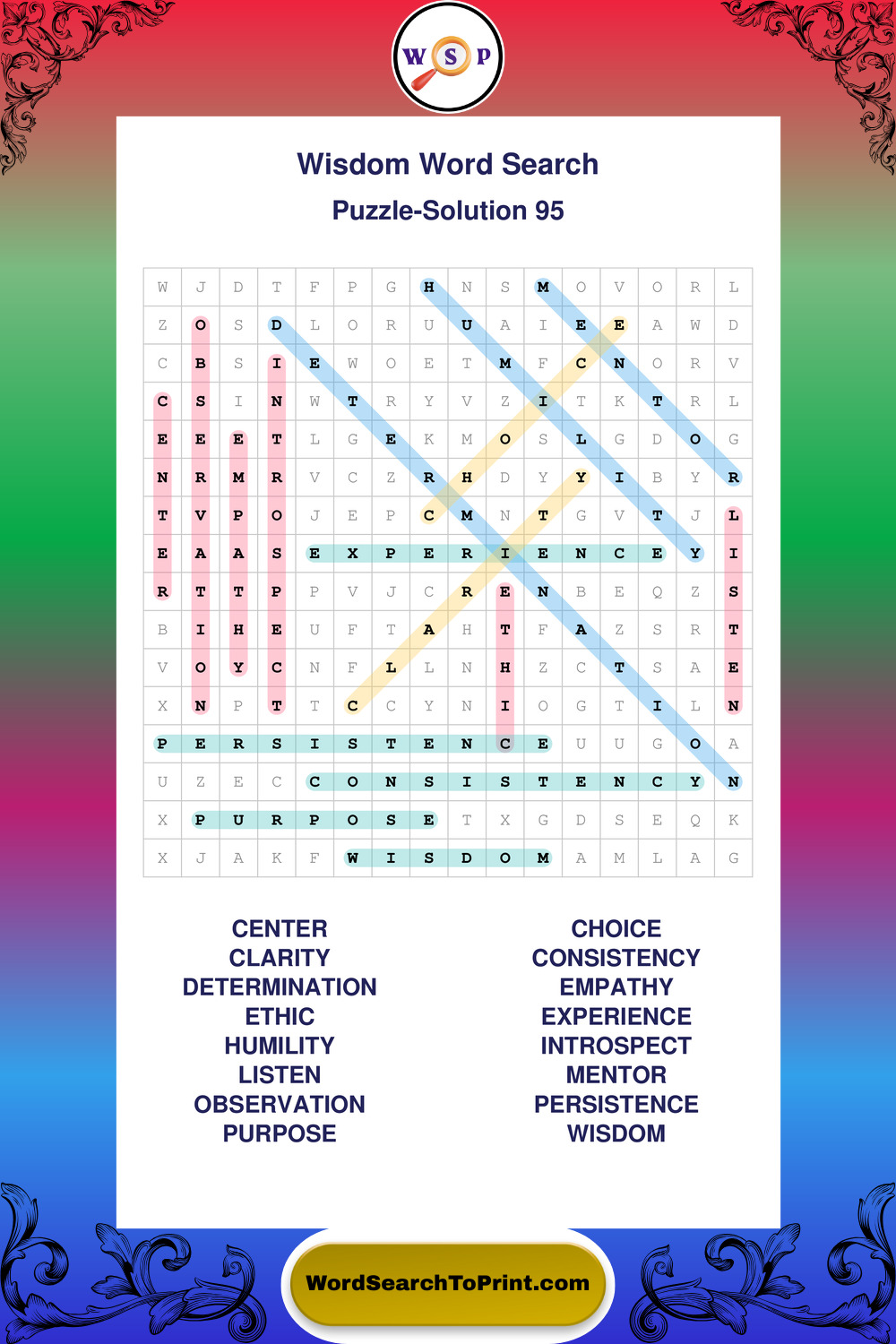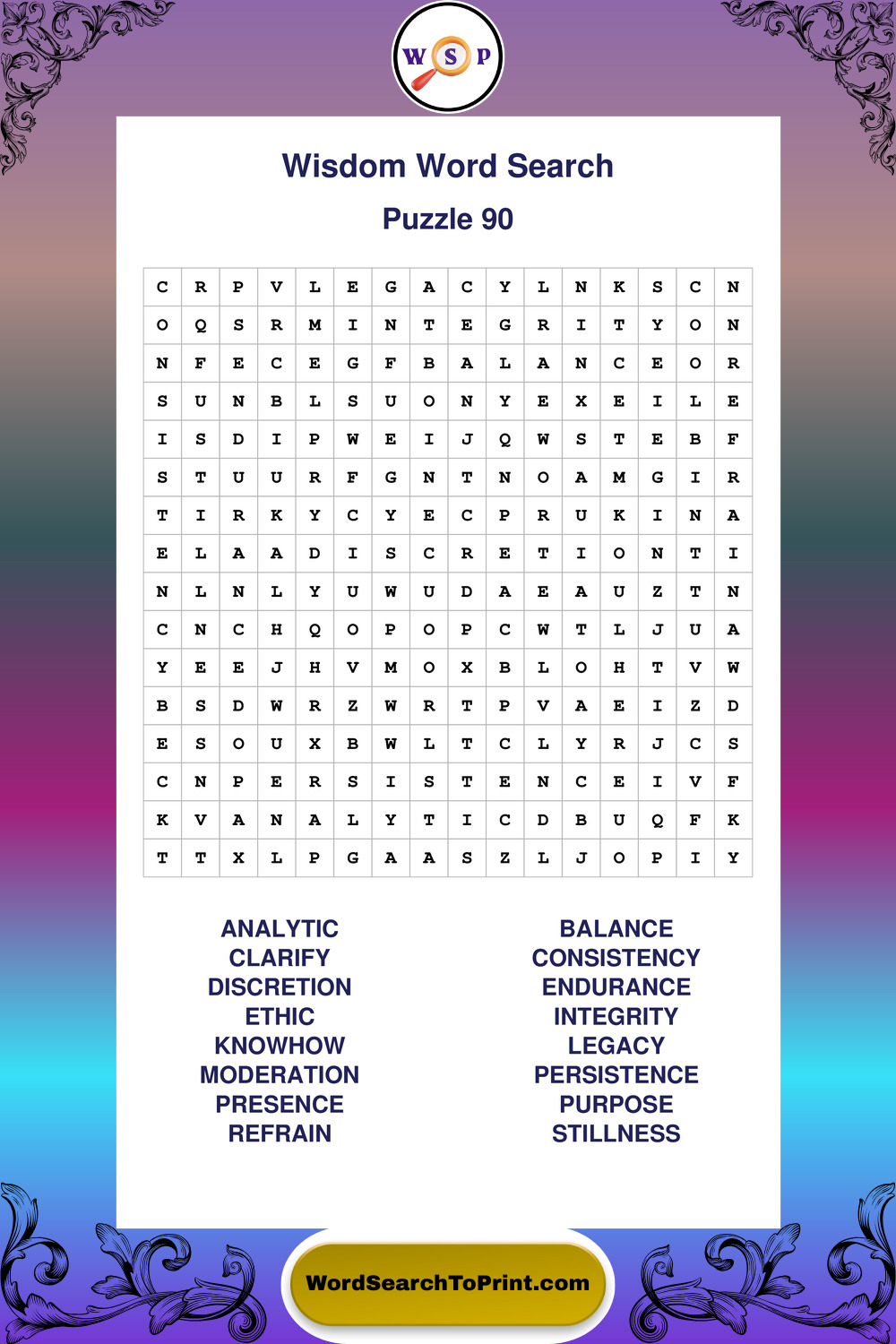 Printable Wisdom Wordsearch Puzzles