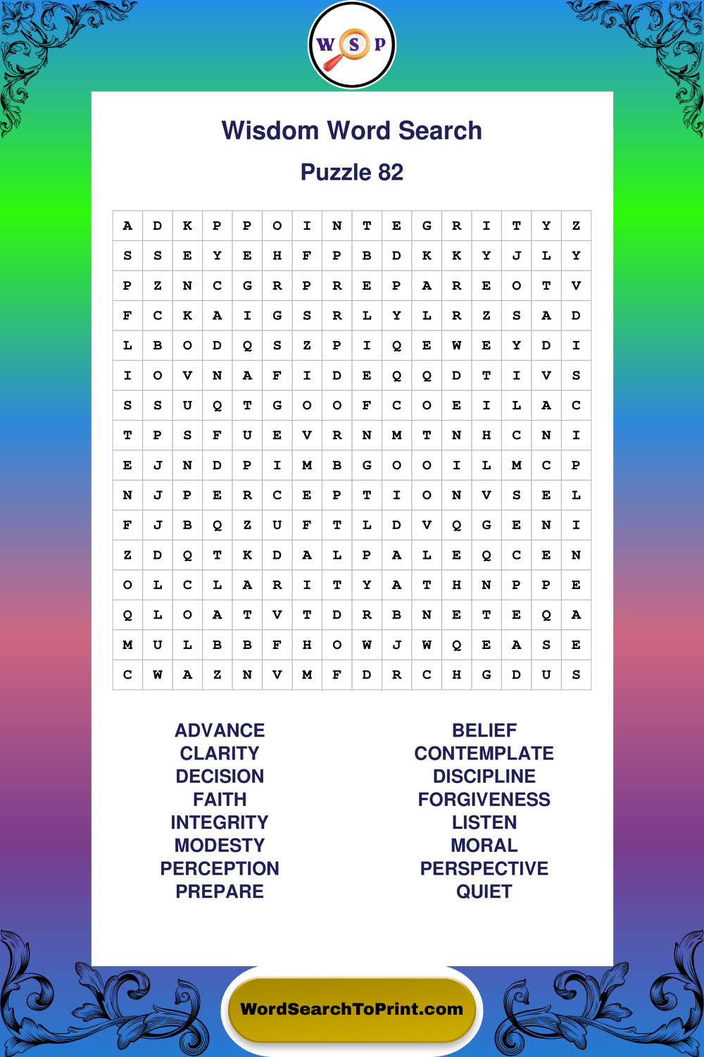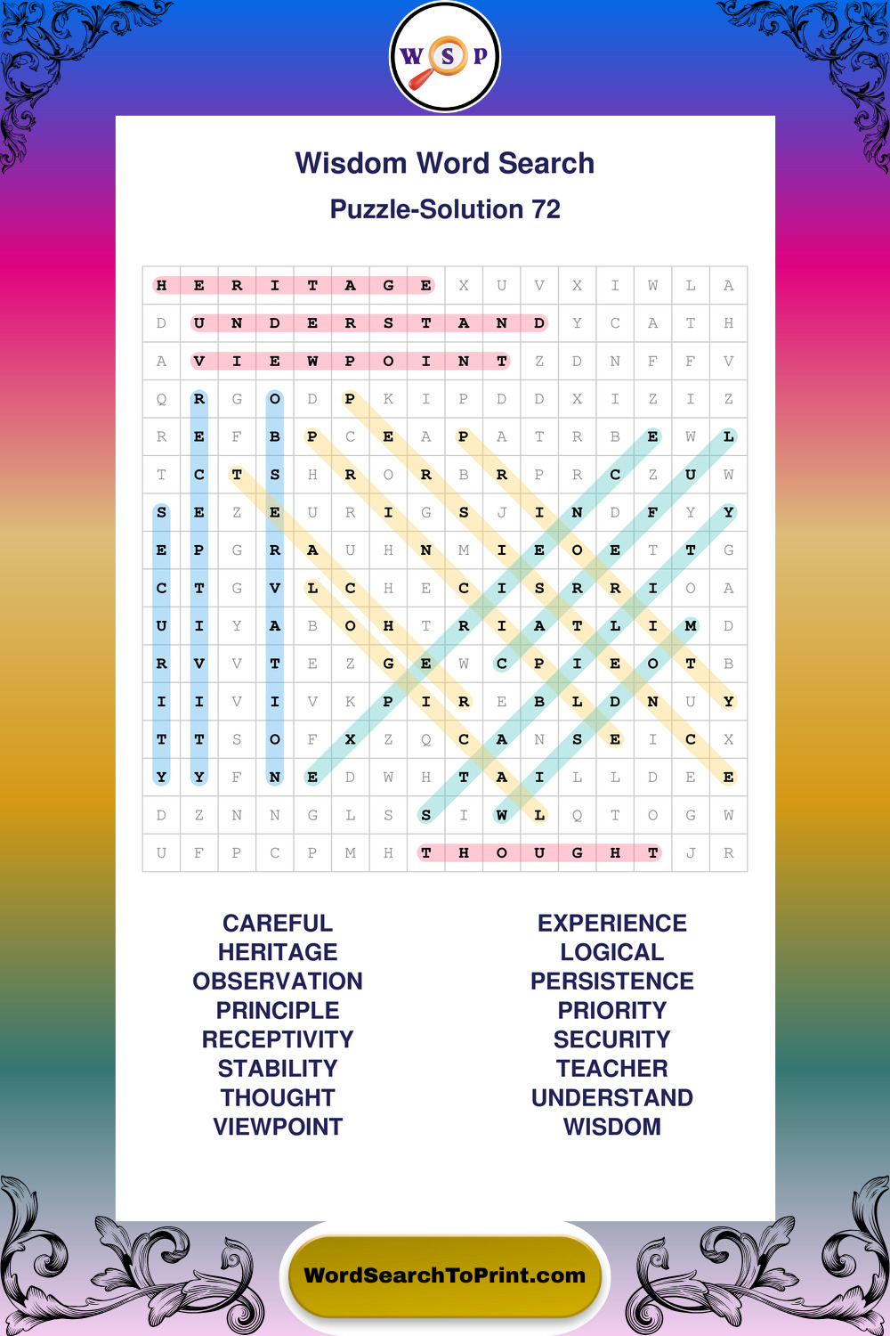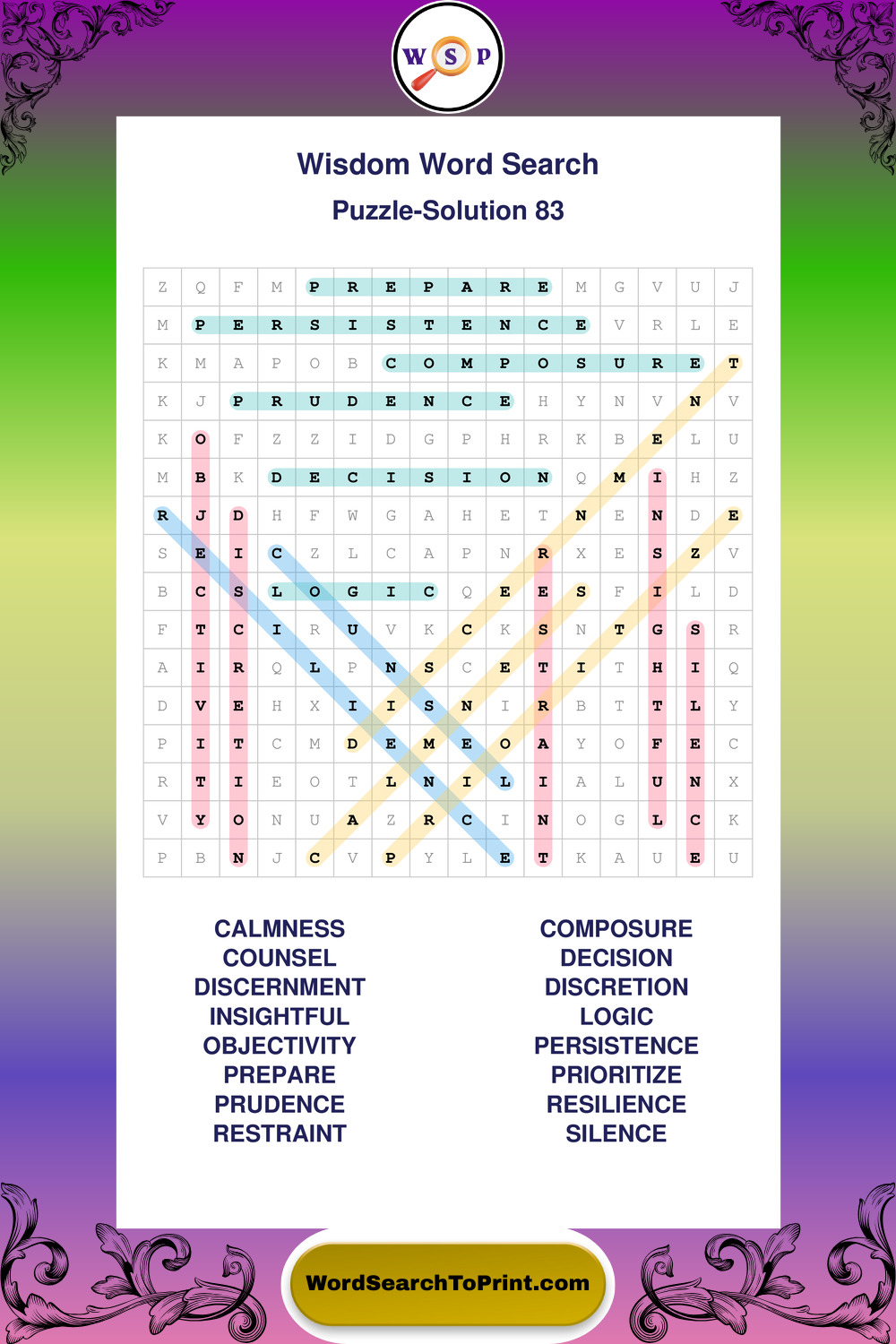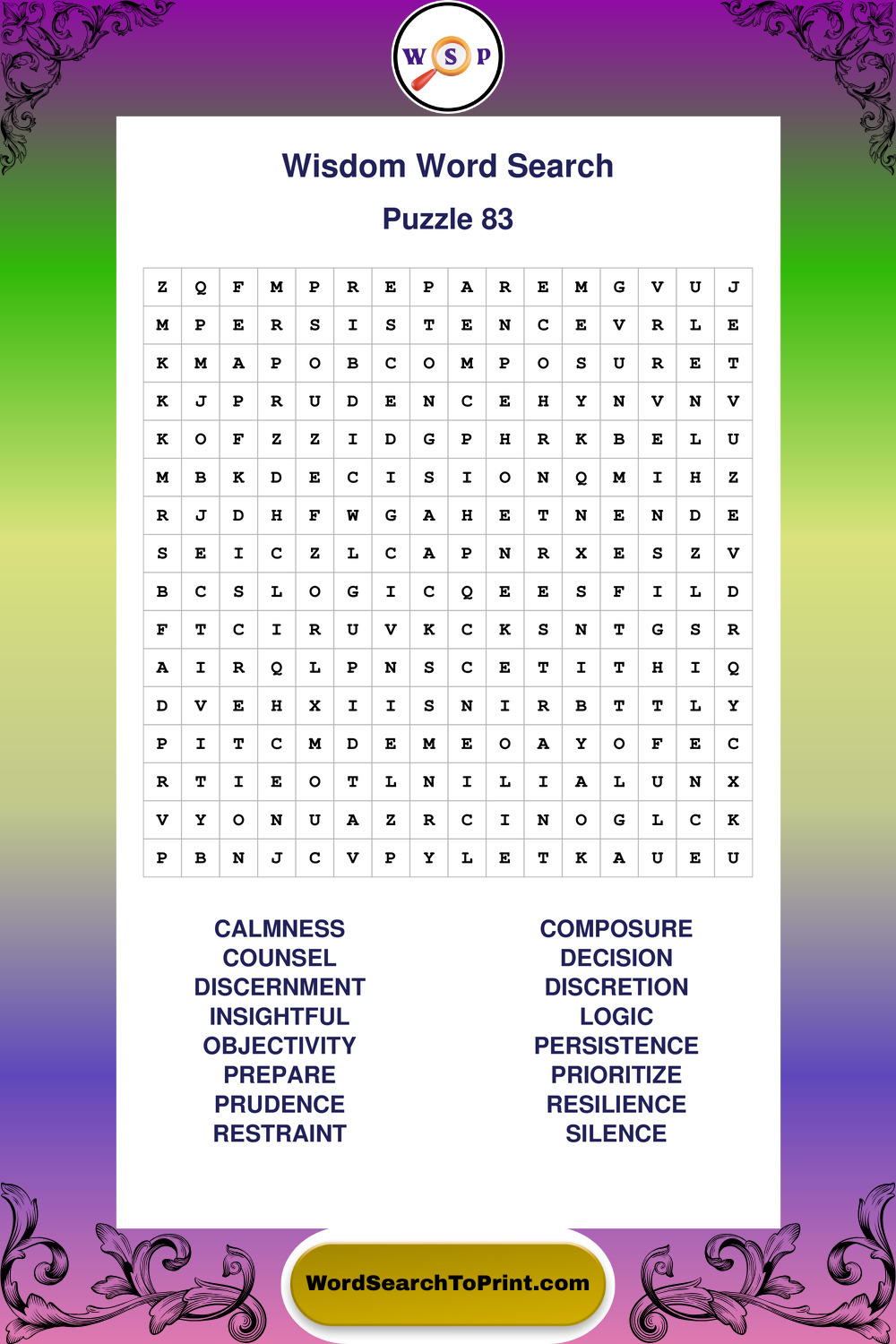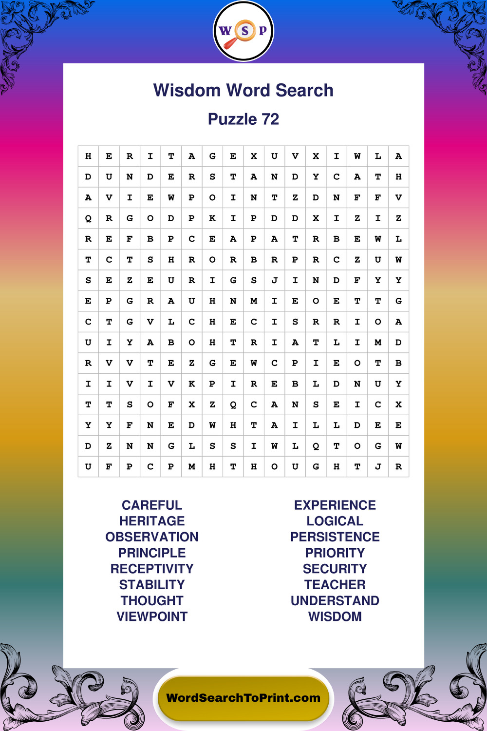 Printable Wisdom Wordsearch Puzzles