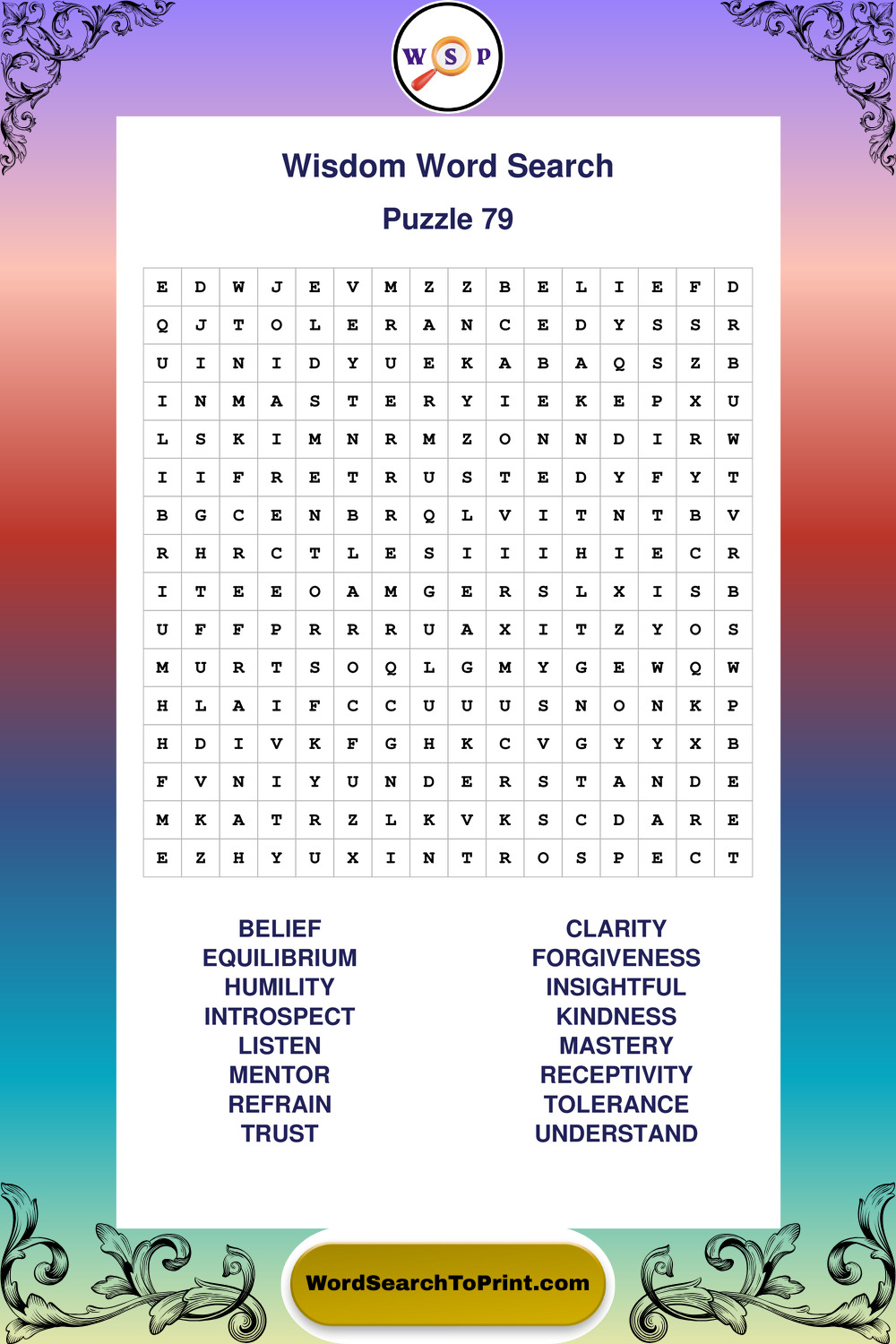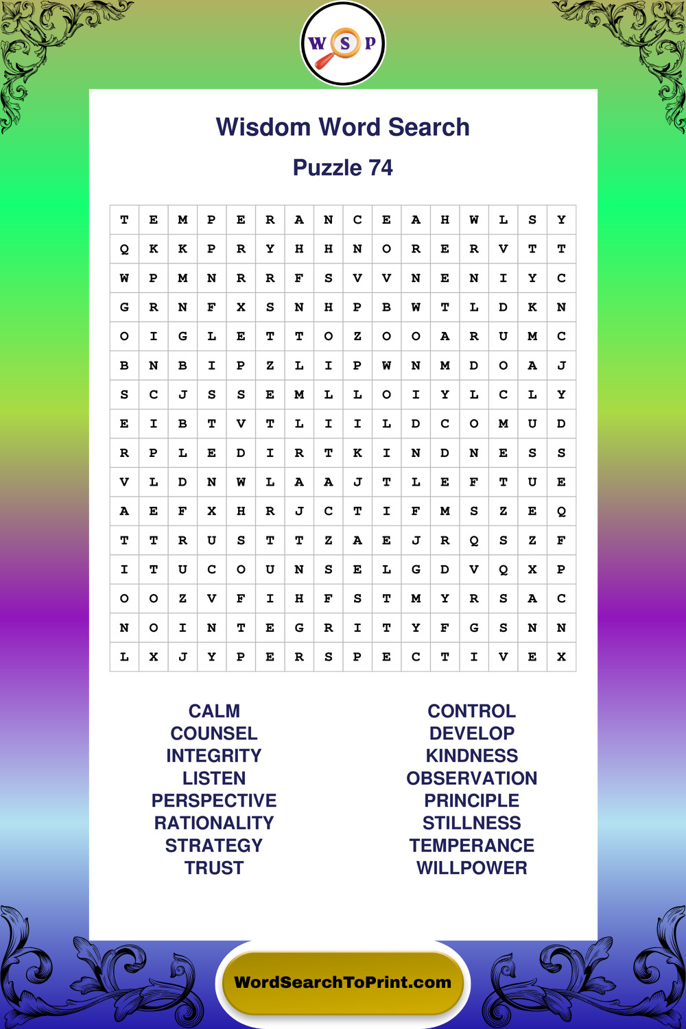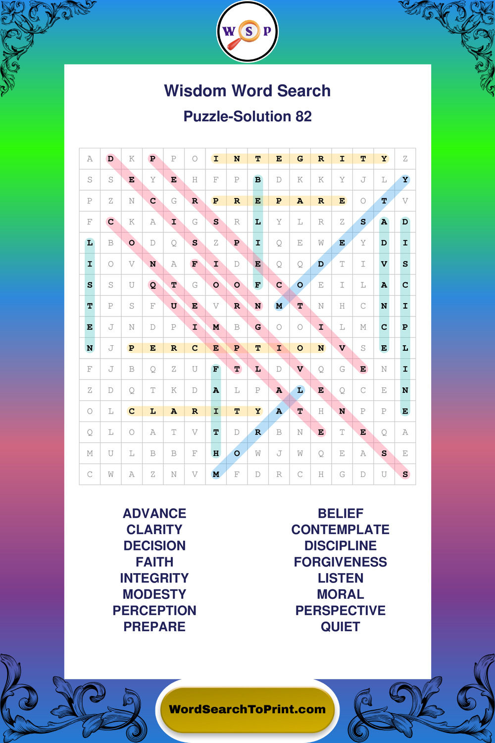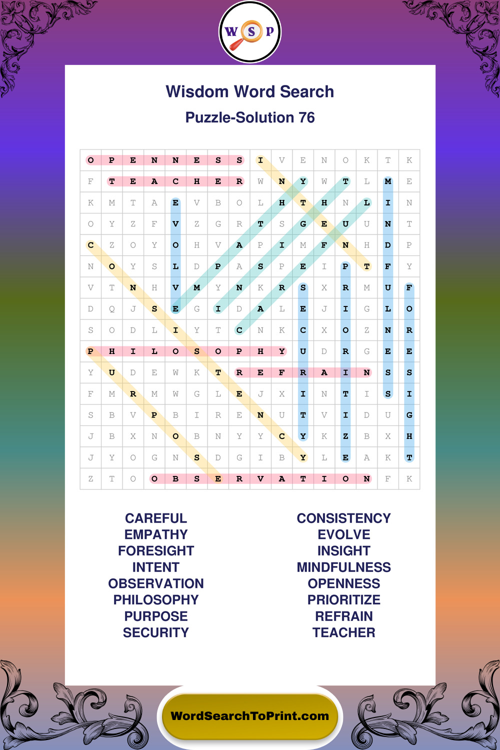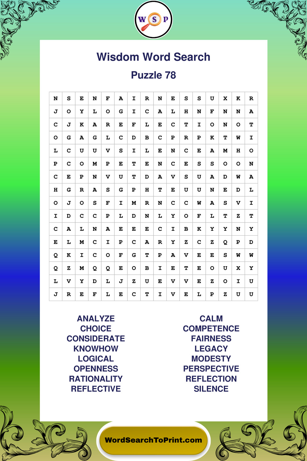 Printable Wisdom Wordsearch Puzzles