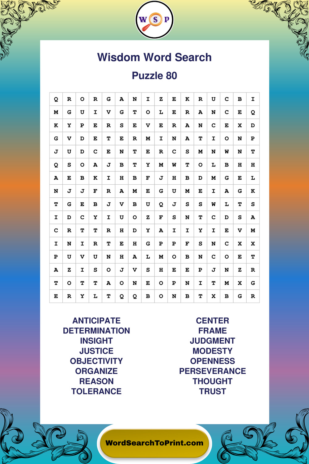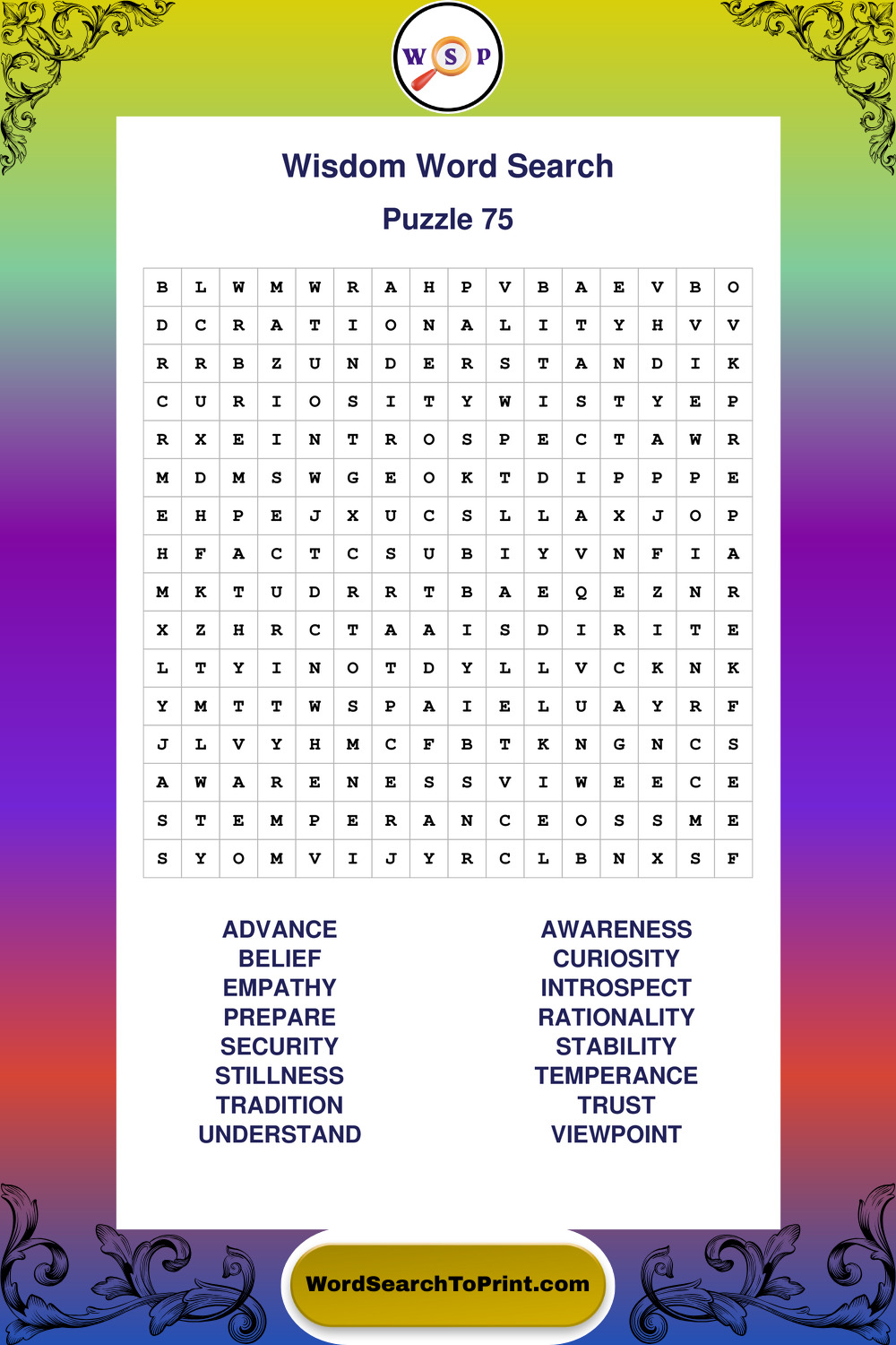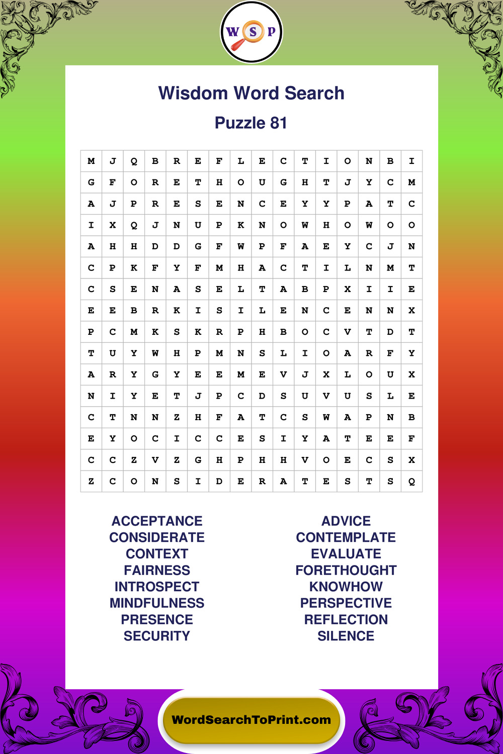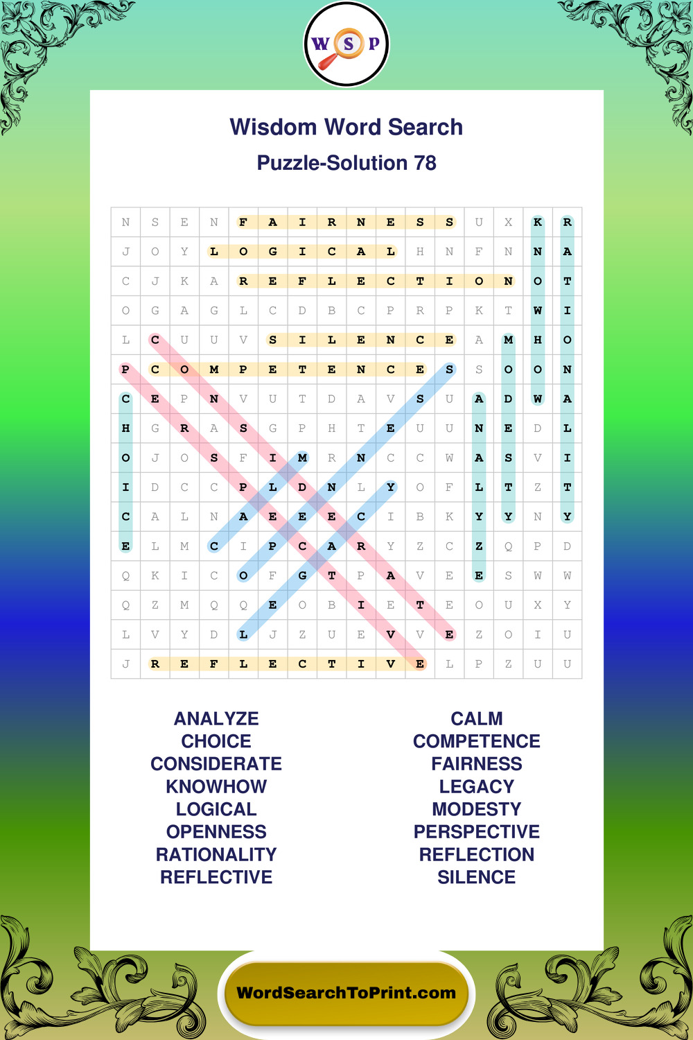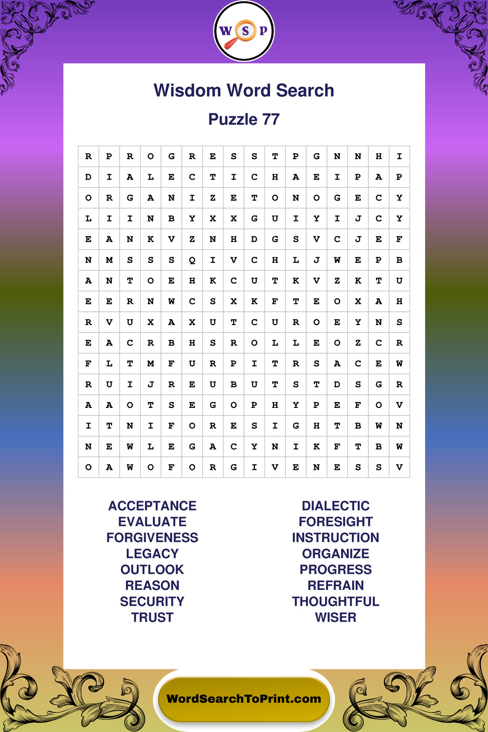 Printable Wisdom Wordsearch Puzzles