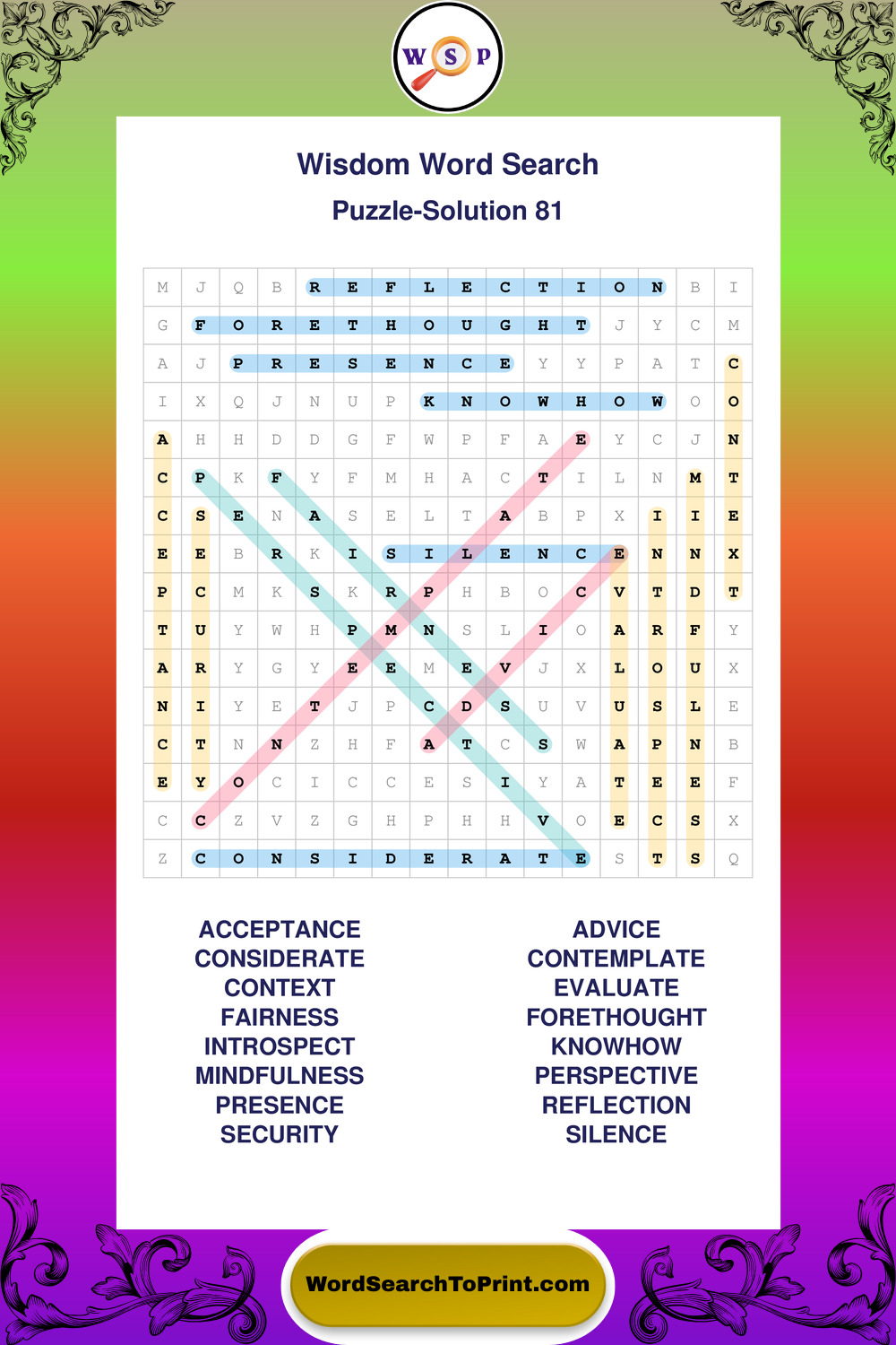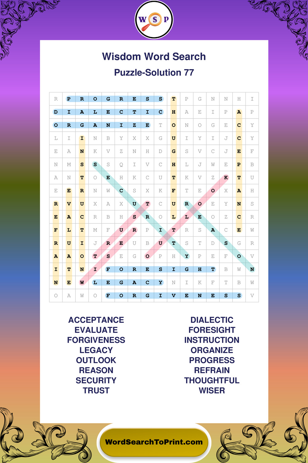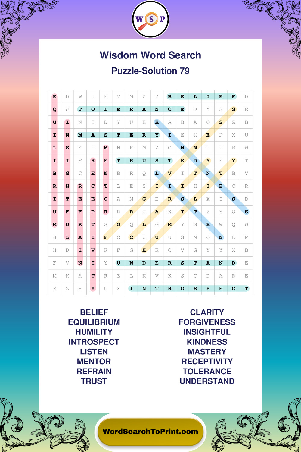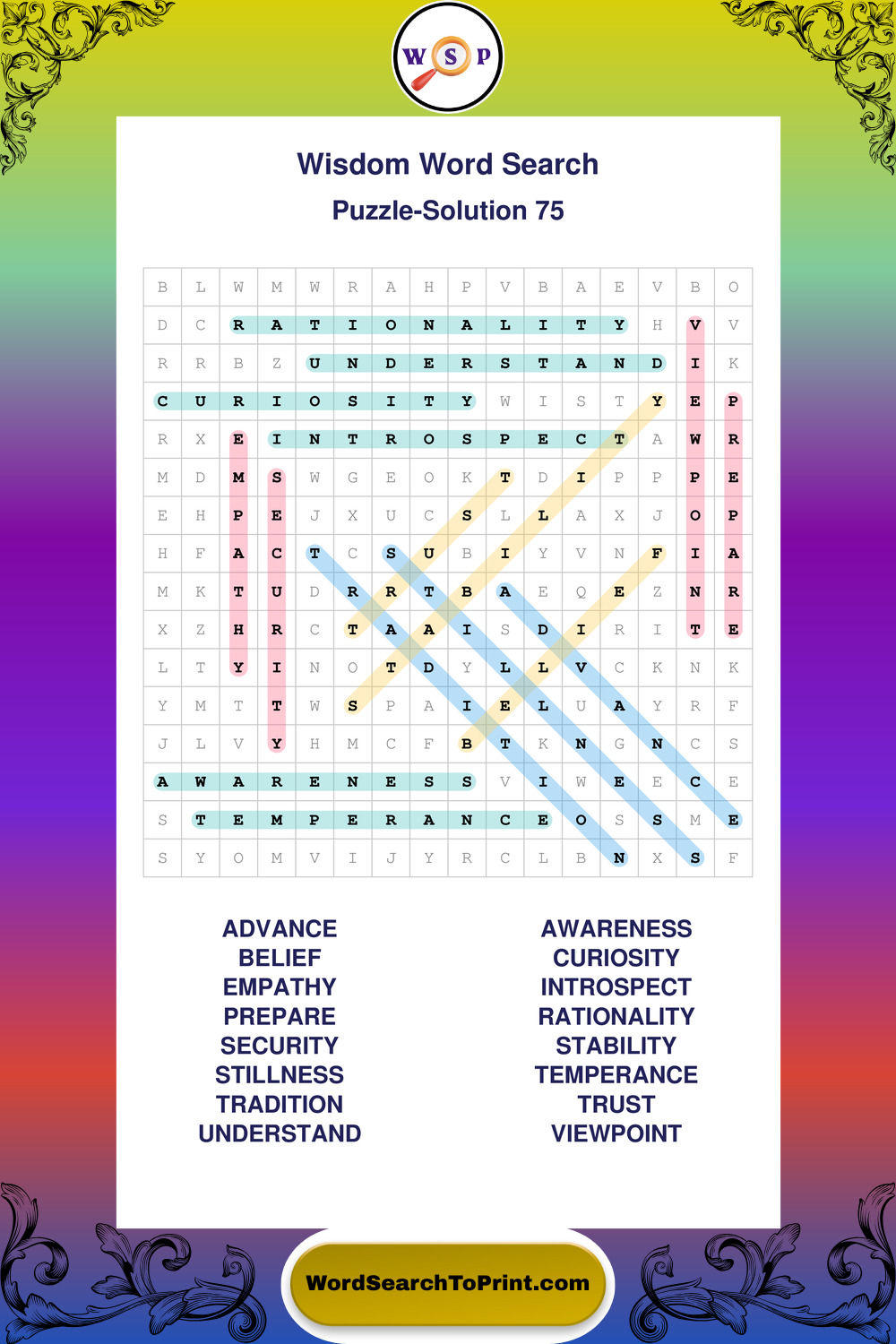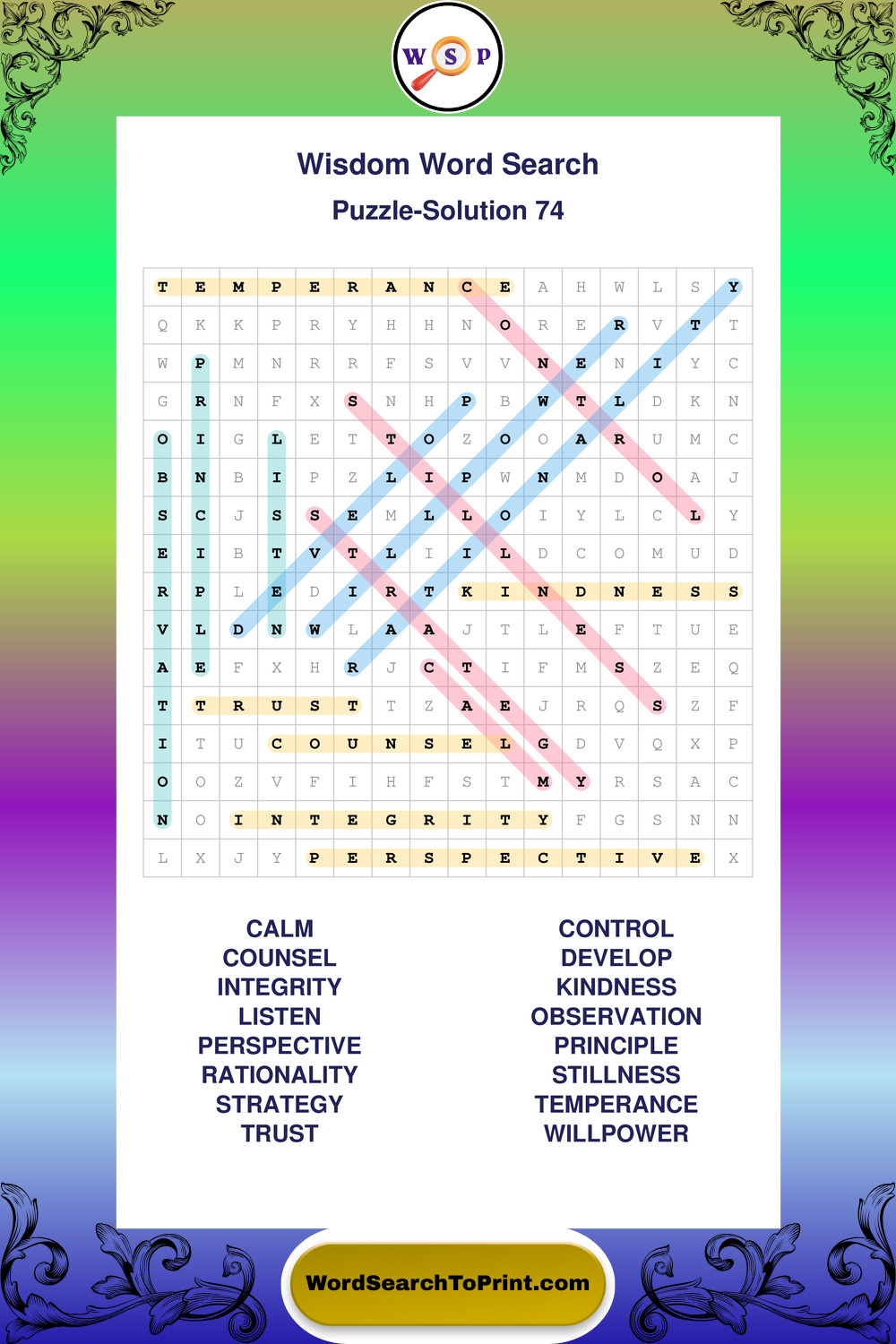 Printable Wisdom Wordsearch Puzzles