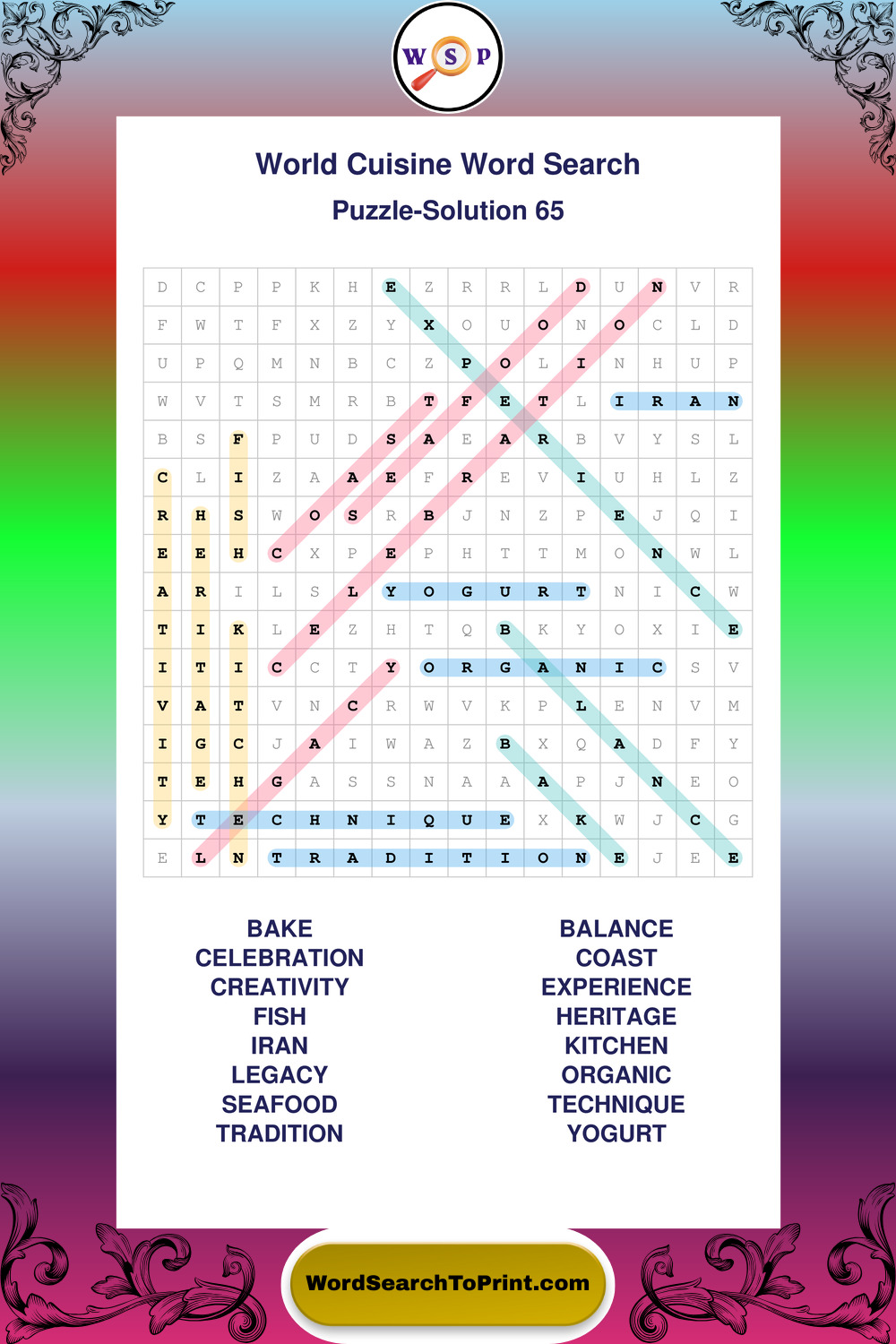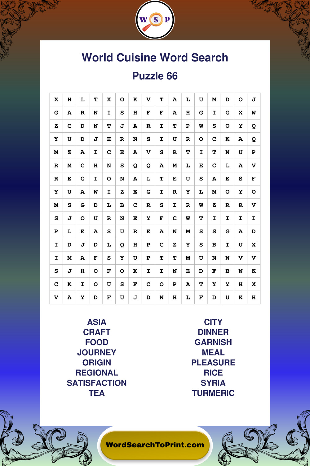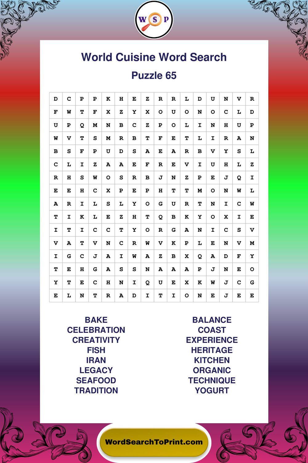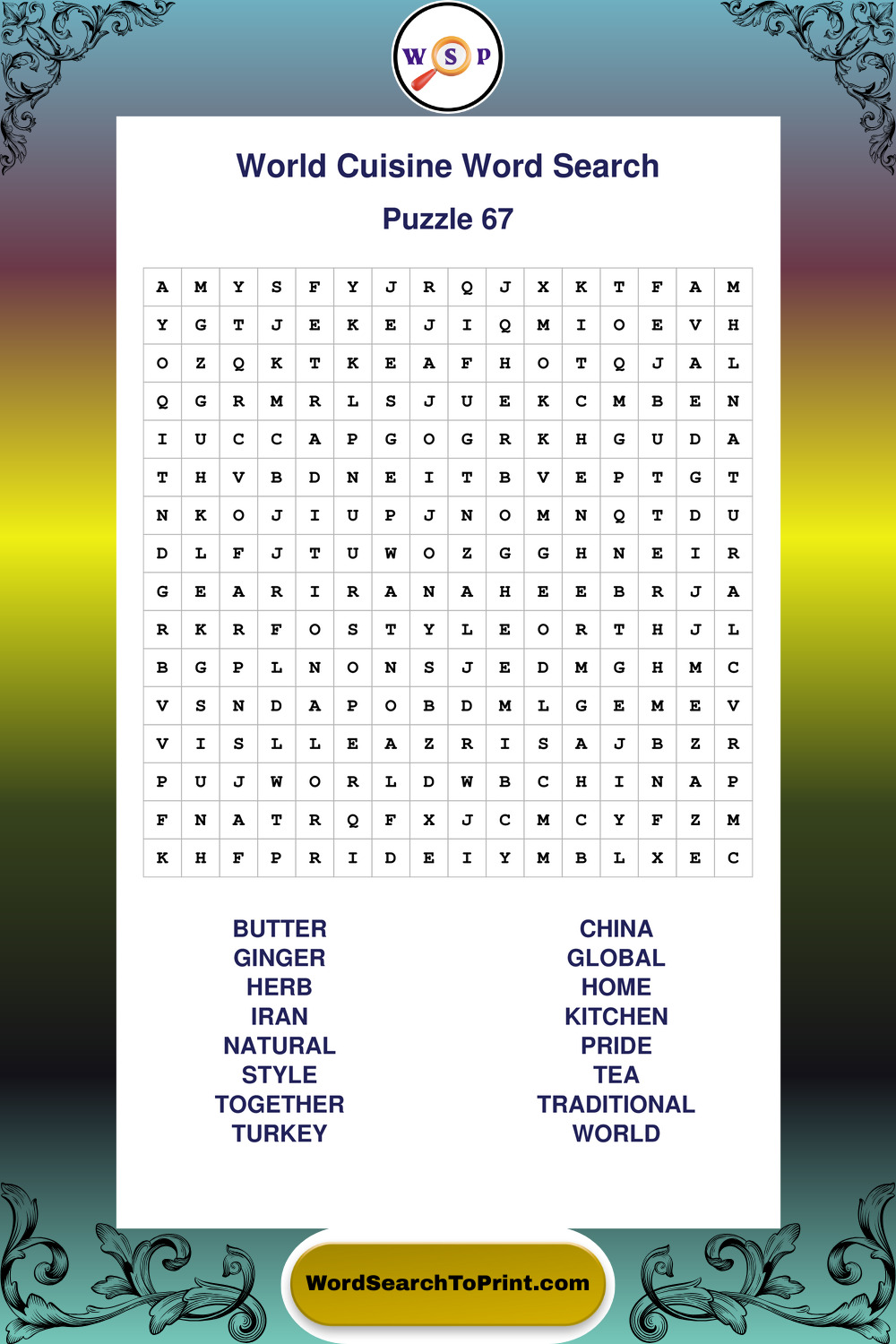 Printable World Cuisine Wordsearch Puzzles
