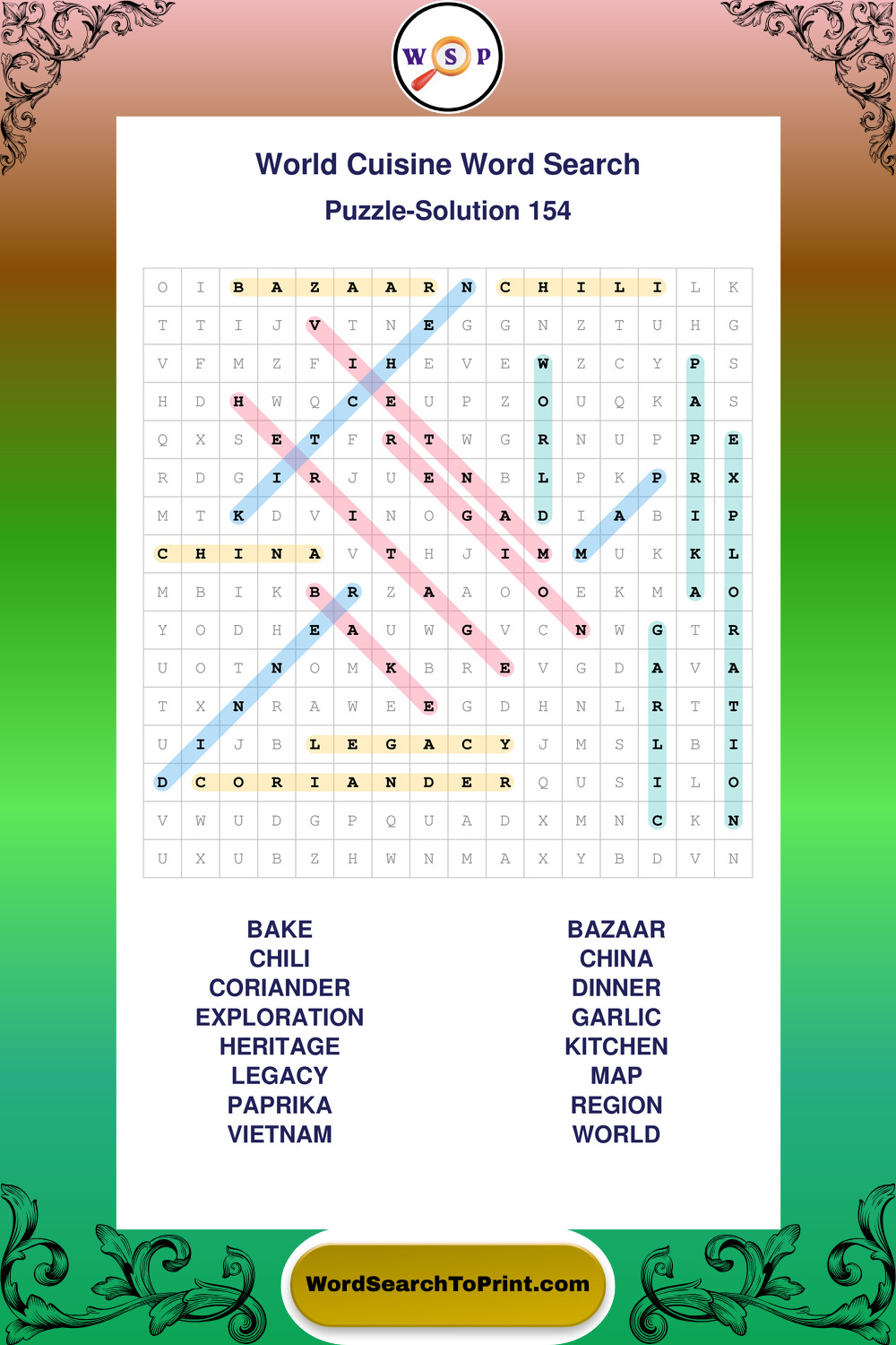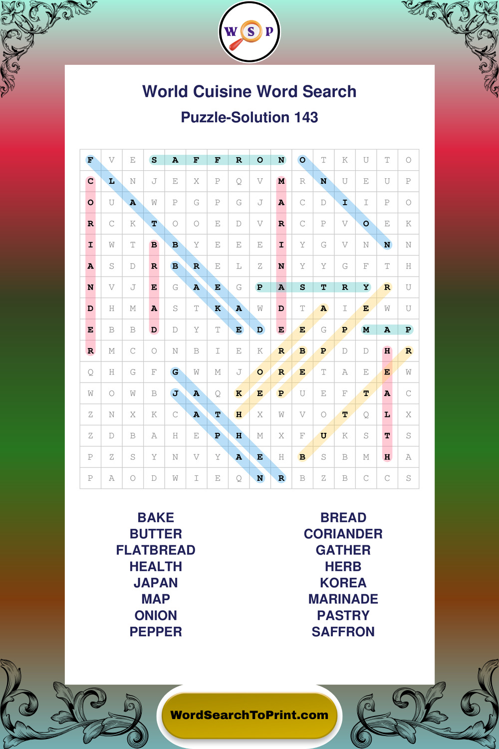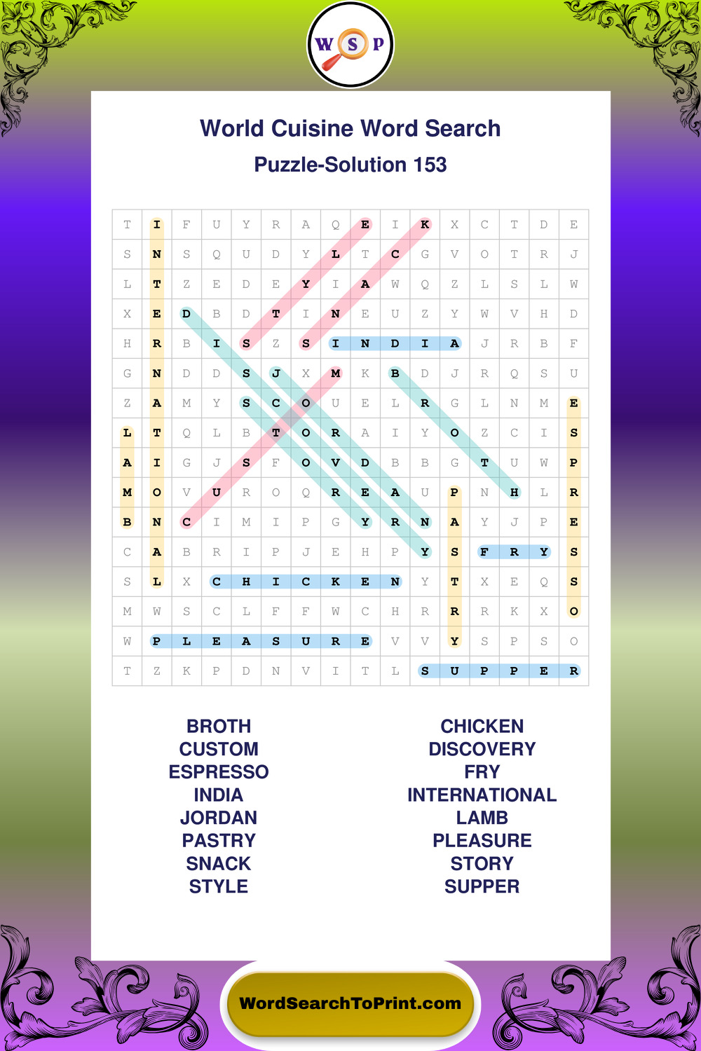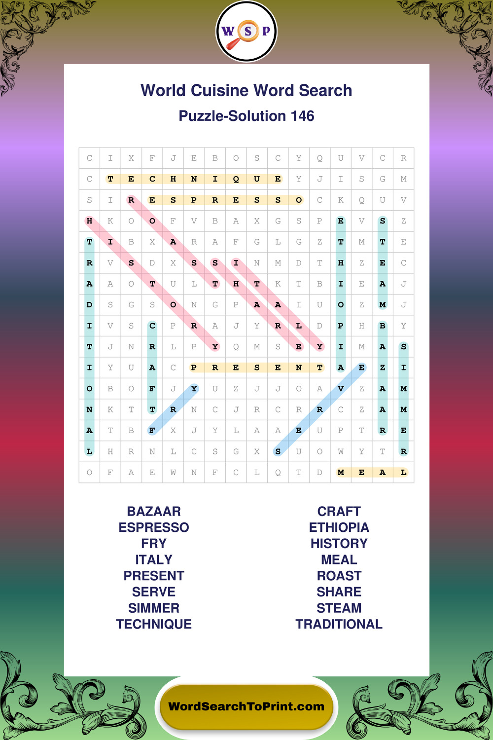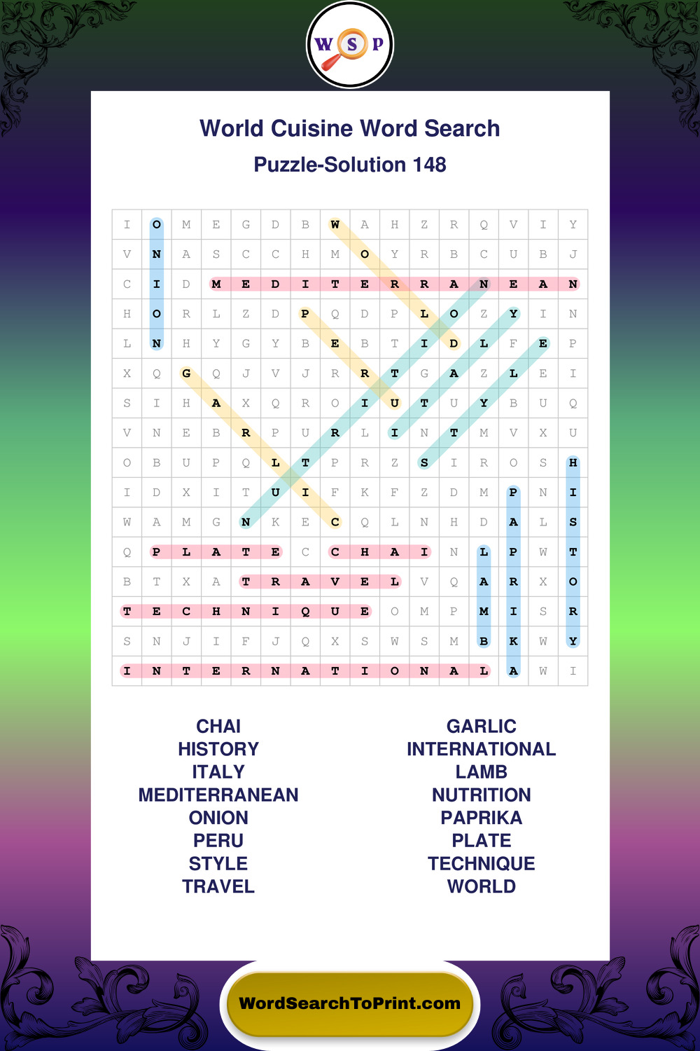 Browse large print World Cuisine wordsearches created to support clear vision, steady concentration, and relaxed solving.