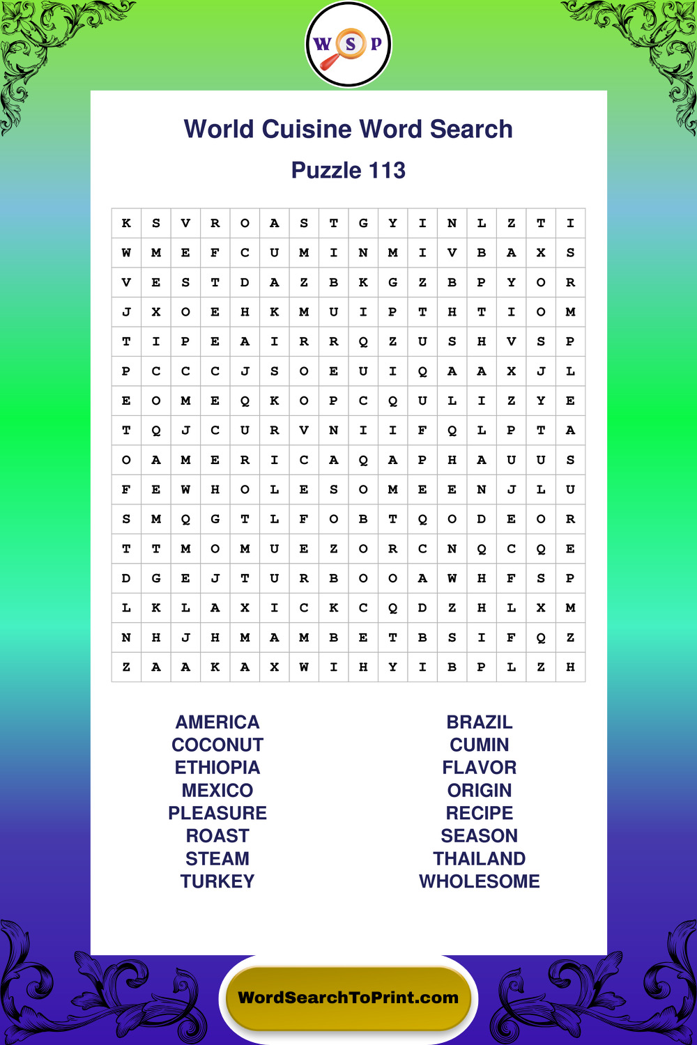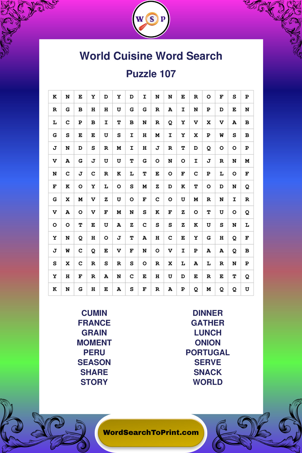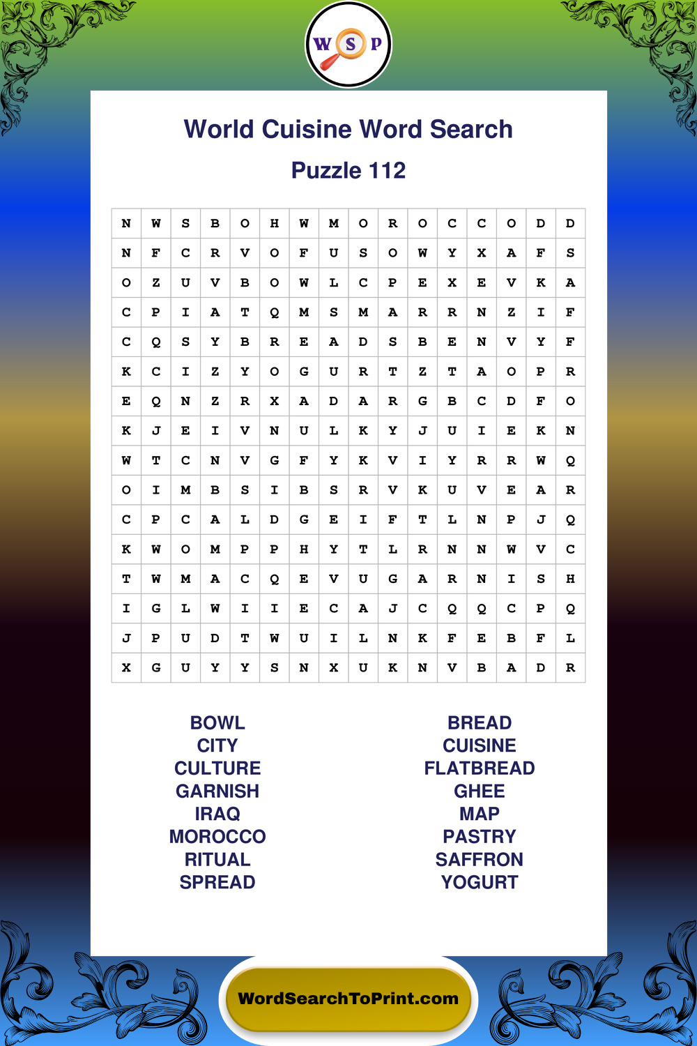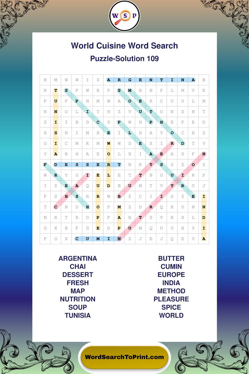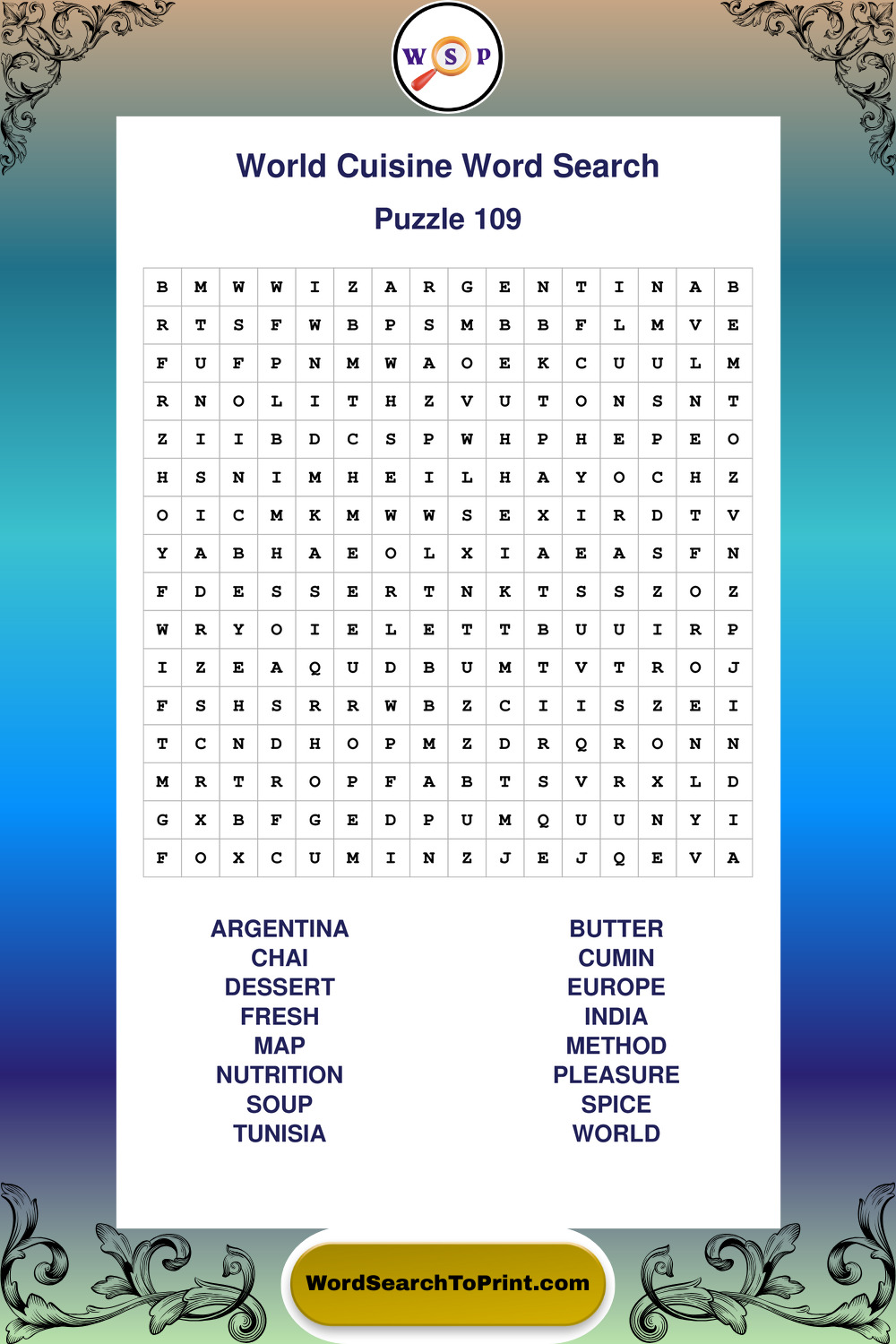 Printable World Cuisine Wordsearch Puzzles