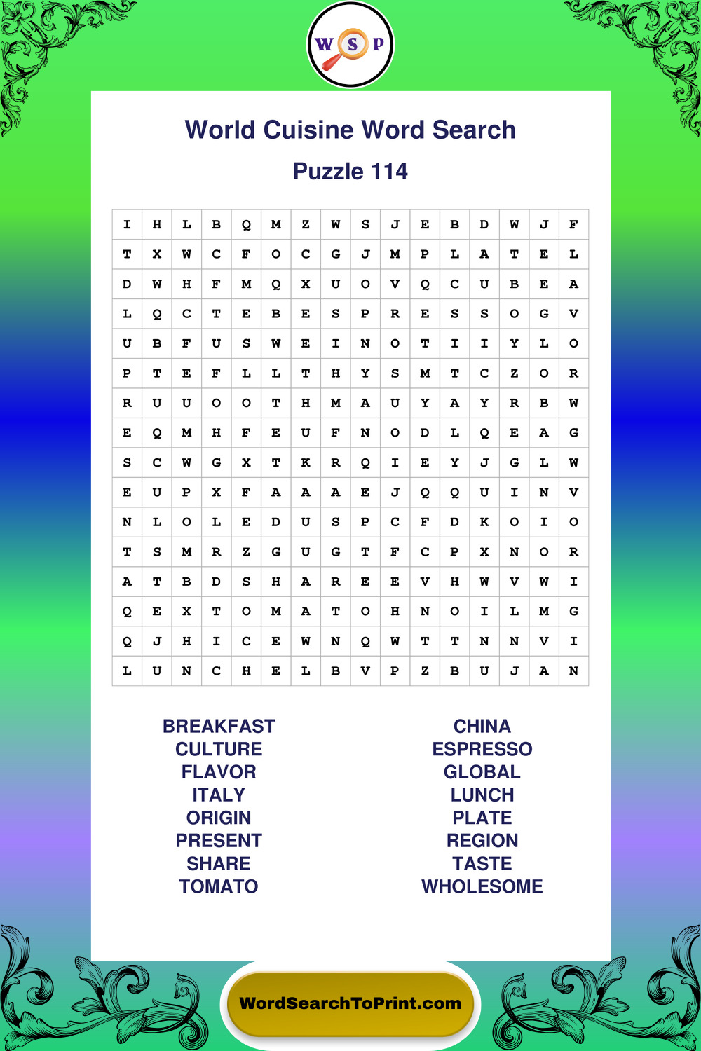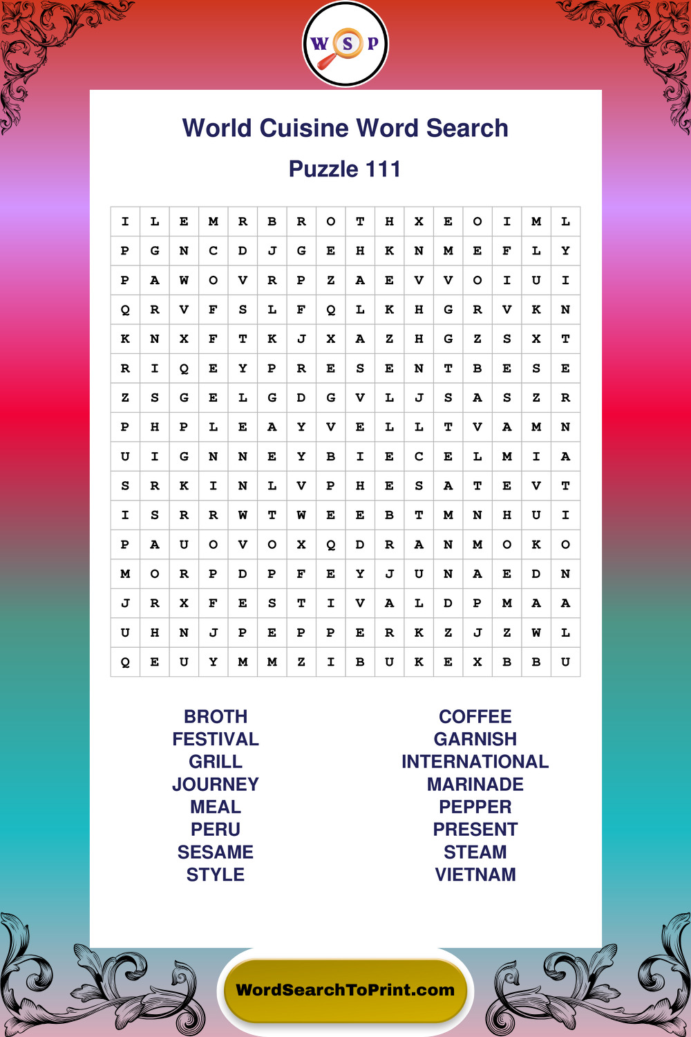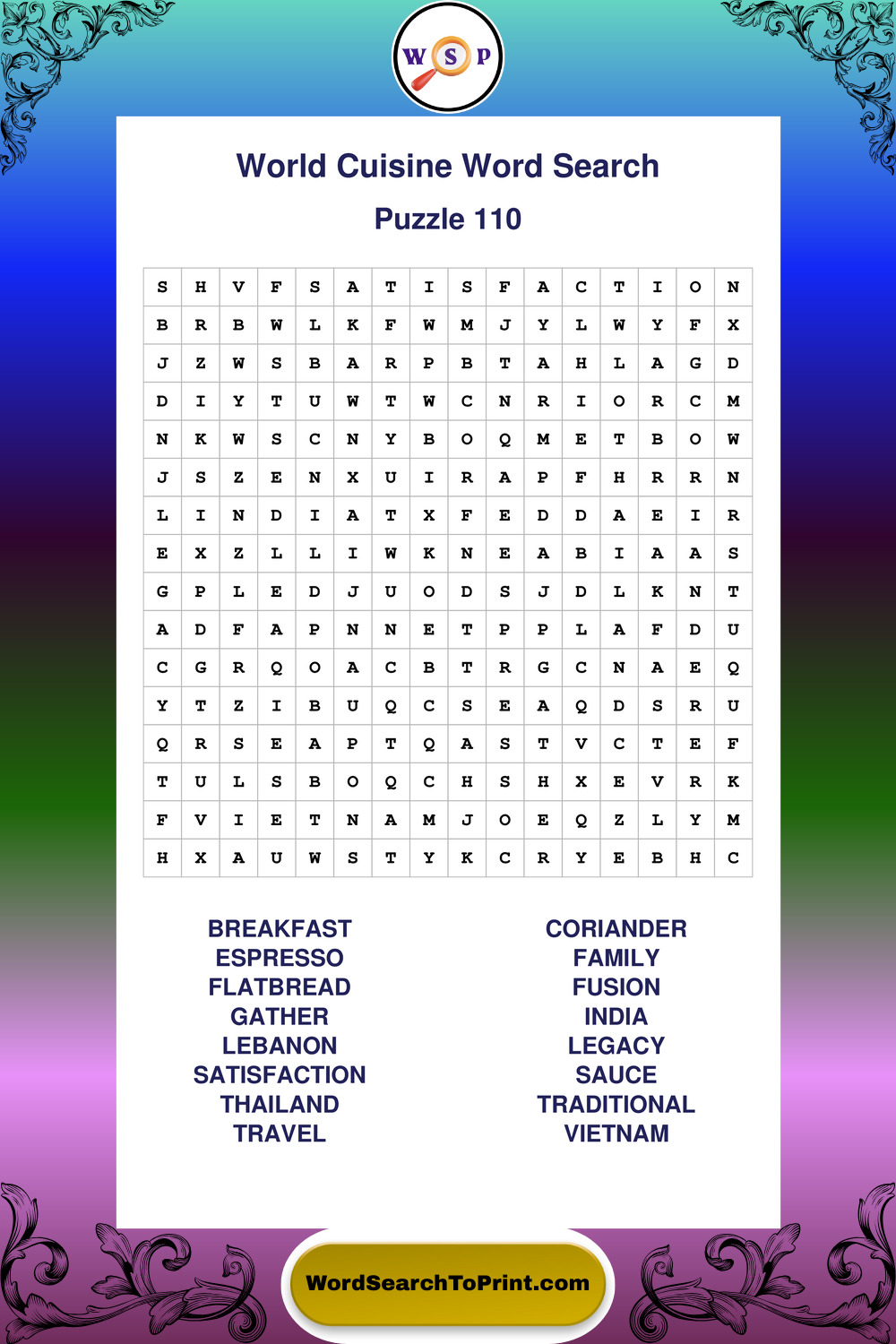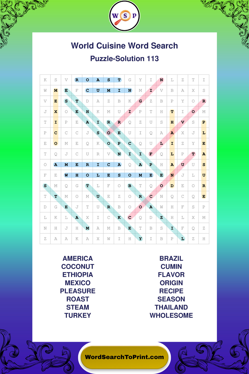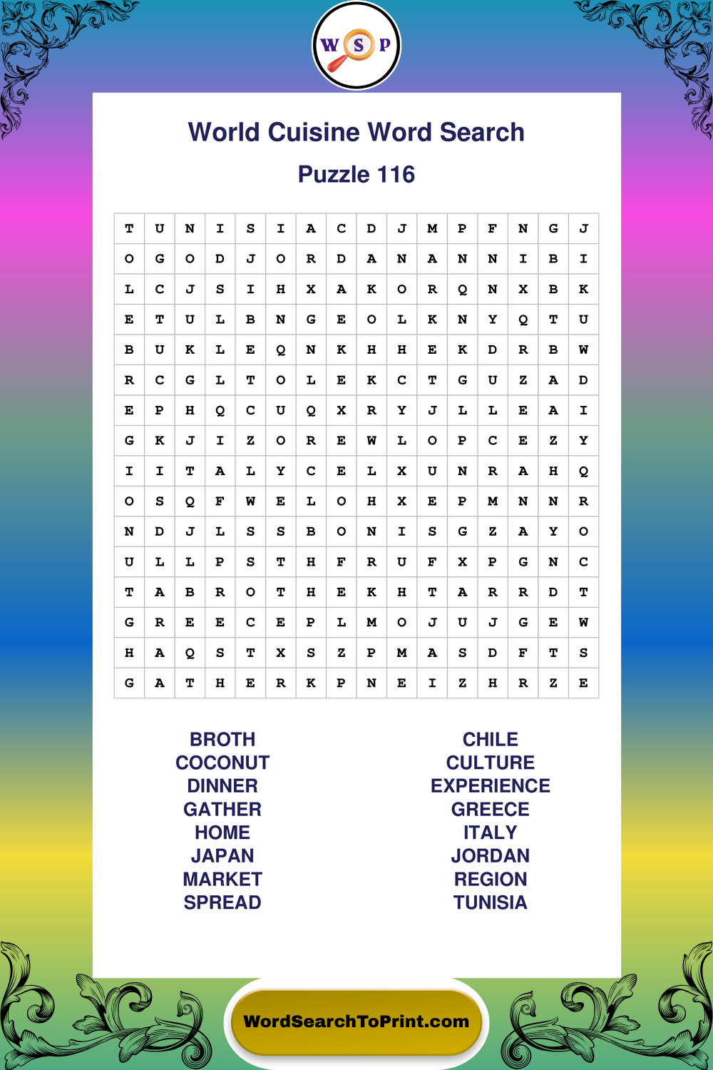 Printable World Cuisine Wordsearch Puzzles