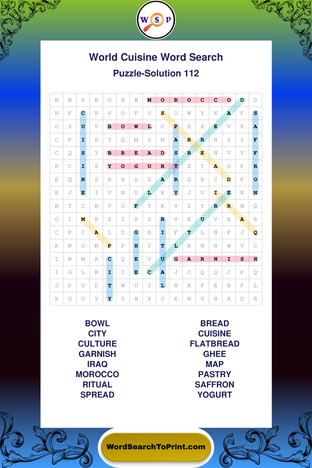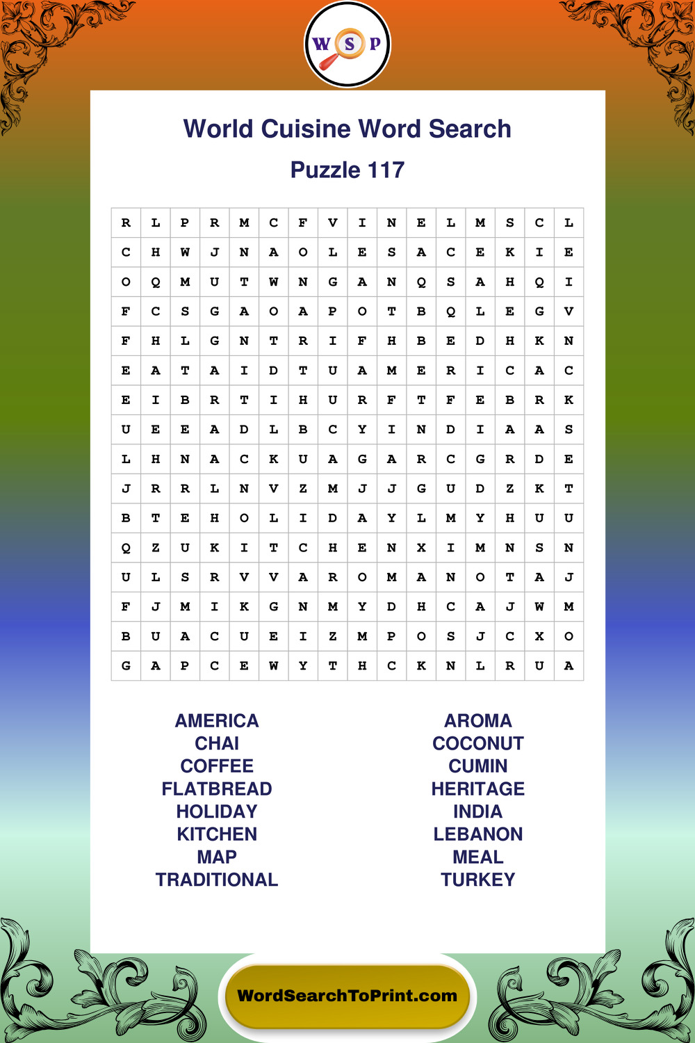 World Cuisine Wordsearches