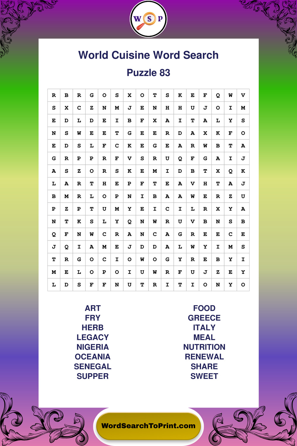 Free Large Print World Cuisine Wordsearches