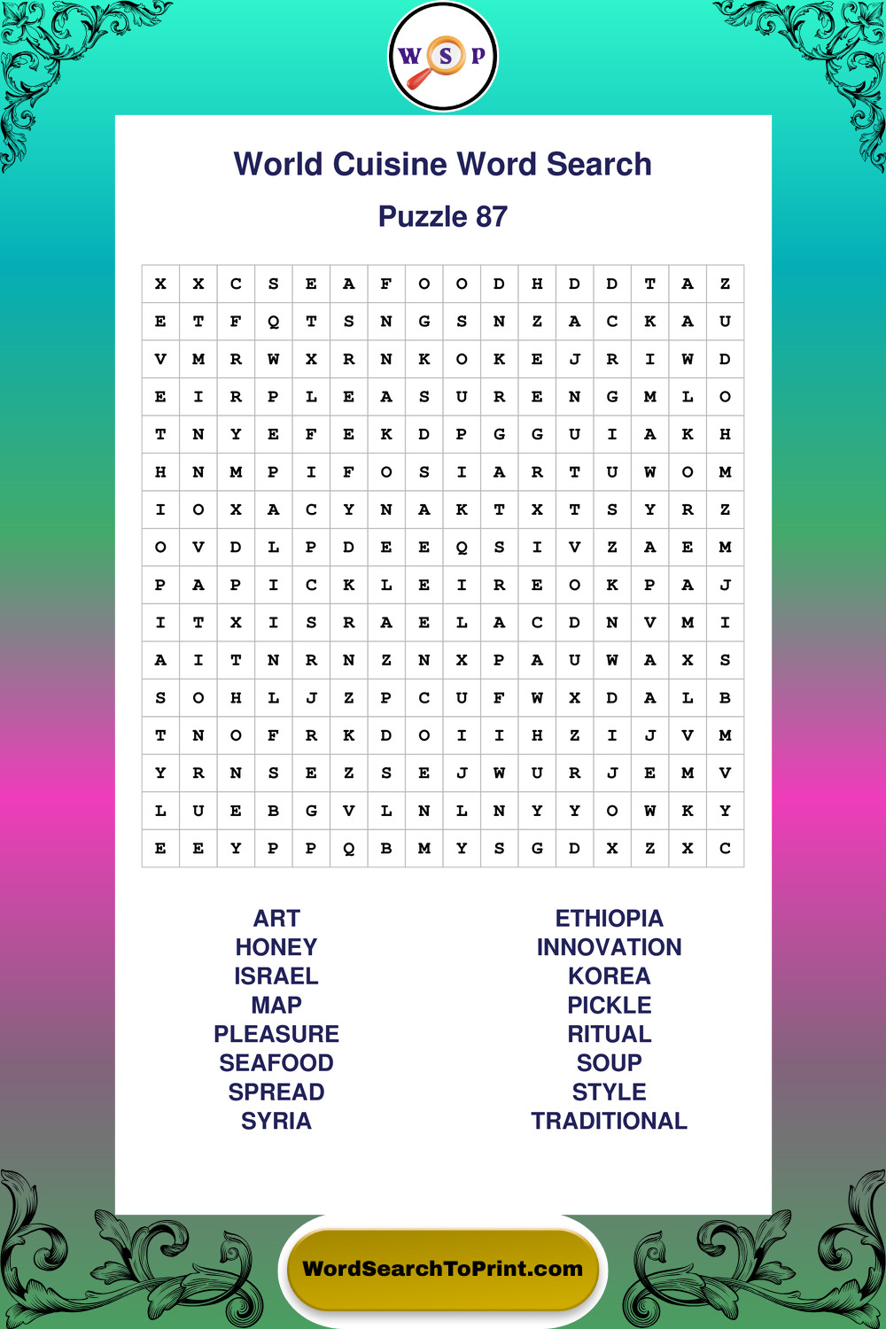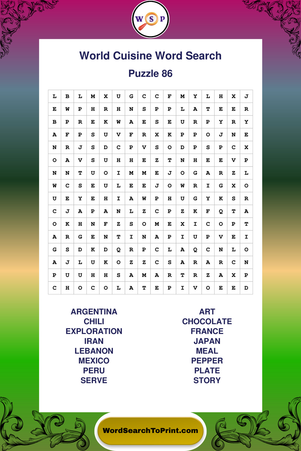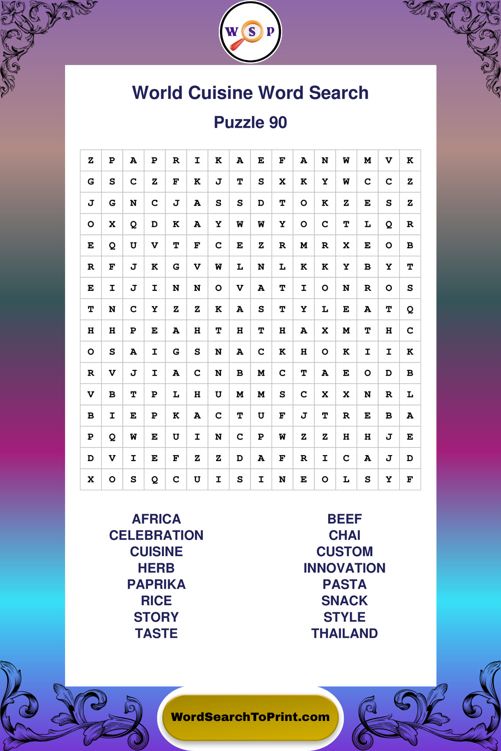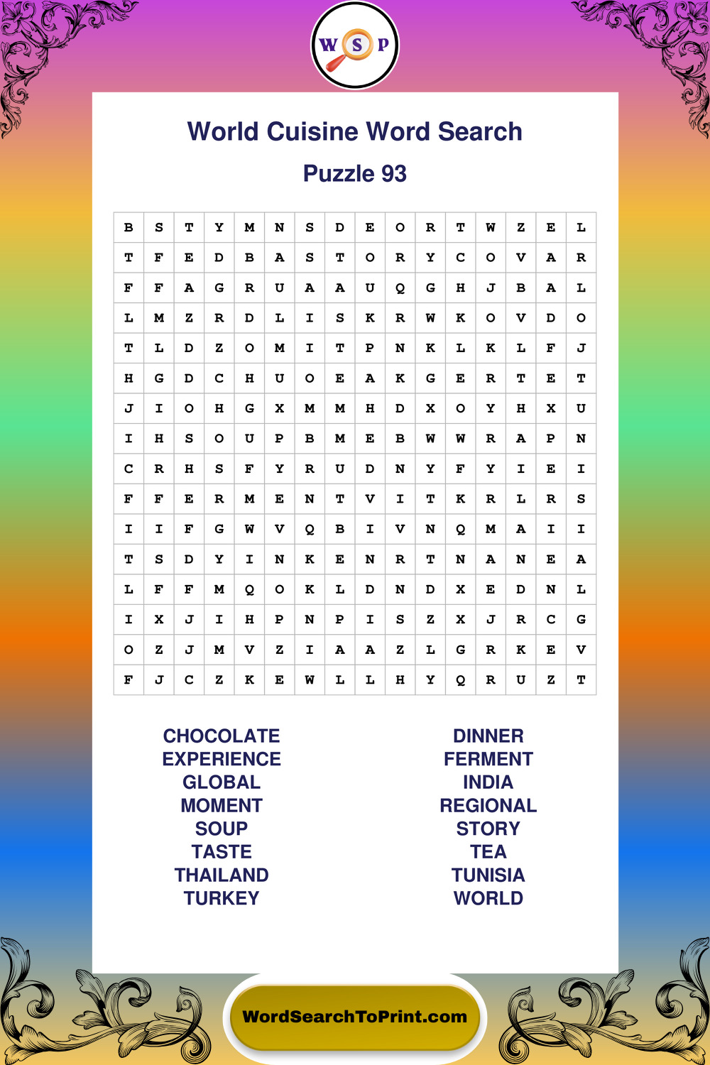 Printable World Cuisine Wordsearch Puzzles