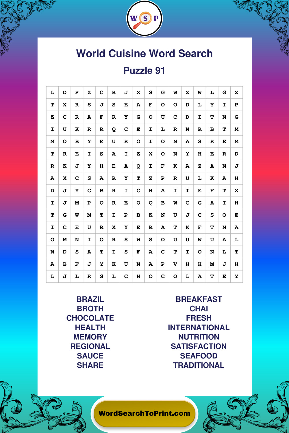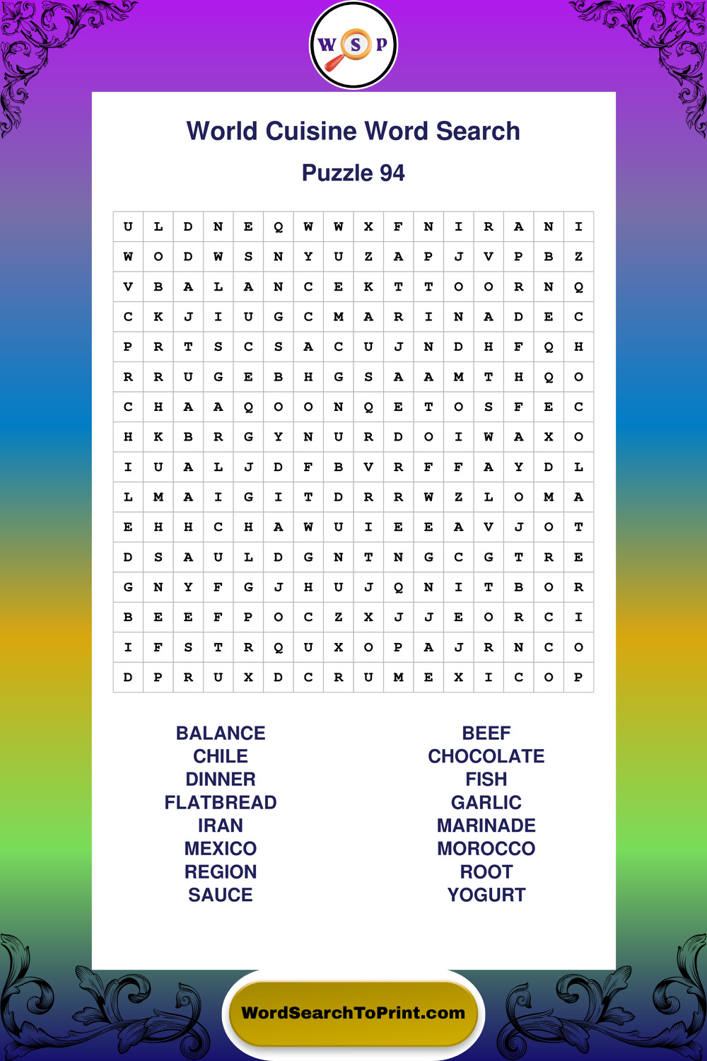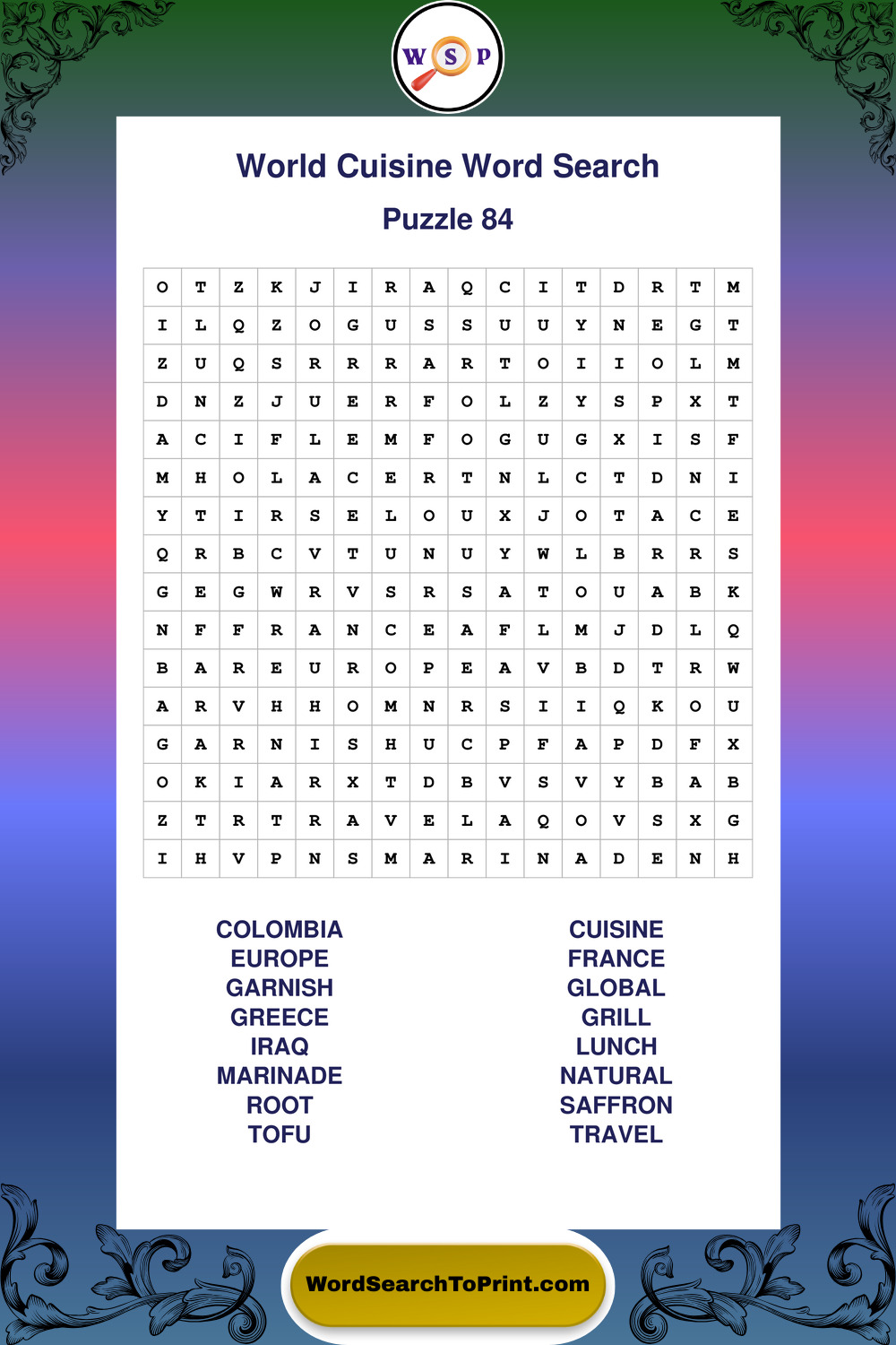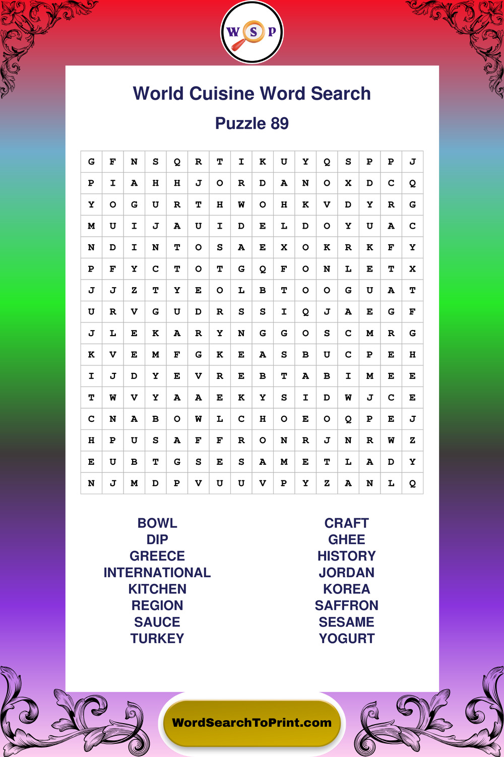 Printable World Cuisine Wordsearch Puzzles