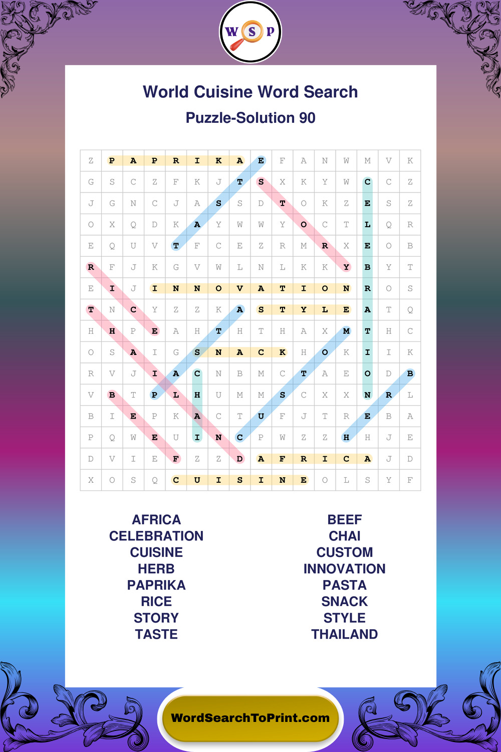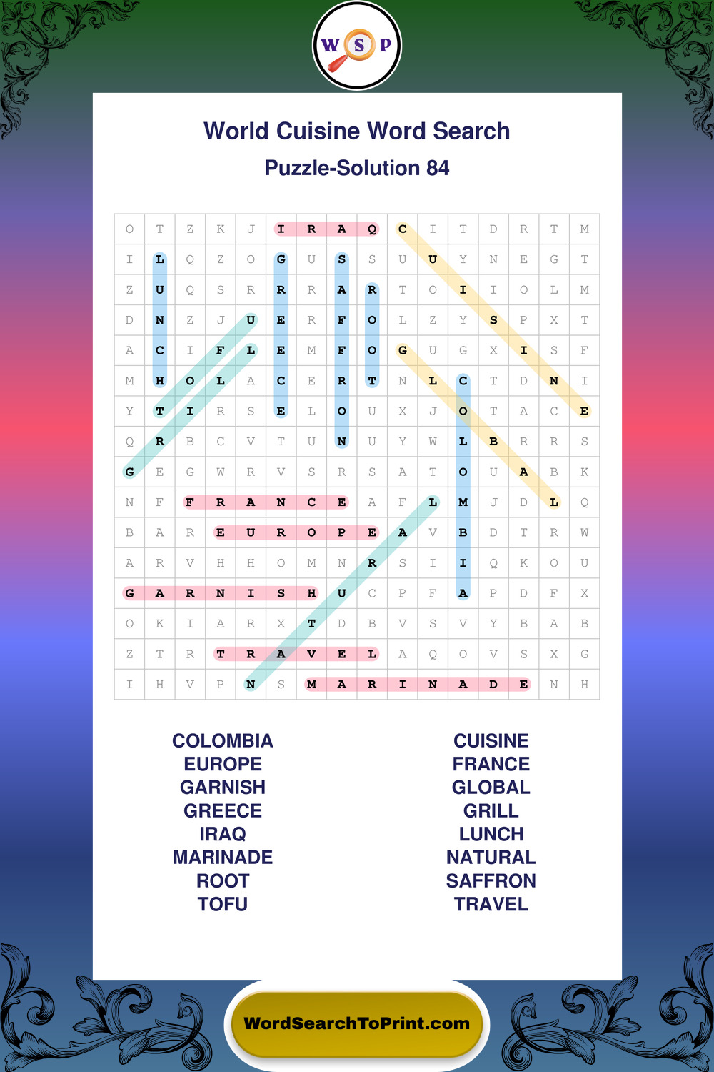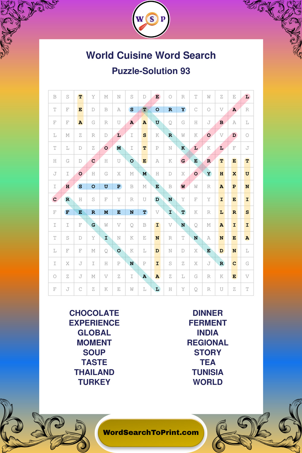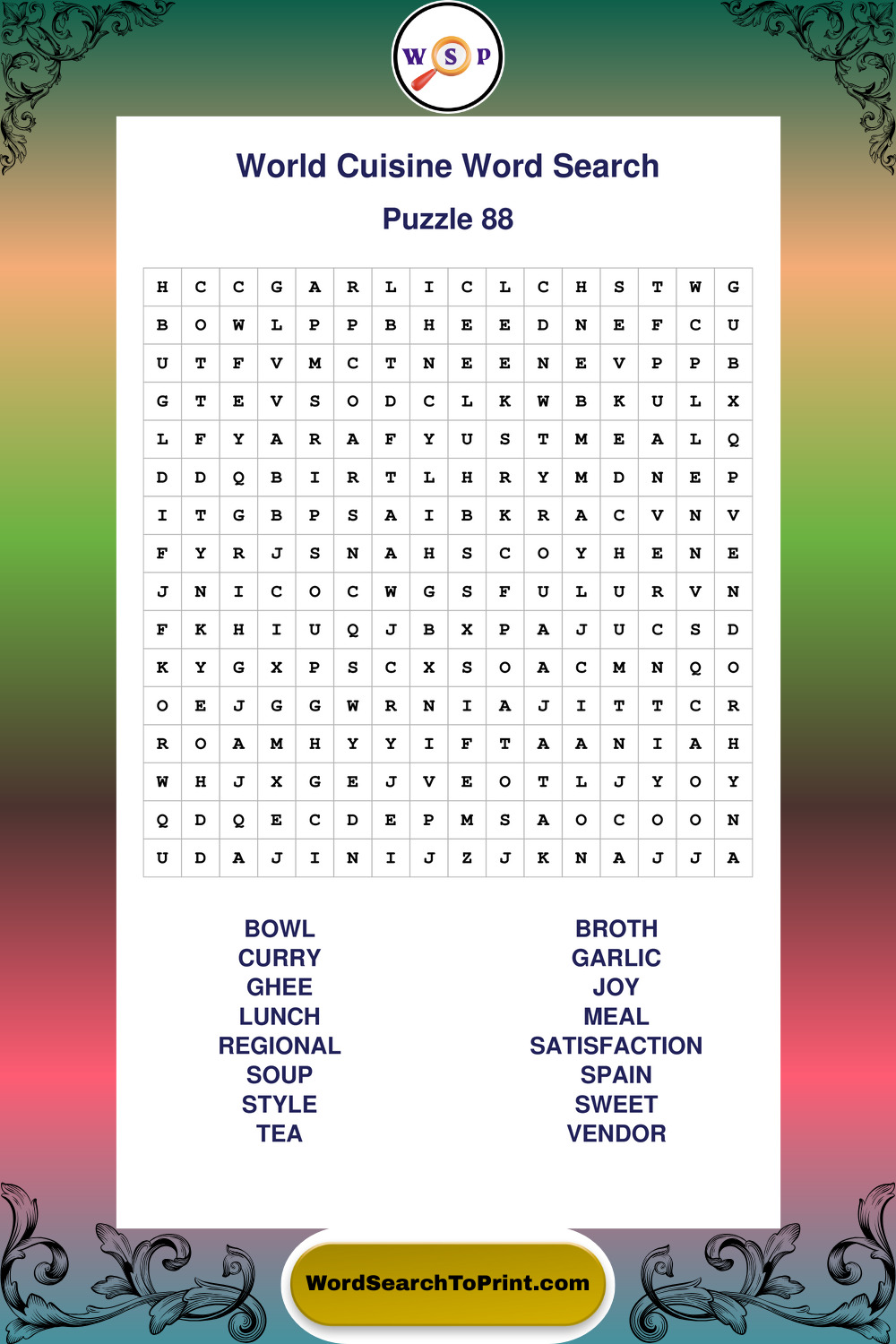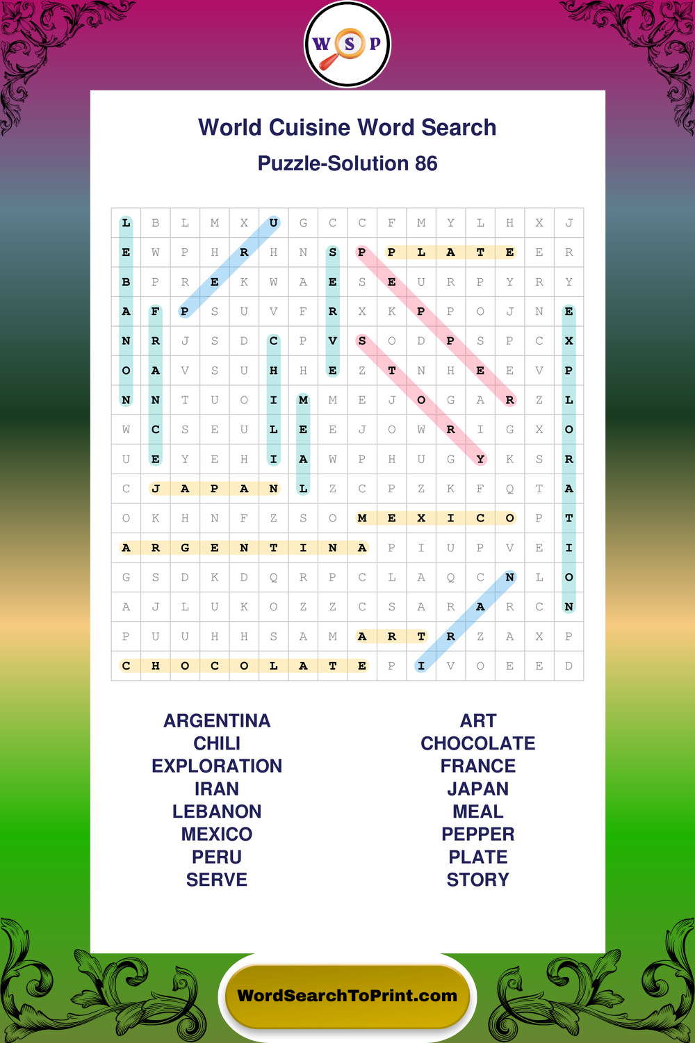Printable World Cuisine Wordsearch Puzzles
