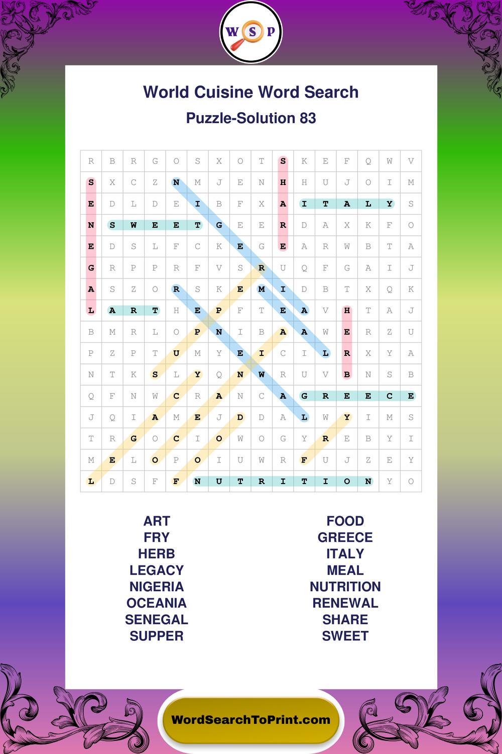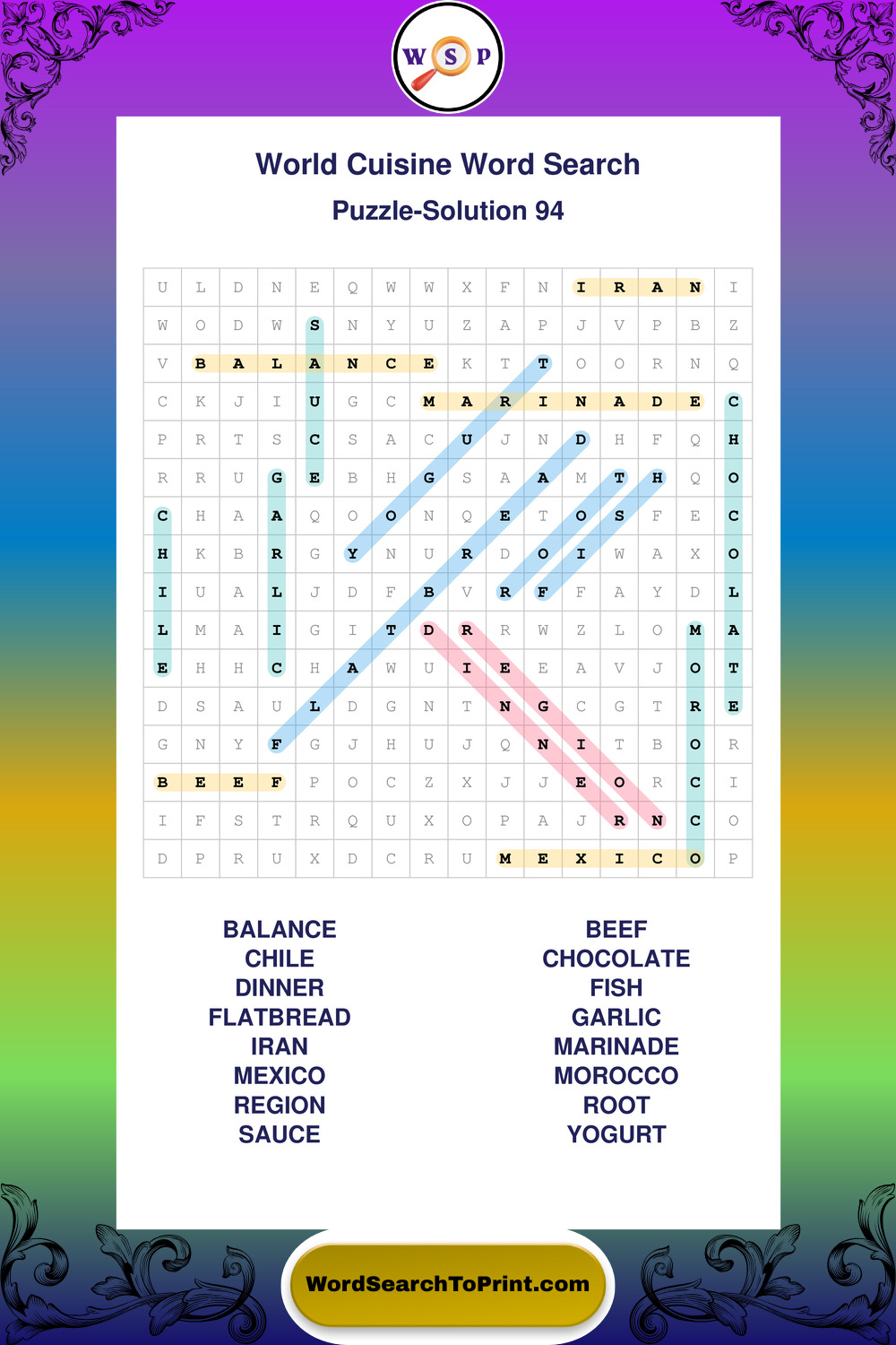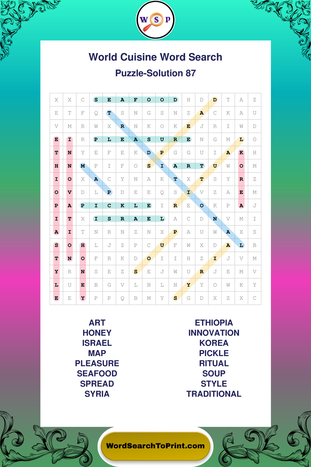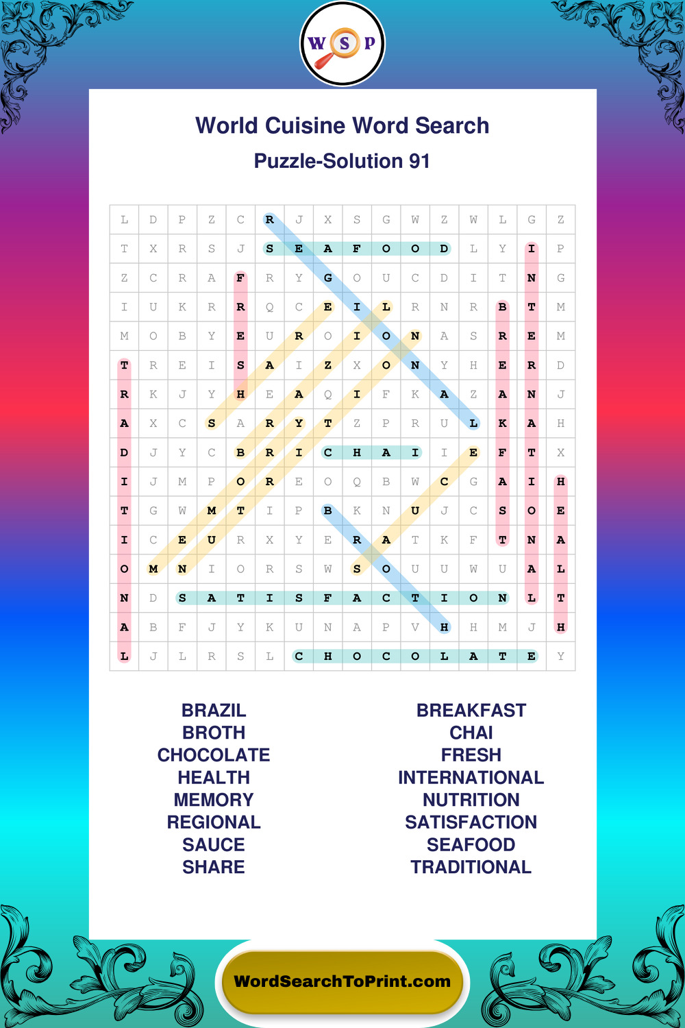 Printable World Cuisine Wordsearch Puzzles