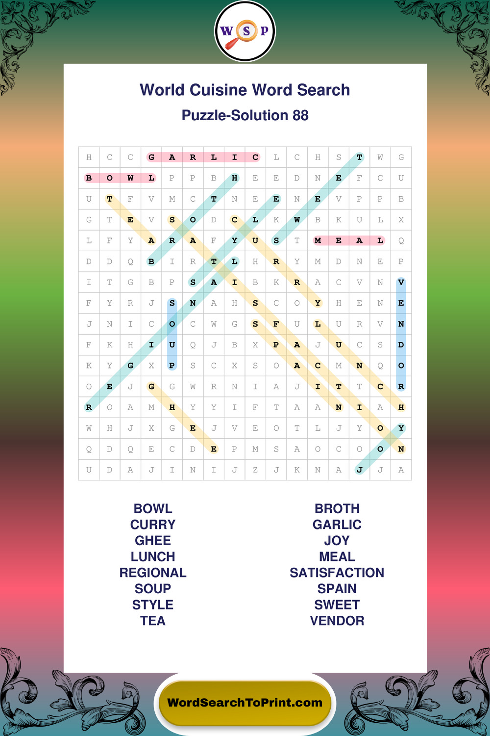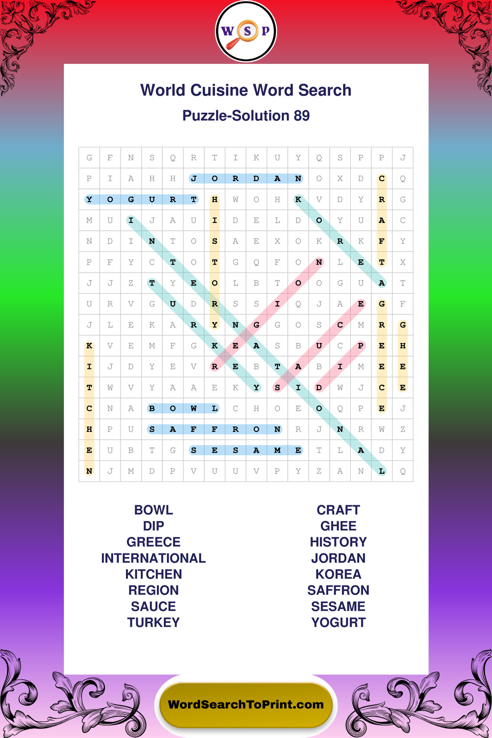 World Cuisine Wordsearches